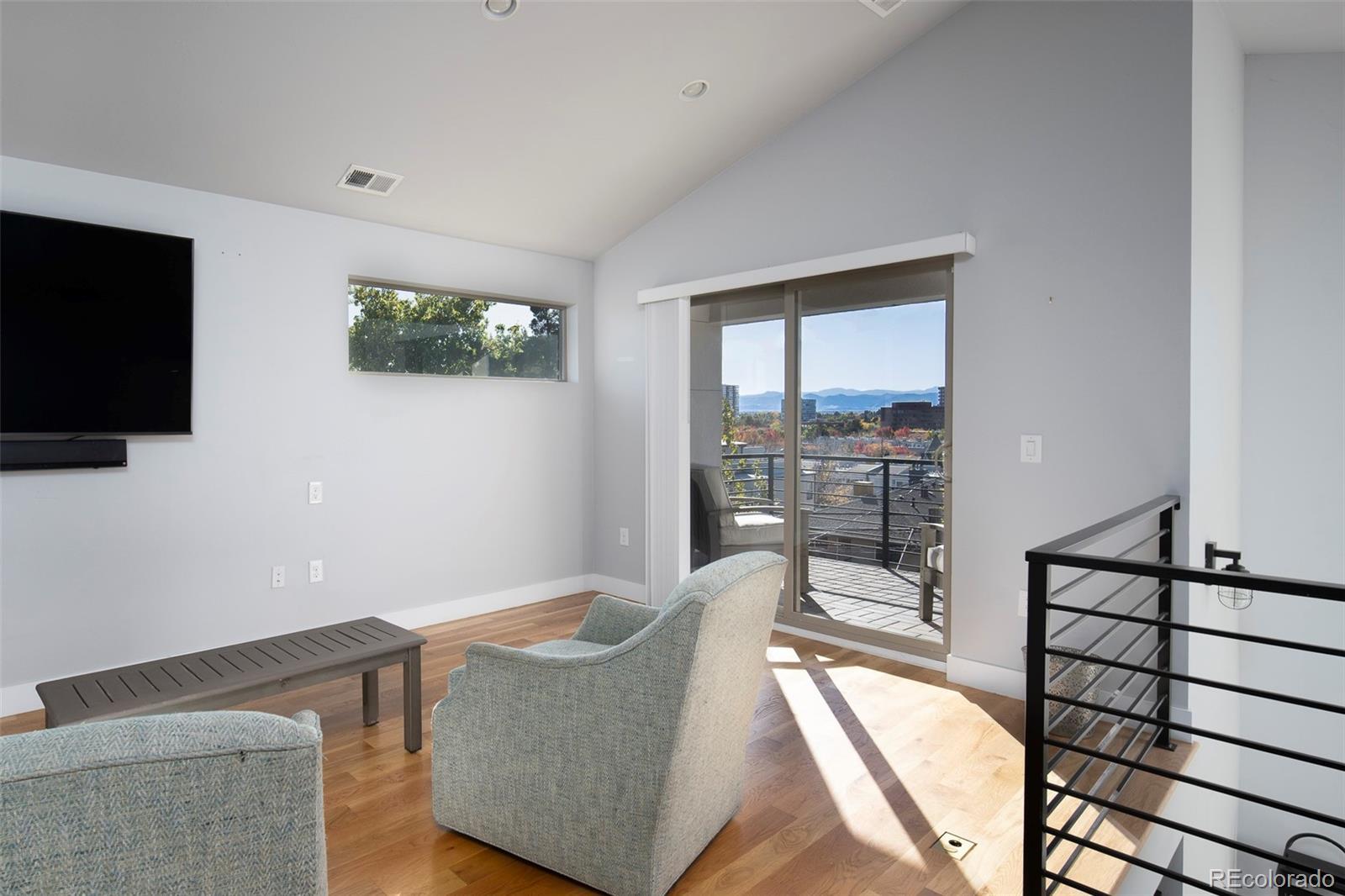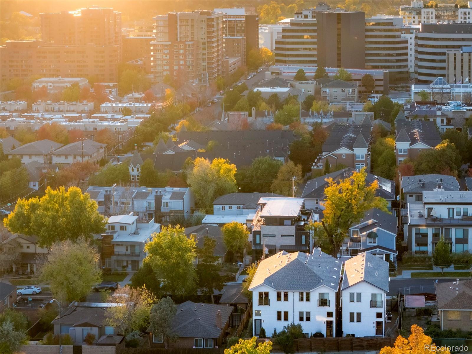 This exceptional row home sets the standard for luxury living, offering a perfect blend of style and sophistication. Ideally located to capture breathtaking views of the Rocky Mountains and it’s just steps away from the vibrant Cherry Creek shopping center, acclaimed restaurants, chic boutiques, scenic trails along the South Platte River, and offers easy access to Downtown Denver and I-25. The home’s impressive curb appeal welcomes you as it stands elevated above street level, leading into a spacious 3-bedroom, 3-bath layout spanning over 2,500 square feet. This residence boasts two balconies, a Juliet balcony, and a private backyard with a charming patio. The open-concept floor plan features a sleek, contemporary interior with high-end finishes at every turn, including a welcoming entryway, mudroom, and a one-car attached garage. The dining room is a highlight, with stunning glass double doors that open to a large balcony with panoramic mountain views. The gourmet kitchen impresses with upgraded stainless steel appliances, a large slab Quartz island, and is seamlessly connected to the spacious great room, which has direct access to the private backyard. Upstairs, the expansive primary suite offers a peaceful retreat with a Juliet balcony, a walk-in closet with custom built-ins, and an elegant en-suite bath. The upper level also features a bright loft with natural light, soaring 10-foot vaulted ceilings, a wet bar, and large glass doors leading to another west-facing balcony with gorgeous sunset mountain views—ideal for hosting guests or enjoying a quiet moment. The finished lower level includes two garden-level bedrooms, a Jack-and-Jill bath, and a laundry area. Outside, the private fenced backyard is beautifully landscaped, complete with a stone fire pit, perfect for both relaxation and hosting guests. With these exceptional finishes and prime location, this home offers incredible value in the heart of Cherry Creek. Don’t miss the chance to see it for yourself!