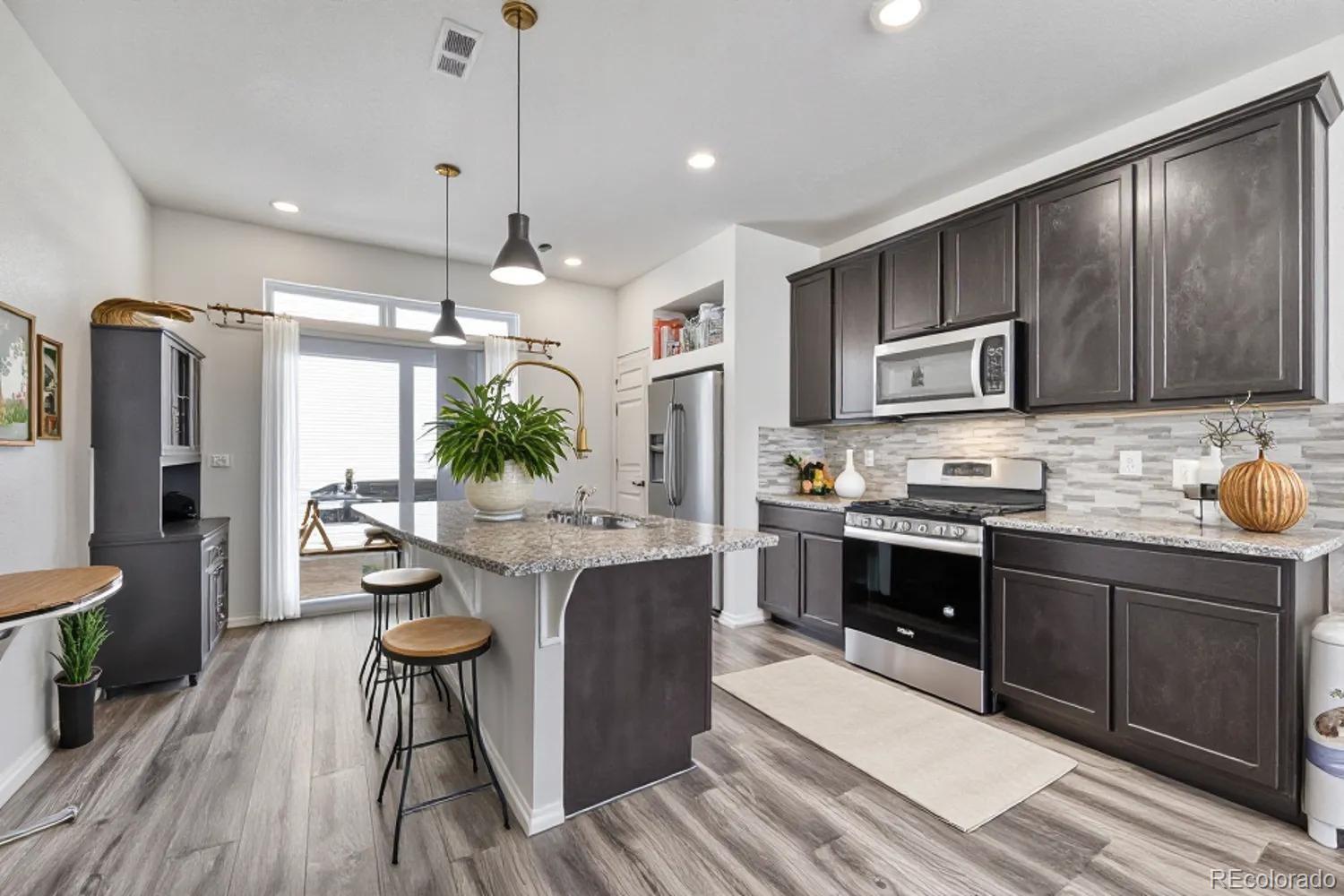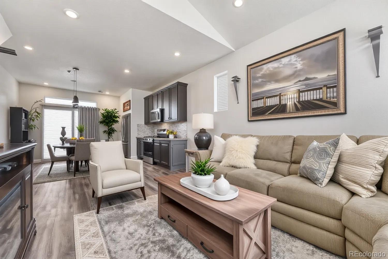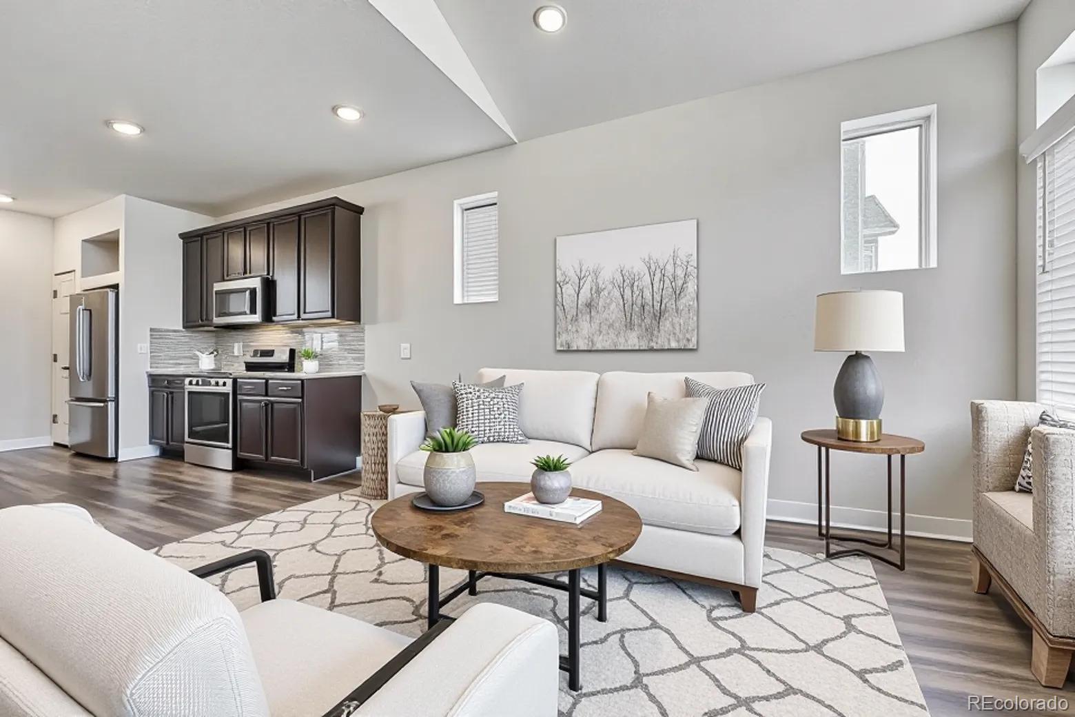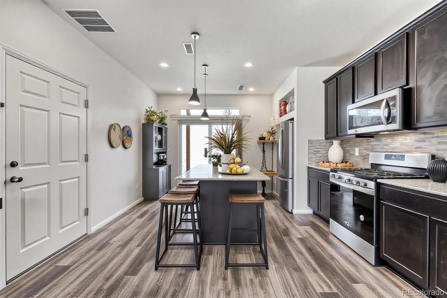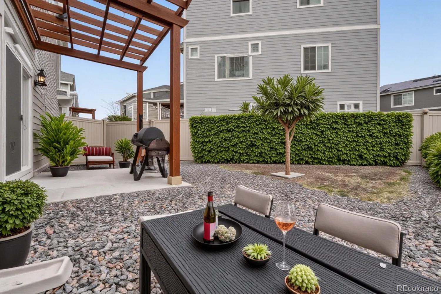 Step inside and feel instantly at home in the light-filled living space, where warmth and comfort blend effortlessly with modern design. The inviting living room flows beautifully into a well-appointed kitchen, complete with a spacious island and bar seating — the perfect gathering spot for morning coffee, casual dinners, or hosting friends and family. Upstairs, retreat to the serene primary suite, offering a private ensuite bath and an expansive walk-in closet designed to keep everything beautifully organized. A second bedroom with its own ensuite bath adds exceptional versatility, ideal for overnight guests, multigenerational living, or a stylish home office. Every detail of the thoughtfully crafted layout has been designed to maximize space, comfort, and everyday livability. Adding both value and peace of mind, a new Class 4 impact-resistant roof was installed in July 2025. Out back, discover your own private escape. The fully fenced yard features a charming patio and pergola — an ideal setting for summer evenings, weekend barbecues, or simply unwinding under Colorado’s open skies. Low-maintenance gravel landscaping ensures you can spend more time enjoying the space and less time maintaining it. Perfectly positioned near the Gaylord Rockies Resort, you’ll enjoy access to acclaimed dining destinations like Copper Table and Garden + Grain Seasonal Kitchen. With convenient access to E-470, Aurora City Place, and Town Center at Aurora, shopping, dining, and everyday essentials are just minutes away — offering the perfect balance of tranquility and connectivity. Click the Virtual Tour link to view the 3D walkthrough. Discounted rate options and no lender fee future refinancing may be available for qualified buyers of this home.