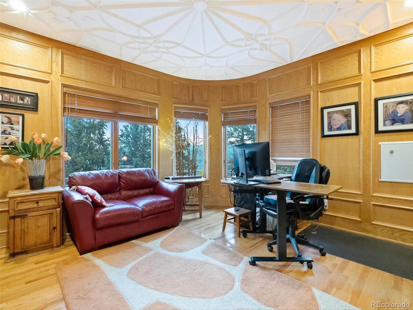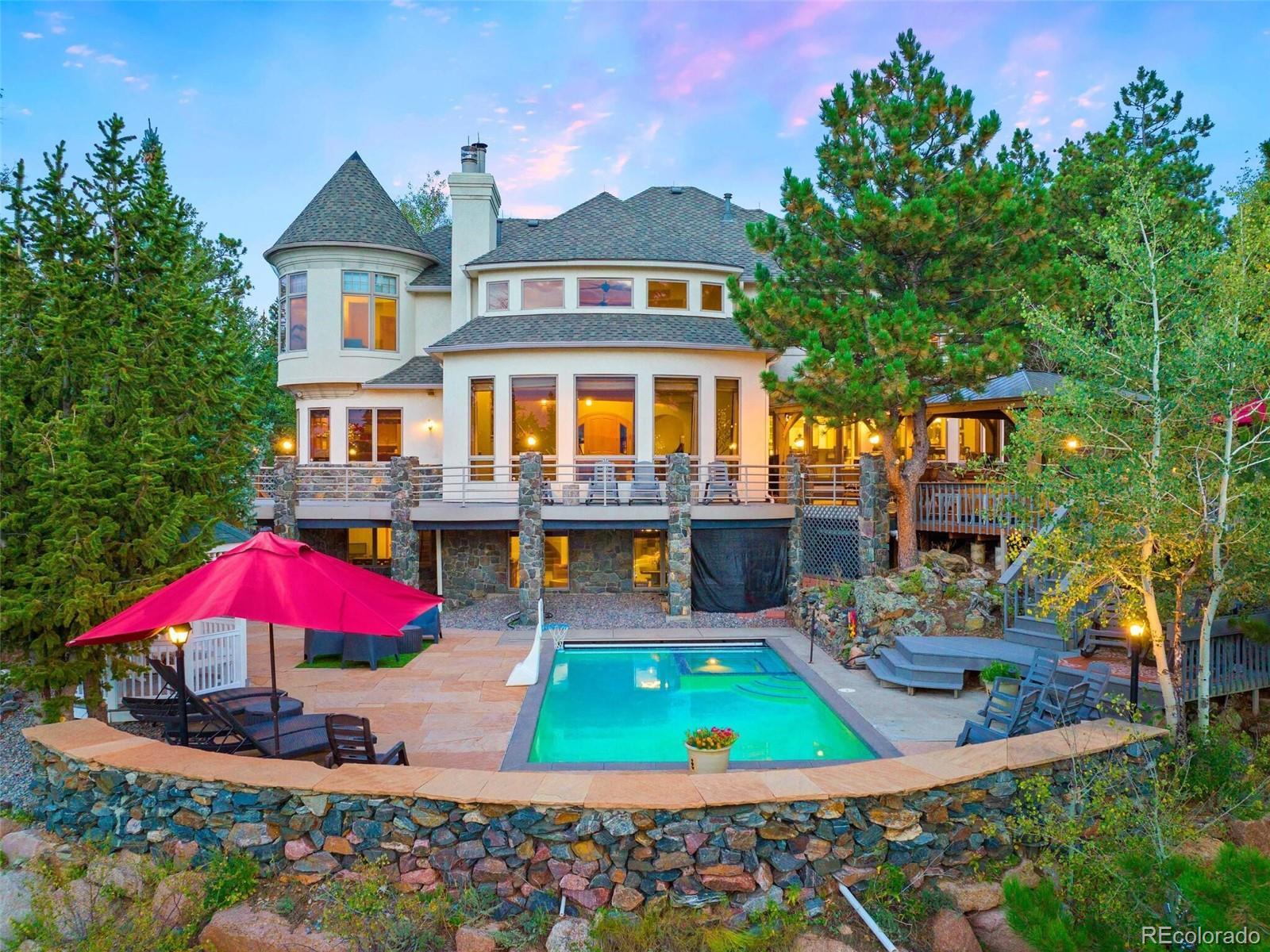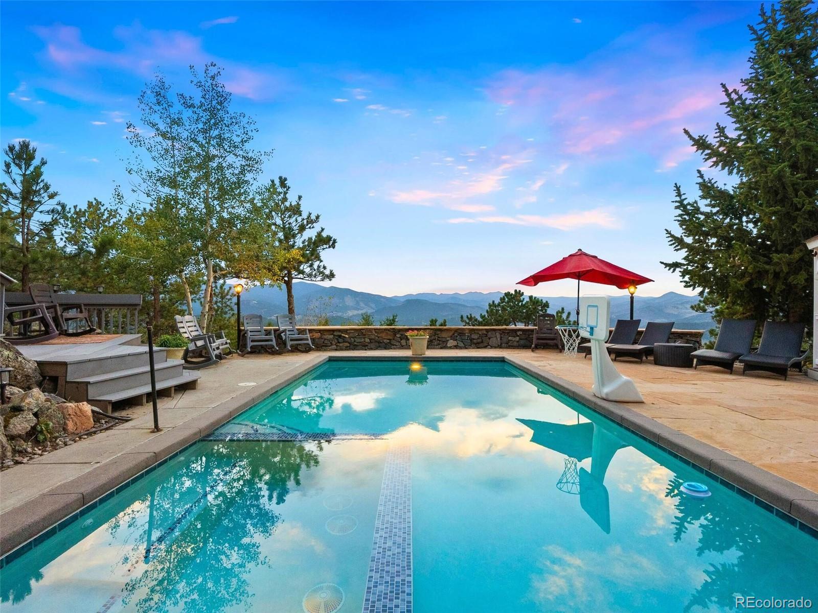 Imagine waking up to the most stunning views of the Rocky Mountain Continental Divide, right from the comfort of your back patio and pool. This exquisite home, nestled on over 4 acres of pristine land, offers not just a place to live but a lifestyle of serenity and elegance—all just 25 minutes from downtown Denver. Your own private, gated mountain retreat, where every day feels like a vacation, and the breathtaking, forever views will leave you in awe. Step inside, and you’re greeted by an open-concept floor plan designed to capture the beauty of the mountains from every angle. The great room, with its dramatic fireplace and curved wall of windows, is perfect for cozy evenings or grand gatherings. For the culinary enthusiast, the upscale gourmet kitchen boasts a Wolf Oven, complemented by a sunroom ideal for growing fresh herbs, promises a delightful cooking experience that meets the highest standards. Every inch of this estate exudes sophistication—from the formal dining room with its custom molding and ceiling to the rich wood-paneled den, complete with its own fireplace. With all bedrooms featuring ensuite bathrooms and multiple common areas, there’s ample space for everyone to relax and enjoy. And then there’s the outdoor oasis—a sparkling pool with an inset spa, surrounded by a spacious patio, where you can entertain guests, unwind, and soak in those spectacular mountain views. This is more than just a home; it’s a lifestyle, waiting for you to embrace it. The home boasts 3 laundry rooms, dog spa, workout room, pool table room and rec areas.