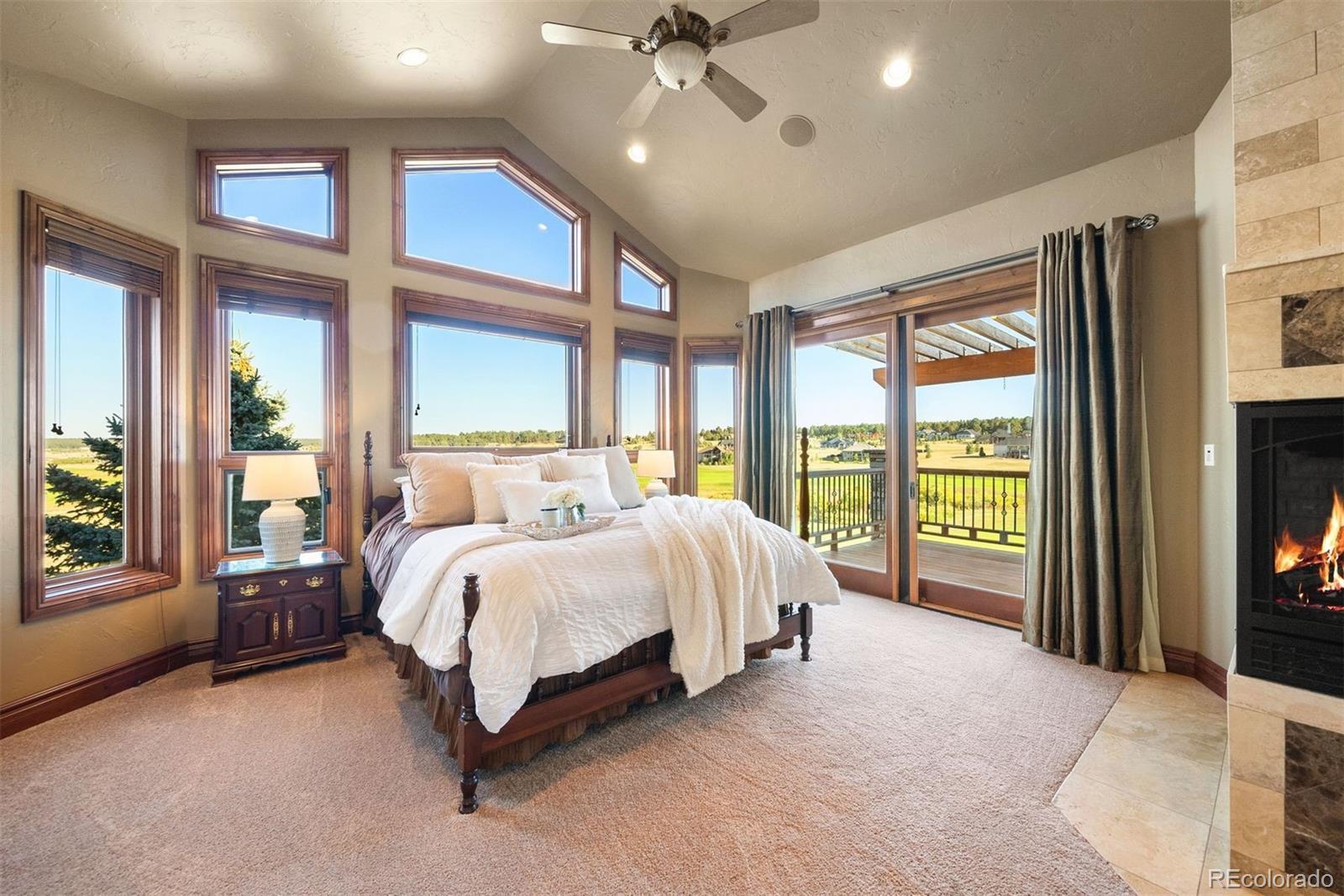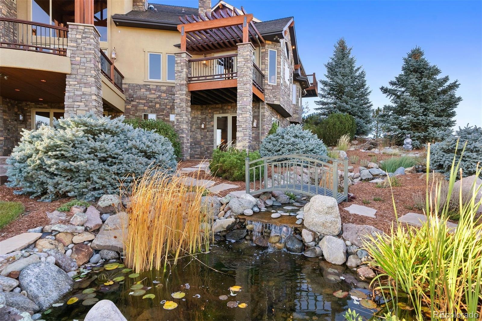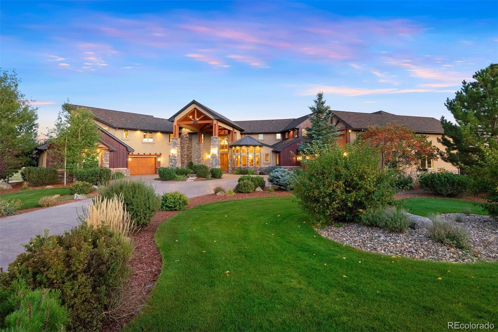 This Home. Your Story to Write. Experience Colorado luxury living at its finest. This 10,248 sq. ft. custom estate on 2.52 acres sits above the golf course in the exclusive King’s Deer Highlands community. Designed for multi-generational households, executives, and car enthusiasts, it combines architectural elegance with thoughtful accessibility and energy-efficient construction. The main-level primary suite is a retreat with a 3-sided fireplace, sitting/exercise room, coffee bar with wet sink, walk-in closet with washer/dryer space, and patio access. Each private wing offers sitting areas and balconies, ideal for extended family, live-in caregivers, or long-term guests. Accessibility features include an elevator, ramp access, wide hallways, and more—perfect for aging in place or caring for loved ones. Entertain in the dramatic great room with soaring ceilings, stone fireplace, and walls of glass framing panoramic views of Pikes Peak, the Front Range, and golf fairways. The gourmet kitchen features natural stone counters, custom cabinetry, walk-in and butler’s pantries, and oversized island. The lower-level great room offers a sports/media lounge, game areas, wet bar, wine cellar, and fireplace. Walk out to landscaped grounds with firepit, waterfall, reflecting pond, and grotto-style spa with hot tub. For automotive enthusiasts, the oversized motor home/boat bay with 220V plus five extended garage bays include radiant floors, drains, high-clearance doors, and a workshop. Built with sustainability in mind: 6" exterior walls, foam insulation, Energy Star HVAC and water heating, solar-ready wiring, radiant heat, and wood-burning fireplace. Outdoor living includes pergola covered decks, mature trees, flowering plants, and sweeping views of sunrises, sunsets, and Air Force Academy flyovers. Minutes from Monument and Castle Rock with access to Colorado Springs, DTC, DIA, and biking, hiking, and camping.