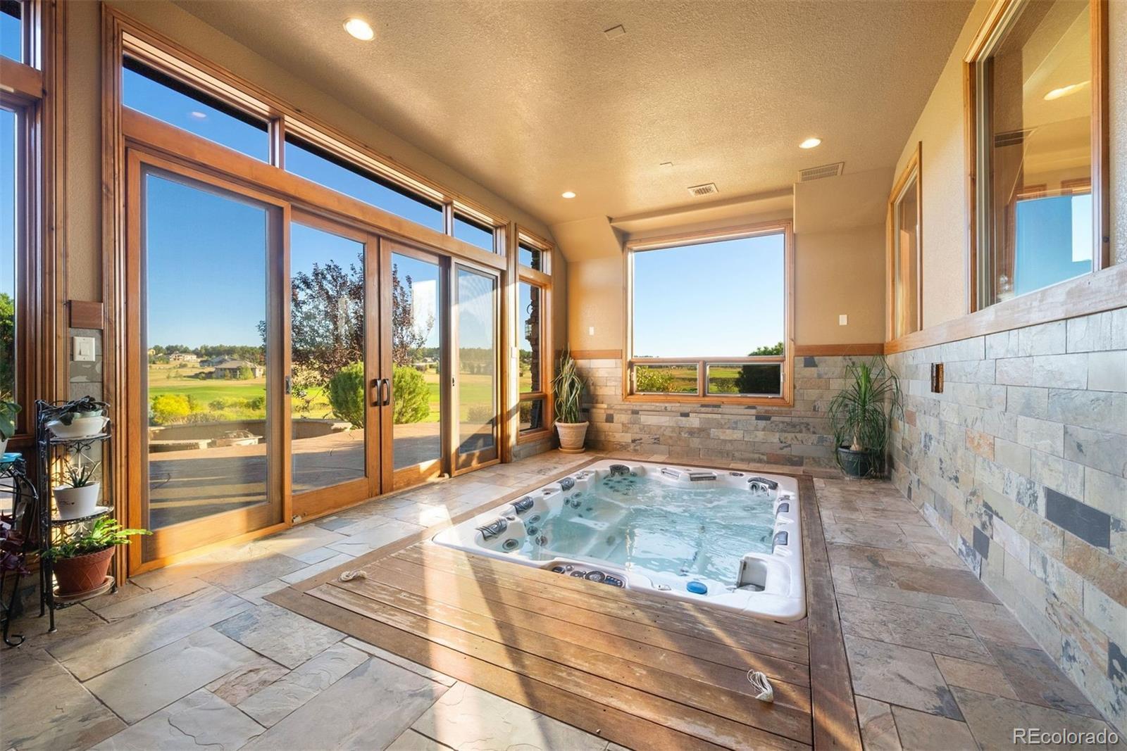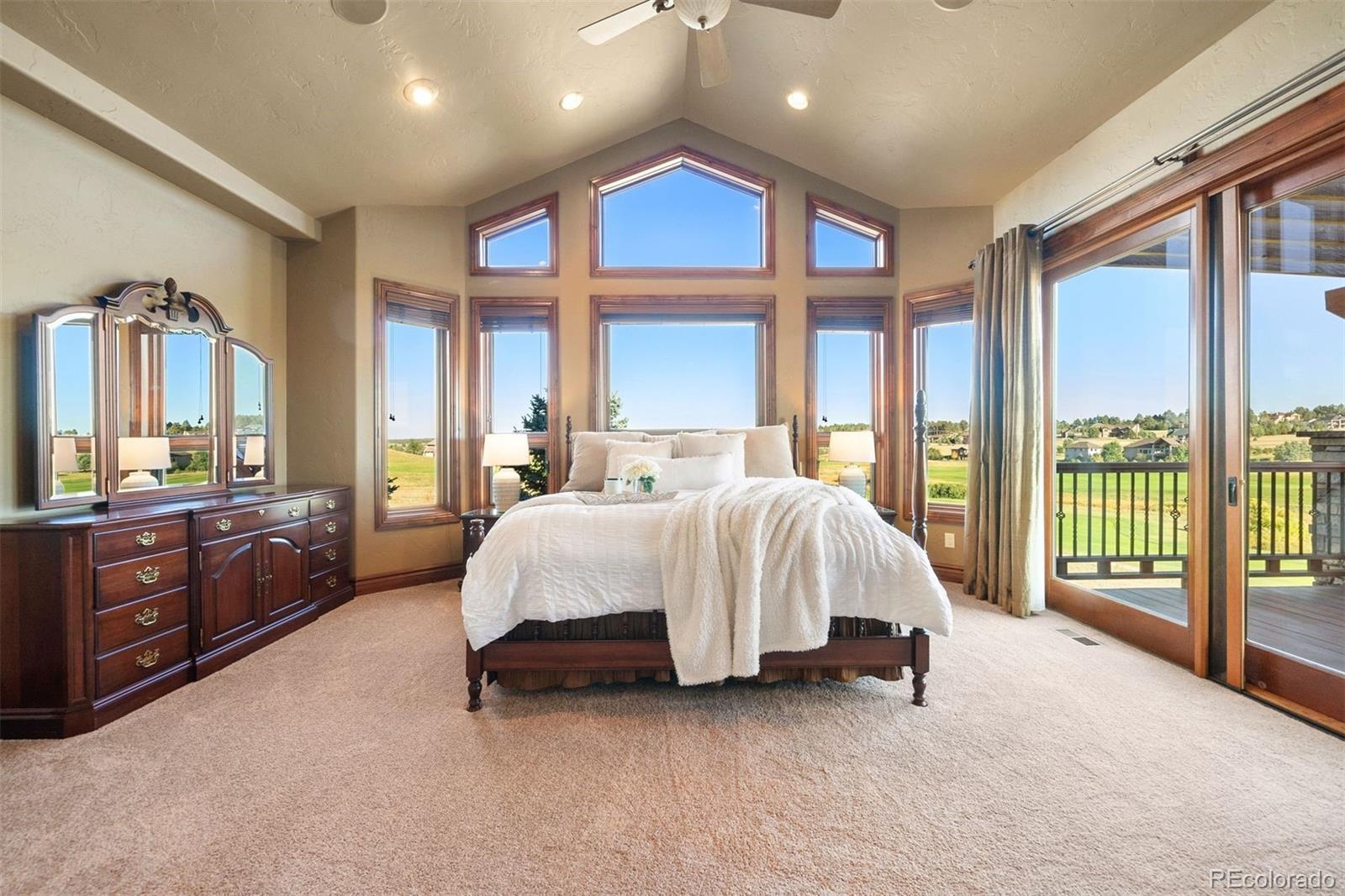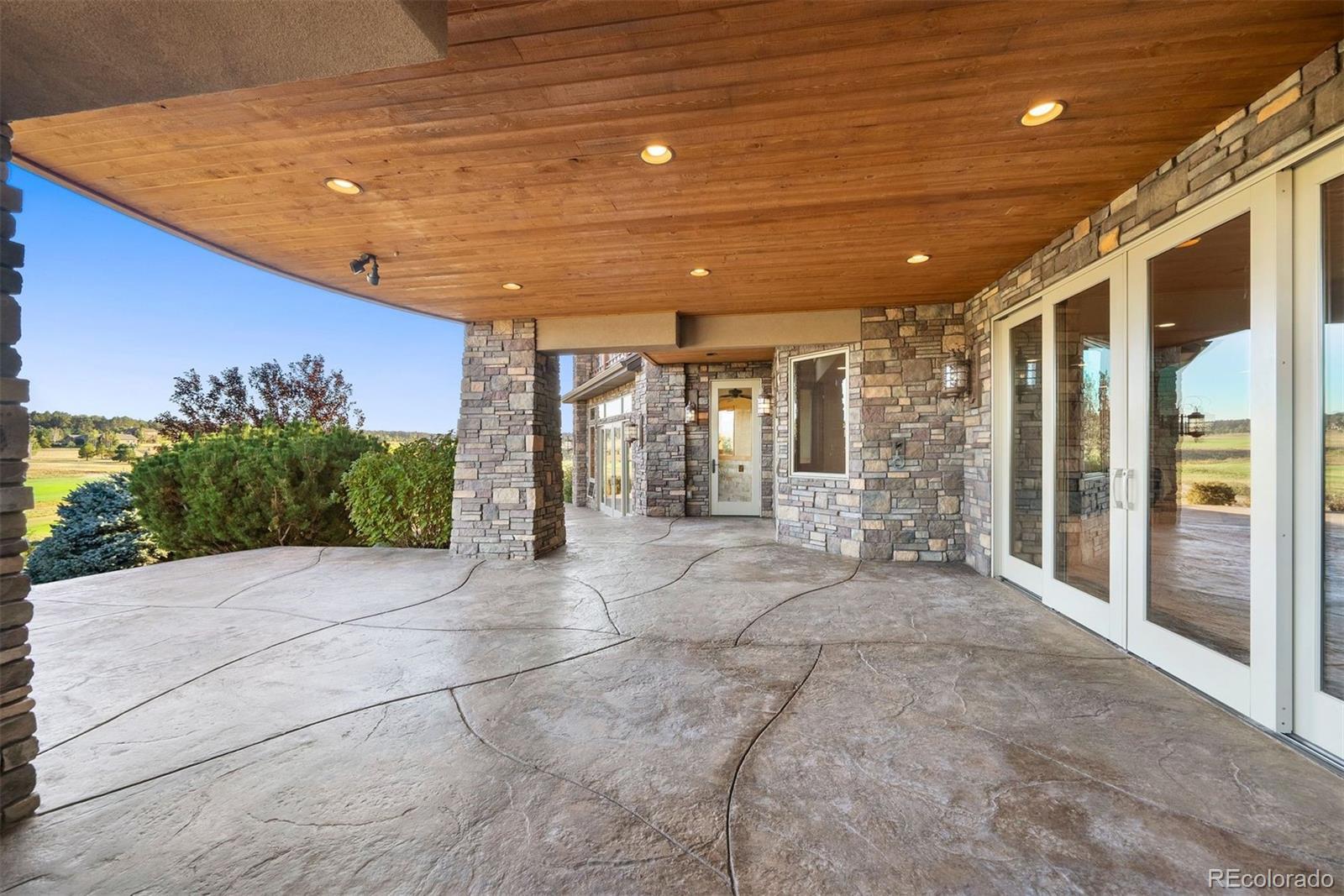 This Home. Your Story to Write. Experience Colorado luxury living at its finest. This 10,248 sq. ft. custom estate on 2.52 acres sits above the golf course in the exclusive King’s Deer Highlands community. Designed for multi-generational households, executives, and car enthusiasts, it combines architectural elegance with thoughtful accessibility and energy-efficient construction. The main-level primary suite is a retreat with a 3-sided fireplace, sitting/exercise room, coffee bar with wet sink, walk-in closet with washer/dryer space, and patio access. Each private wing offers sitting areas and balconies, ideal for extended family, live-in caregivers, or long-term guests. Accessibility features include an elevator, ramp access, wide hallways, and more—perfect for aging in place or caring for loved ones. Entertain in the dramatic great room with soaring ceilings, stone fireplace, and walls of glass framing panoramic views of Pikes Peak, the Front Range, and golf fairways. The gourmet kitchen features natural stone counters, custom cabinetry, walk-in and butler’s pantries, and oversized island. The lower-level great room offers a sports/media lounge, game areas, wet bar, wine cellar, and fireplace. Walk out to landscaped grounds with firepit, waterfall, reflecting pond, and grotto-style spa with hot tub. For automotive enthusiasts, the oversized motor home/boat bay with 220V plus five extended garage bays include radiant floors, drains, high-clearance doors, and a workshop. Built with sustainability in mind: 6" exterior walls, foam insulation, Energy Star HVAC and water heating, solar-ready wiring, radiant heat, and wood-burning fireplace. Outdoor living includes pergola covered decks, mature trees, flowering plants, and sweeping views of sunrises, sunsets, and Air Force Academy flyovers. Minutes from Monument and Castle Rock with access to Colorado Springs, DTC, DIA, and biking, hiking, and camping.