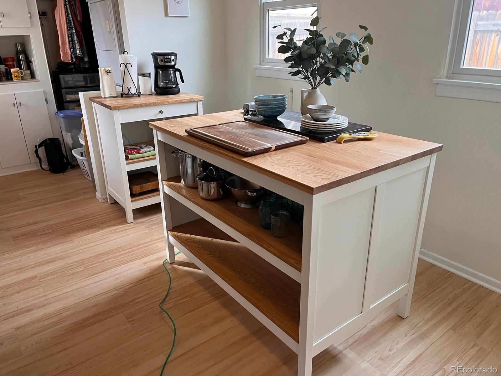Offered at an exceptional valued price of $415,000, this classic 1950s ranch-style home is perfect for the Olde Town Arvada enthusiast seeking charm, functionality, and an exceptional two-car detached garage with all the bells and whistles. The 2 car Detached Garage is truly versatile and designed for year-round use—ideal for a workshop, art studio, or home office. This impressive space features radiant hot water heat, a solar heater for added efficiency, evaporative cooling with exhaust fan, new picture windows, updated electrical with both 110V and 220V outlets, an air filtration system, and even a refrigerator. The home offers 2 bedrooms and 1 bathroom, nestled on a shady corner lot surrounded by mature trees and vibrant perennials. Inside, you’ll find thoughtful updates throughout, including: New Andersen composite windows**Fresh interior and exterior paint**New front door**New linoleum plank flooring in the kitchen**New Rheem tankless water heater for energy-efficient living** New roof (2017) on both the home and garage**The kitchen is equipped with a new Whirlpool gas range and a newer Frigidaire refrigerator.** Living spaces are bright and inviting, filled with natural southeast light. Additional highlights include ceiling fans in both bedrooms, an evaporative cooler with thermostat, and mature, fruit-bearing apple trees that enhance the home’s charm. Enjoy an unbeatable location—just a 5–10 minute walk or bike ride to Olde Town Arvada’s movies, restaurants, bars, shops, and easy I-70 access. Be part of this beautiful and welcoming Columbine Acres/Vetting community. Columbine Acres park 5 blocks south of the home. Walking trail, Playground and tennis courts