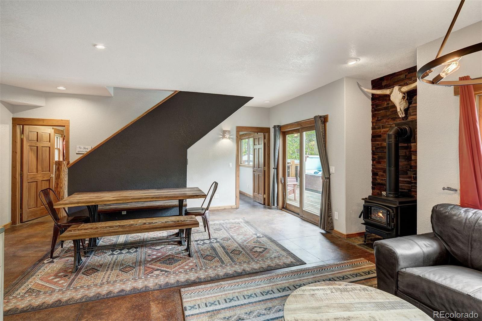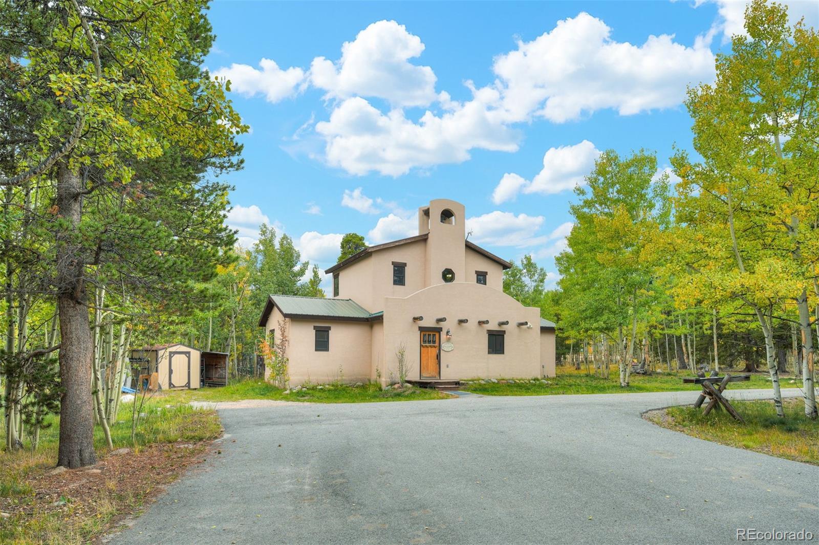 Bell Tower house located just outside of Fairplay, CO. This stucco style home is nestled in between trees and sits on approximate 2.5 acres. This home boasts modern finishes in a quiet retreat.