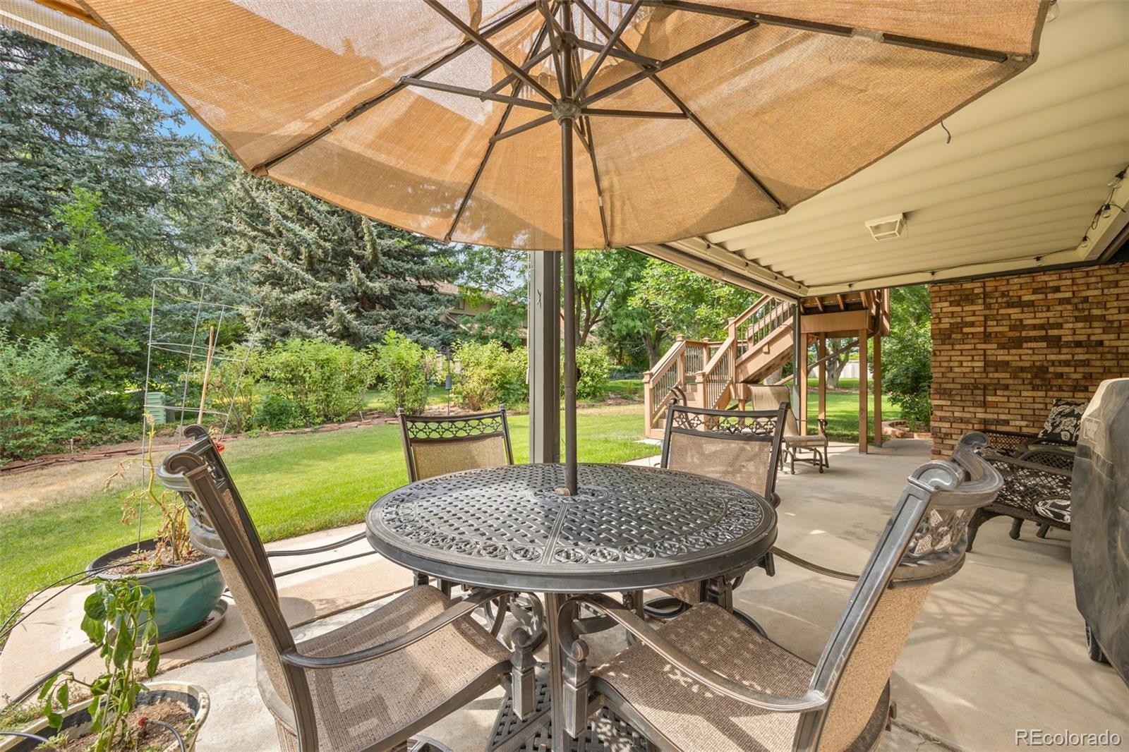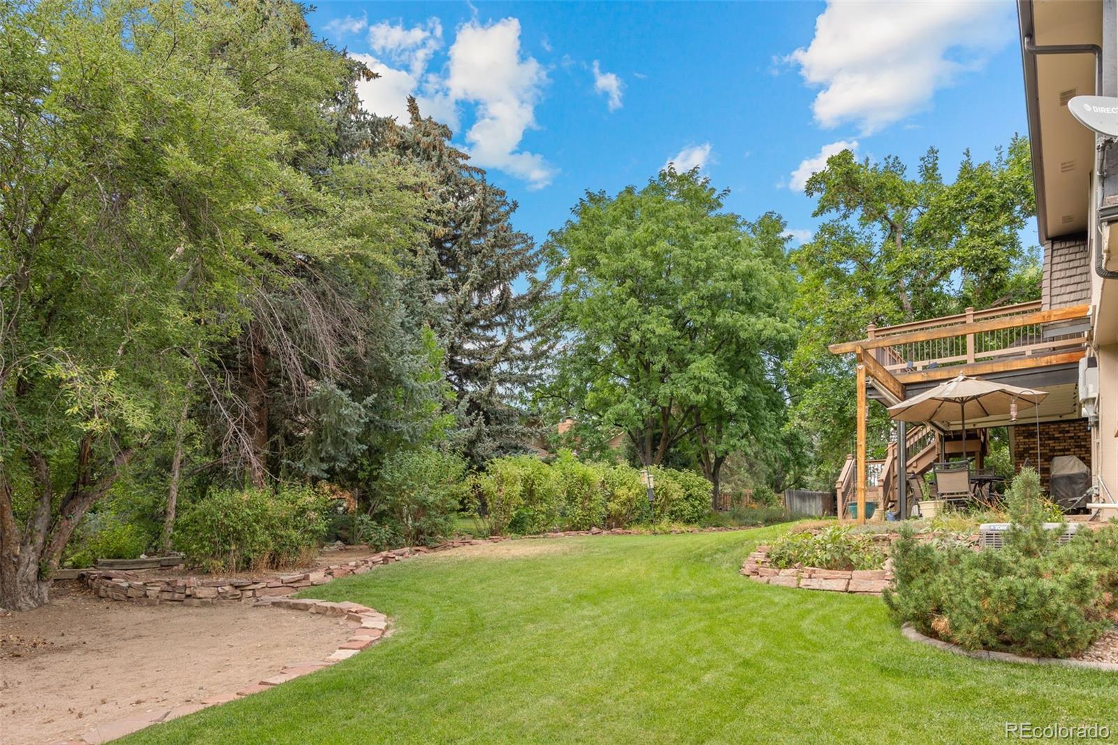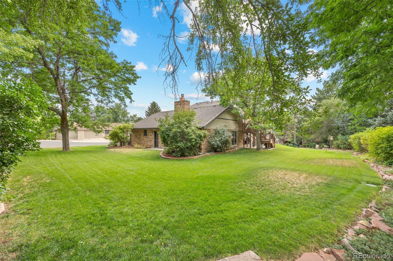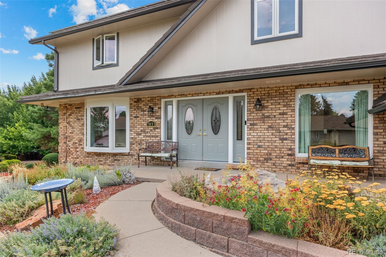 COME SEE THIS WONDERFUL 2-STORY FRENCH COUNTRY NESTLED IN HIGHLY DESIRED COLUMBINE KNOLLS SOUTH ESTATES! A superb brick residence on an oversized .40 acre lot, meticulously maintained by its current owners. Beautiful landscaping and walled gardens welcome you inside via the new steel front door. You'll love the verdant outdoor spaces with mature trees, large covered patio for enjoying nature & dinners al fresco. Stepping inside you'll find a sunny interior with elegant entry, open floor plan, gleaming hardwoods, an ample living room, redesigned office (or den) fitted with Dunn-Rite cabinetry. The vaulted family room features a gas fireplace & sliding doors leading to the beautiful backyard bordered by shrubs. Multiple areas to choose from for privacy & relaxation. The eat-in kitchen is fitted with Stainless appliances, refaced Dunn-Rite Hickory cabinets, Corian counters & 2 pantries; from here step out to the covered patio. Laundry & 1/2 bath are conveniently located on the main floor. Upstairs you'll find a nice upper TREX deck, 4 sizable bedrooms including the Primary suite with 5-pc bath & soaking tub + a renovated full bath w/ claw foot bathtub. Big ticket items of note: new high efficiency furnace & AC 2021, attic fan 2000, Steel Provia security door 2024, new double pane windows throughout 2020-2024, stone-coated steel roof, new garage doors 2023, recirculating tankless hot water heater 2022, 2 French drains front & back, solar system paid off (avg summer Xcel Energy bill $48/mo), fresh exterior & interior paint 2025, exterior storeroom on main level. The pristine unfinished basement offers plenty of storage space & potential for customization. Welcome to a neighborhood with wonderful amenities--open space, walking trails galore, 2 parks with playgrounds, basketball courts, baseball & soccer fields. You're a short drive to Chatfield, Clement Park, shopping & restaurants with quick access to C-470 & the mountains. Don't miss this great opportunity!