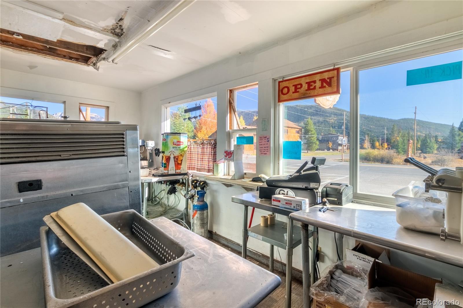 First fast food place as you leave the west entrance of Rocky Mountain National Park and first one as you enter the year round resort of Grand Lake, CO. Everyone drives past your location as they enter town and then again as they leave town! Plenty of parking. No franchise fees. This could be any kind of restaurant - or retail! Large Home could be for you, for employees or update it and let it be a place for you to rent out nightly or monthly for additional income. This property is a fixer-upper, ready for its new incarnation. Many more details and income figures are available from when the business was in full operation; just ask us for the email presentation. R147260 Lot 16, Block 21 #629 Grand Avenue. Price reduced from 999,000 to $898,000 so that you can update the flooring.