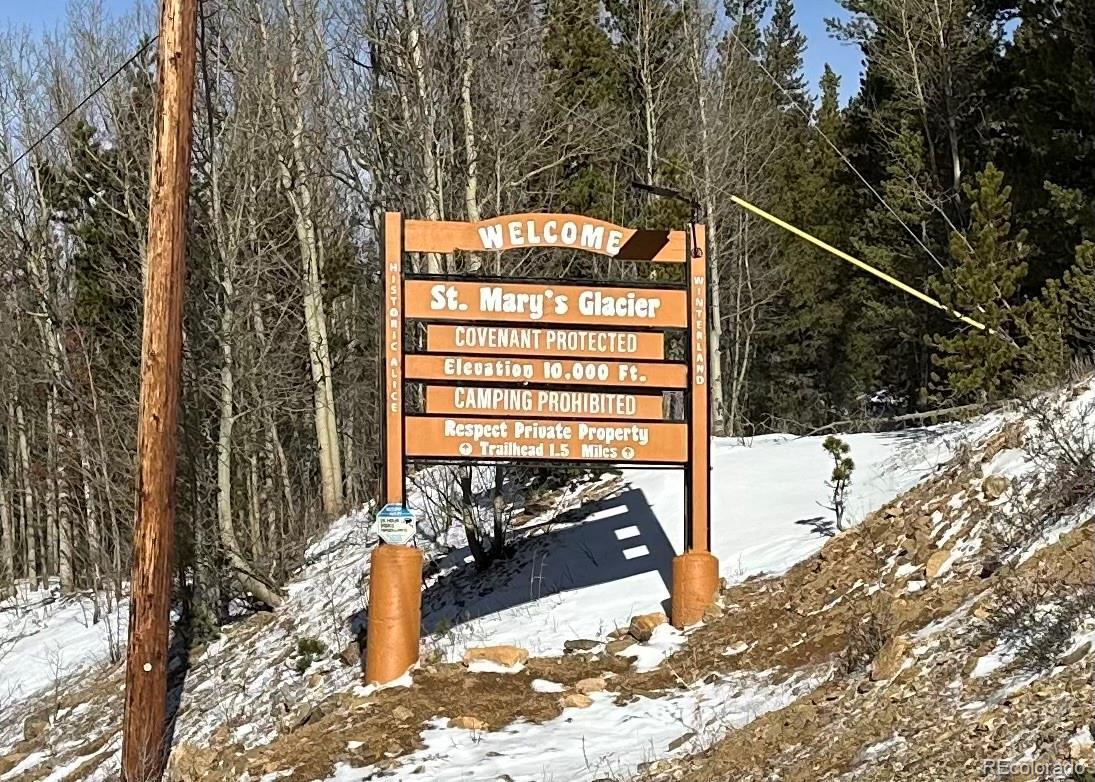 Create your Colorado mountain sanctuary on this premier 1/3-acre, gently sloping lot in St. Mary’s Glacier, a builder-friendly property with sought-after southern exposure for fantastic natural light, improved winter efficiency, and easier driveway upkeep. With water and sewer already in the street, you can start planning your dream home without the challenges that come with wells and septic systems. Just 1.4 miles from the iconic St. Mary’s Glacier trailhead, this location is a paradise for hikers, anglers, and outdoor explorers. Endless off-road and side-by-side trails at your doorstep. Skip the trailer and start your adventure the moment you pull out of the driveway. Enjoy access to two private stocked community fishing ponds for a modest fee—all while benefiting from NO HOA fees. Whether you’re dreaming of a full-time residence or a peaceful alpine retreat, endless adventure awaits right outside your door.