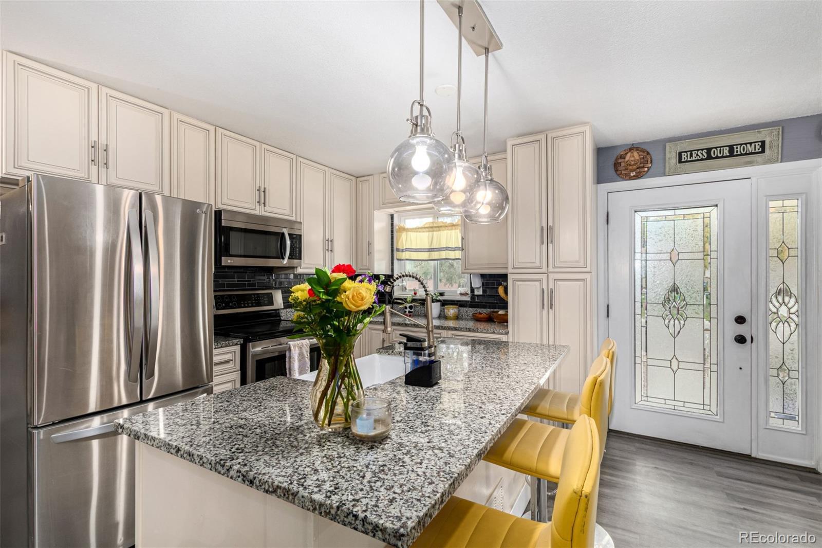 This inviting 5-bedroom, 2-bath residence perfectly balances modern upgrades with everyday comfort. From the moment you arrive, you’ll notice the care, detail, and pride of ownership throughout the property. Inside, the fully renovated kitchen is both functional and stylish, featuring sleek cabinetry, quality appliances, and generous counter space that make cooking and entertaining easy. The open layout connects the kitchen to the dining and living areas, creating a warm and welcoming space for family and friends to gather. The lower level has been freshly painted and includes a spacious media and game room, ideal for movie nights, game days, or a comfortable retreat for kids and guests. Each of the five bedrooms offers flexibility and can serve as a home office, guest room, or cozy personal space. One of the highlights of this home is the large yard and extended deck, providing the perfect setting for outdoor entertaining, summer barbecues, or simply relaxing under the Colorado sky. The outdoor area feels both private and open, offering the best of both worlds. Located in a friendly neighborhood close to great schools, parks, trails, and local amenities, this home offers both comfort and convenience. Whether you’re looking to settle into a vibrant community or enjoy more space inside and out, this property delivers it all. With its thoughtful updates, flexible layout, and desirable location, this home is ready for its next chapter — and for you to make it your own.