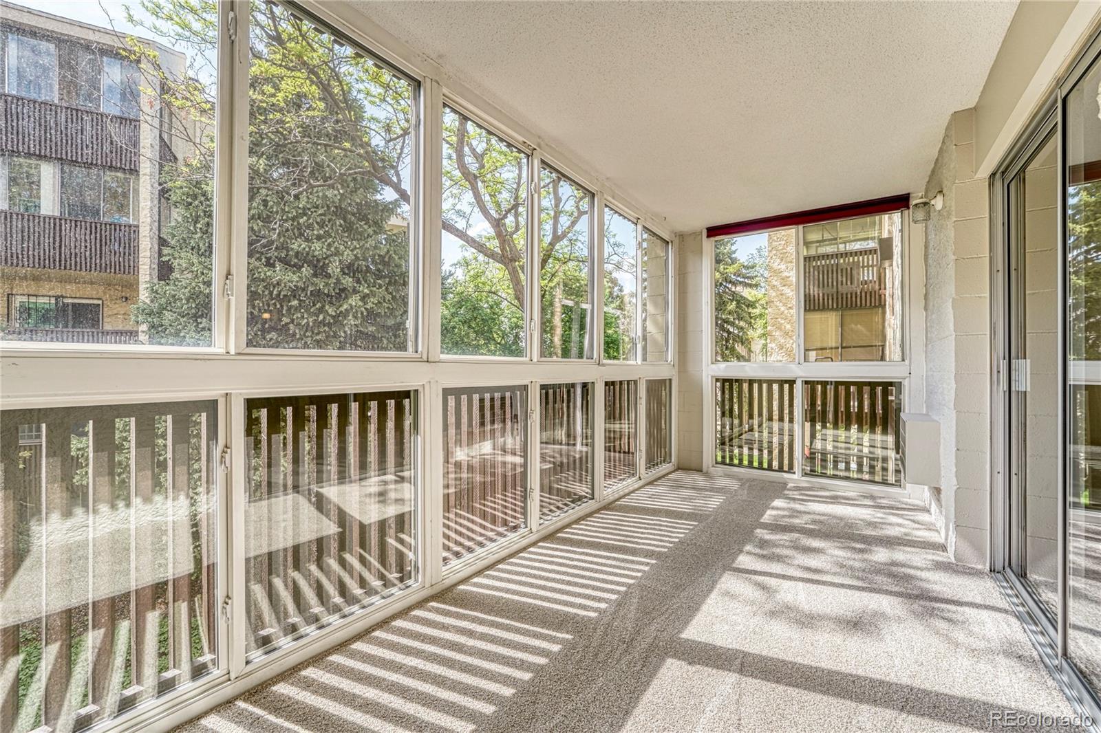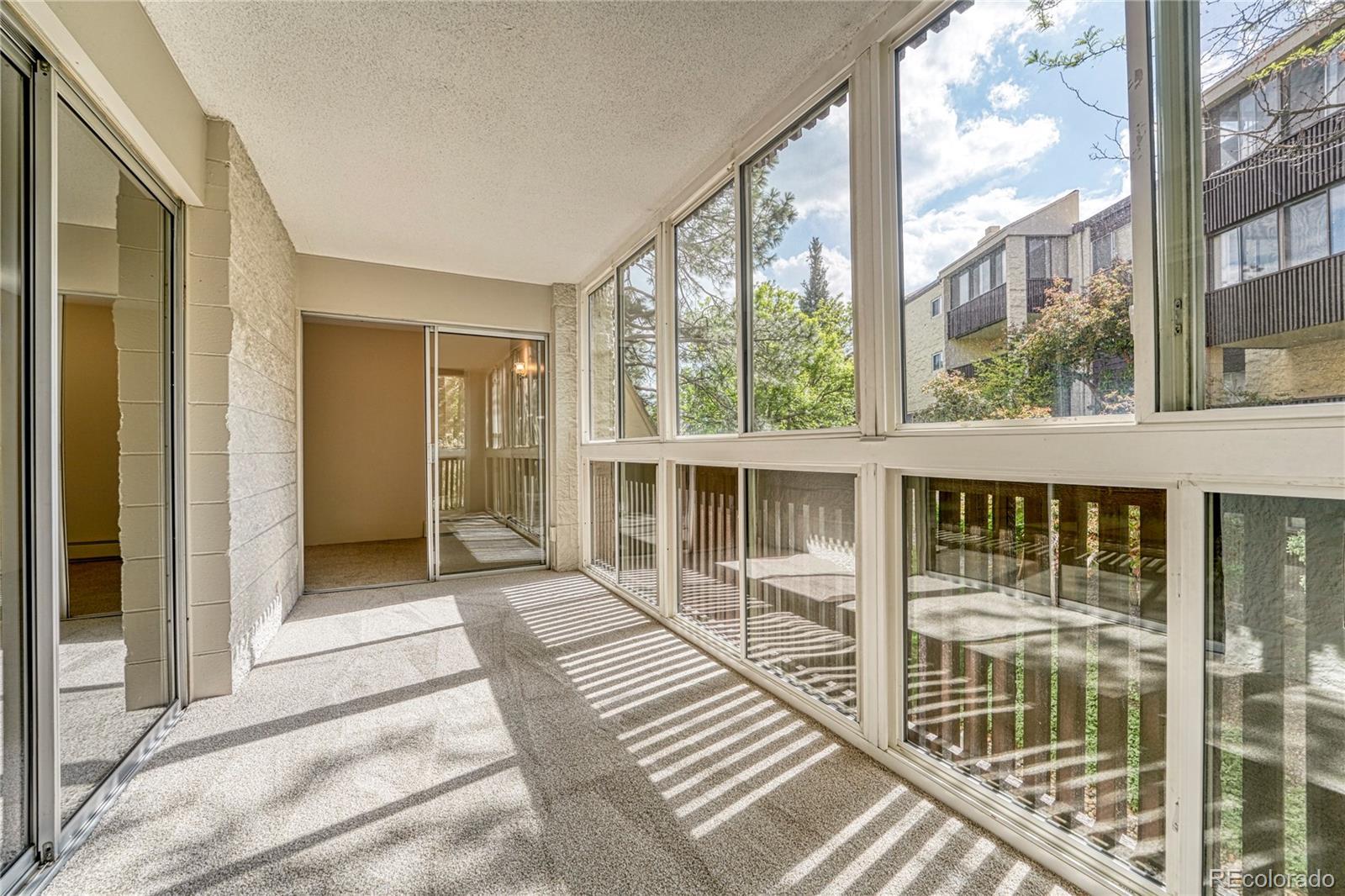 Lovely 2-bedroom,2-bathroom, 1300 sq. ft. unit with a bonus room plus and an additional enclosed, carpeted lanai with dual access from the living room and bonus room via double sliding glass doors to give you an additional 140 sq. ft. of living space. Updated kitchen with maple cabinets, granite countertops and brand new stainless-steel appliances. Brand new paint and carpet throughout. The building offers you a secured underground garage with a reserved parking spot close to the elevator plus bike storage. There is a 5 foot deep locker for storage in the laundry room that is conveniently located just a few feet away. There is an abundance of amenities that include indoor and outdoor pools with grills, fireplace lounge, men's and women's separate locker rooms equipped with saunas, steam rooms, fitness centers, and restrooms. There is a clubhouse with kitchenette, bar seating, community library, card party billiard room with 2 pool tables, and spacious seating for entertainment and private events. HOA includes all amenities, a secured garage, maintenance of building and grounds, snow removal, insurance on the building, water, sewer, trash, and gas hot water heat. Convenient to Tamarac Square, Tiffany Plaza, Target, Whole Foods, Hutchinson Park with playground and the large James A Bible Park, I 25 , I225 and Southmoor Light Rail Station. Close to Kennedy golf course. There is onsite management and maintenance to ensure the complex is safe and well kept.