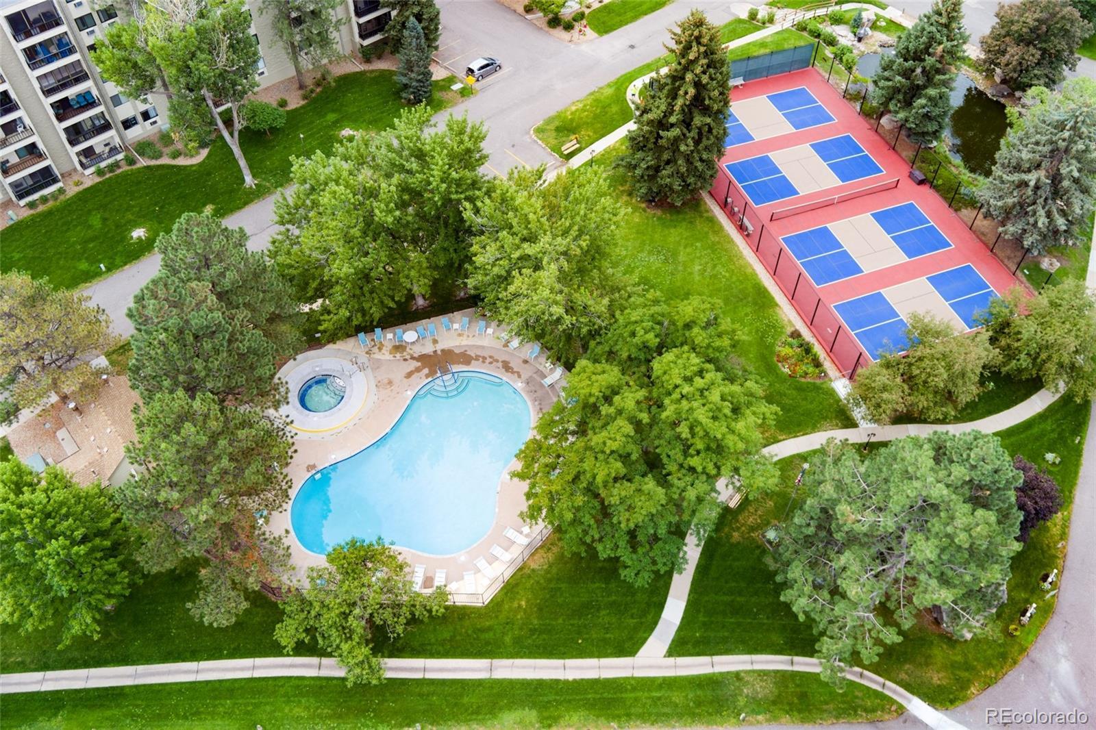 Premium and coveted top-floor Executive Suite in the highly desirable Heather Gardens, an active 55+ community in the SE Metro area. This rare corner unit offers a spacious open layout and top-of-the-line features, including three bedrooms—an uncommon find in the community. Situated on 200 acres of park-like grounds accented by a public golf course with discounted rates to residents, Heather Gardens is by far one of Colorado’s finest senior and retirement communities. Professionally managed with attentive staff, 24/7 security, and over 100 clubs, classes, and activities, residents enjoy a vibrant lifestyle with endless opportunities for social connection and personal enrichment. This bright, sunny top-floor unit has been thoughtfully updated with brand new carpet, light fixtures, interior door knobs, cabinet hardware, and crisp fresh paint in 2025. The home features two enclosed sunrooms, a spacious living room with wet bar, and a dining area that flows seamlessly for easy entertaining. The kitchen includes a convenient pass-through cutout to the living room, while the expansive primary retreat is thoughtfully separated from the guest bedrooms and offers dual closets and a private en-suite bath. Attached bath and walk-in closet in one of the guest bedrooms. Additional highlights include an in-unit washer and dryer, generous storage, and numerous modern updates such as a walk-in shower in the attached bath, granite counters in the third bathroom, new sliding doors, new lanai/sunroom windows, newer laminate flooring, and a stainless refrigerator. Beyond the community, residents enjoy easy access to a variety of nearby retail shops, medical services, Cherry Creek State Park, and the Nine Mile light rail station, providing quick connections to downtown Denver and DIA. This exceptional home combines space, style, and the ultimate Heather Gardens lifestyle.