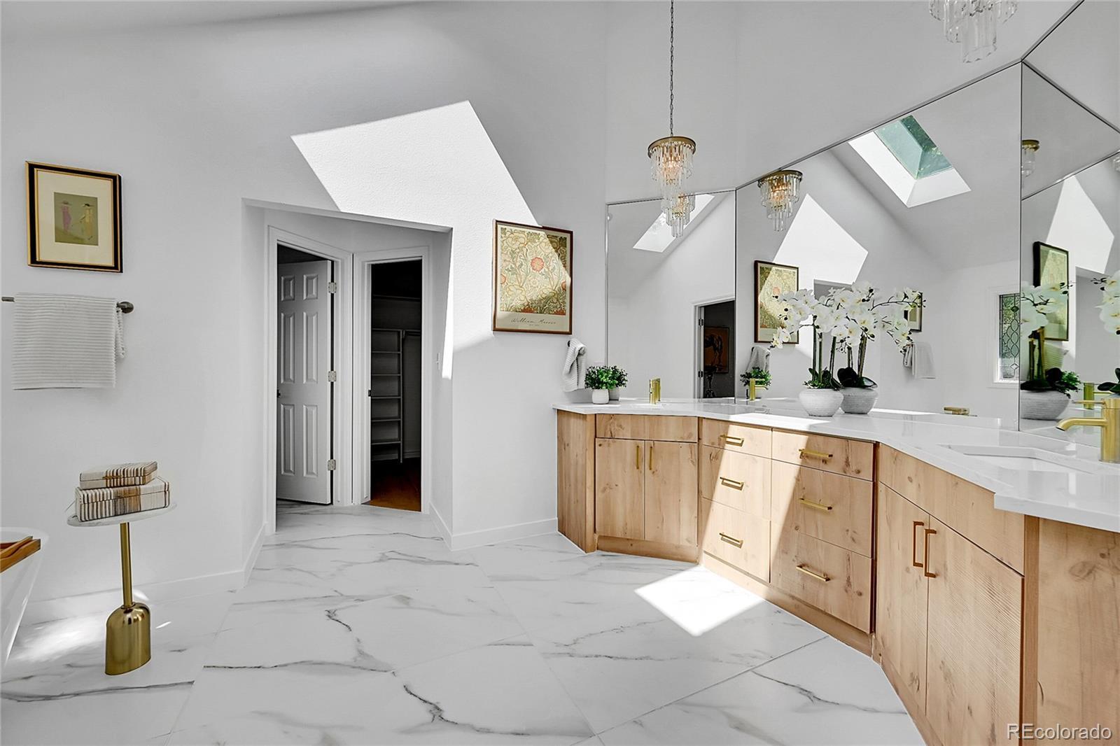 Step into 8055 S Zephyr Way, where exceptional design and quality craftsmanship meet in this custom-renovated gem in Columbine Knolls South II. Spanning over 4,500 sq ft, this 5-bedroom, 5-bath home blends modern sophistication with livable comfort. Wide-plank oak floors, designer lighting, and two statement fireplaces elevate the main level. The primary suite offers vaulted ceilings, a bold feature wall, and a spa-inspired bath with Calacatta tile, a soaking tub, gold fixtures, and a custom walk-in closet. The finished basement includes a stylish wet bar, media lounge, and private guest ensuite — ideal for visitors or multi-generational living. Set on a quiet street with a spacious, level backyard, this home is minutes from top-rated schools, parks, and Chatfield Reservoir. More than a remodel, it’s a reinvention of suburban luxury for those who value design and modern living.