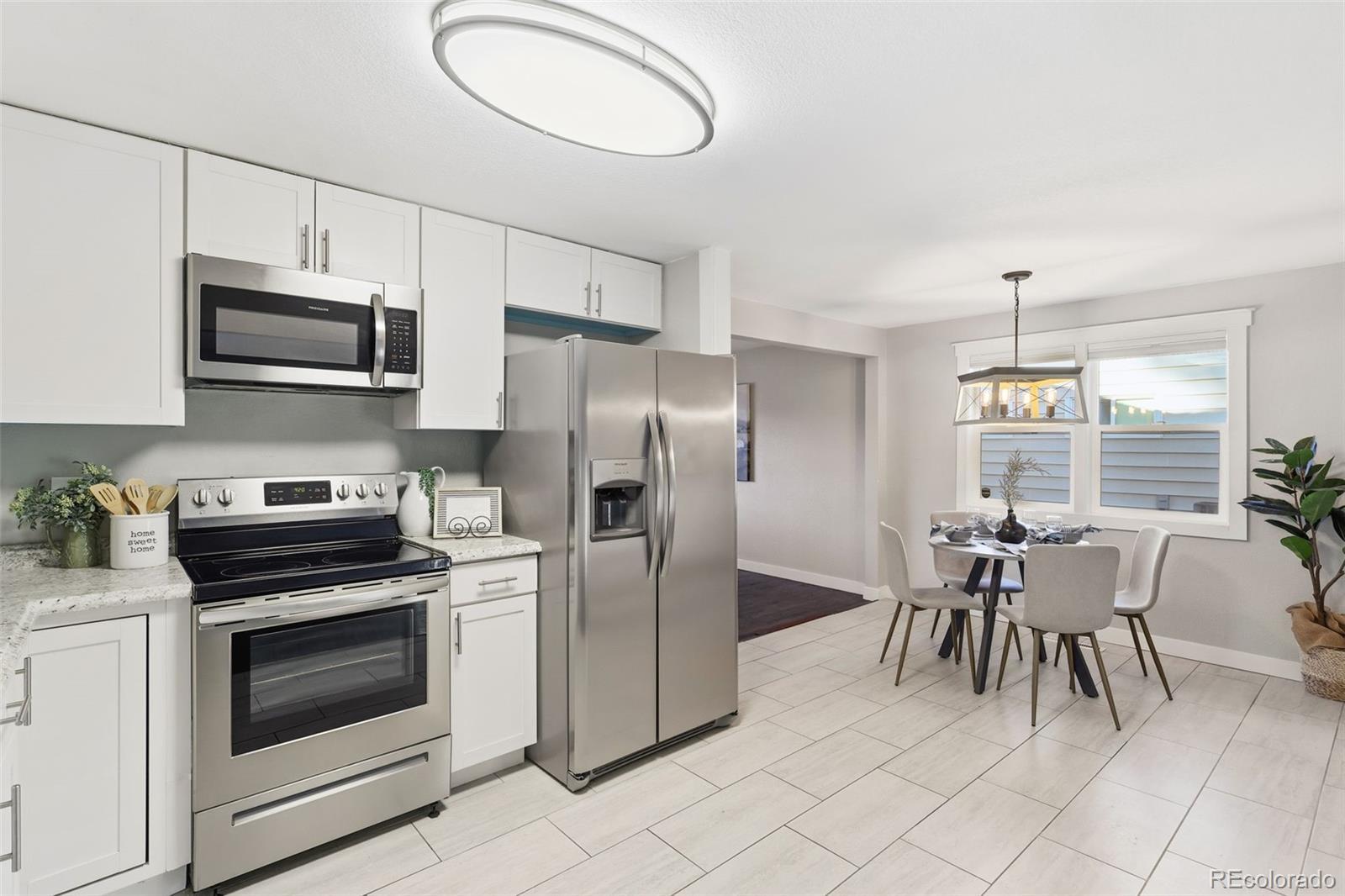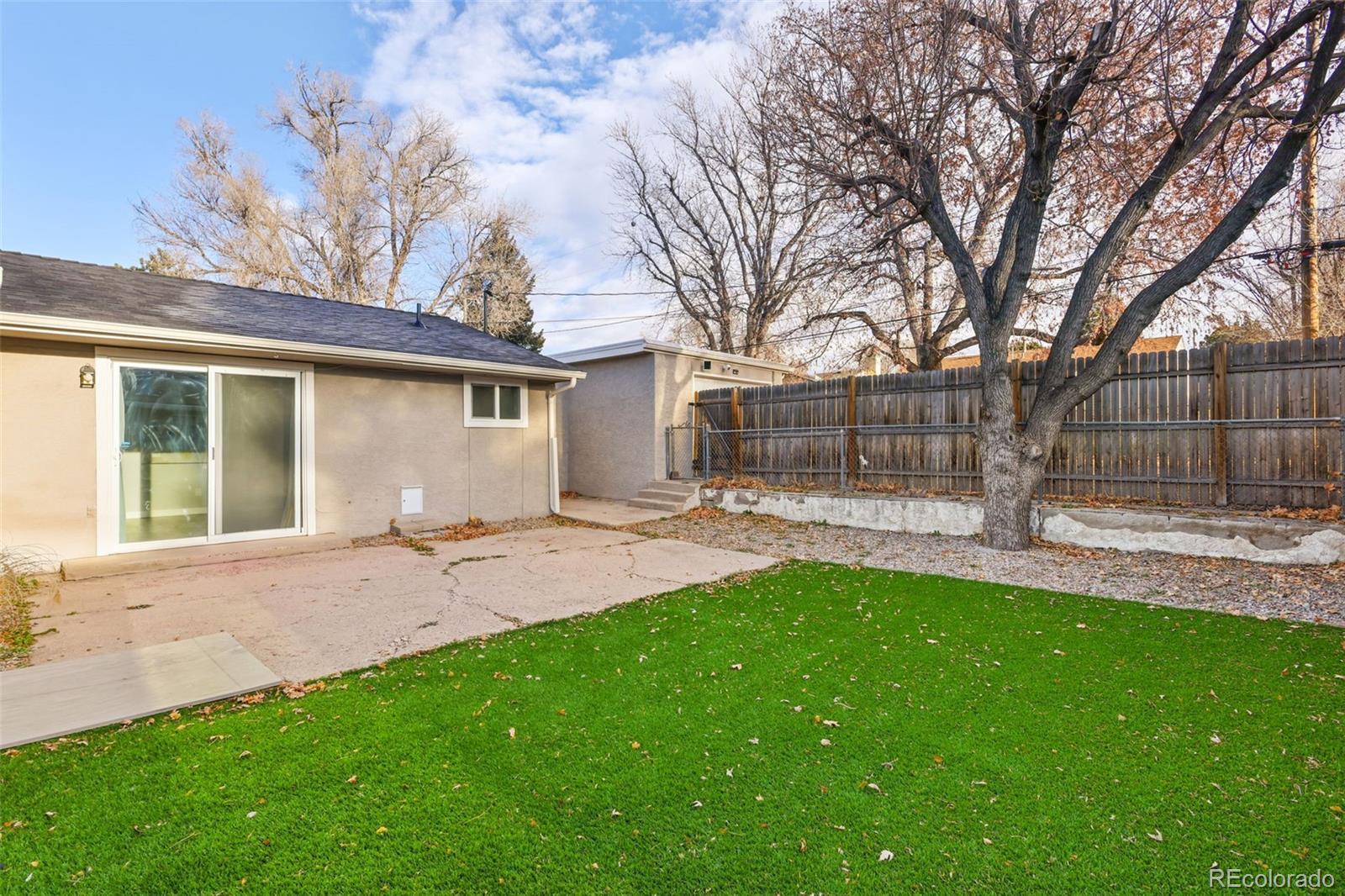 Welcome home to this lovely, centrally located property offering main level living, a bright and airy atmosphere and a highly functional floor plan. The chic kitchen features crisp white cabinetry, stainless steel appliances, and plenty of workspace—perfect for everyday living and entertaining alike. With both a comfortable living room and a spacious family room, the home provides great, usable space for relaxing or gathering with friends and family. The living room previously included a wood burning stove which has since been moved to the garage, but if a buyer wanted to move it back, the set-up still exists! Step outside to enjoy the large, fully fenced backyard shaded by mature trees—an ideal setting for outdoor enjoyment, pets, or gardening. Garage access from the alley adds convenience and keeps the street-facing curb appeal clean and uncluttered. All of the big ticket items have been recently updated! A brand new roof and garage door as well as a recent electrical upgrade and furnace and hot water heater replacement. Located less than one mile from Nancy Lewis Park and just minutes from I-25 or Union, this home offers quick access to recreation, shopping, and an easy commute in any direction. A wonderful opportunity to enjoy comfort, space, and an unbeatable convenient location.