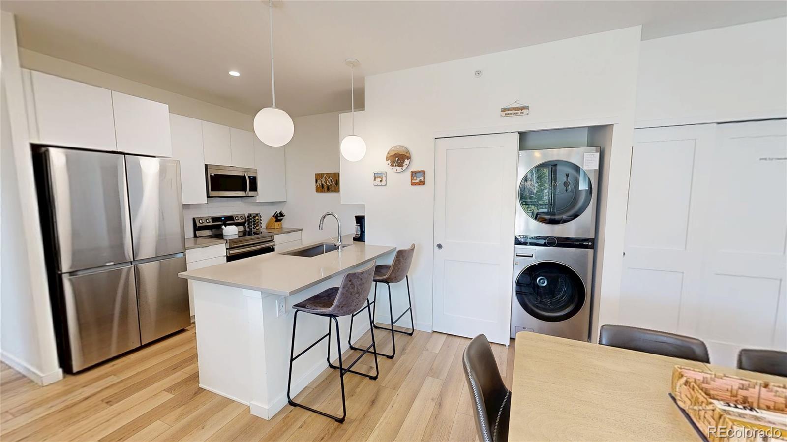 Enjoy tranquil mountain luxury in this fully furnished, stocked and completely turnkey. Perfect for families, adventurers, and those seeking a mountain escape. The primary suite has a king bed + en-suite 3/4 bath. The queen bedroom is perfect for quiet reflections. The bunk area has a cozy triple bunk bed (3 twins), perfect for our younger adventure seekers, giving them their own dedicated space to reflect on their day. The kitchen is fully equipped and ready for you to entertain or be entertained with an eat-up bar and table. Experience the warmth of the contemporary fireplace, inviting intimate conversations and cozy evenings with a book or glass of wine. Step outside to the private patio to enjoy the fresh mountain air, al fresco dining or take in the peace and tranquility of the mountains, all while enjoying beautiful mountain views. Whether you're starting your day with a cup of coffee gazing at the mountains, or winding down under the starlit sky, this outdoor oasis will surely be a favorite spot. Every detail in this condo has been carefully curated for families, adventurers, and those seeking a serene mountain escape. Top floor end unit with complete privacy, hot tub-ready patio and just around the corner from The Lift free shuttle into/around Fraser and Winter Park. Fraser is on the forefront of expansion from the upcoming Winter Park Unlocked project - a $2billion new development featuring entertainment + a gondola connecting downtown Winter Park to the slopes. Dive into modern comforts, be captivated by natural beauty, and create memories that last a lifetime in Fraser, CO. Take advantage of this opportunity to make this low-maintenance mountain retreat your own!