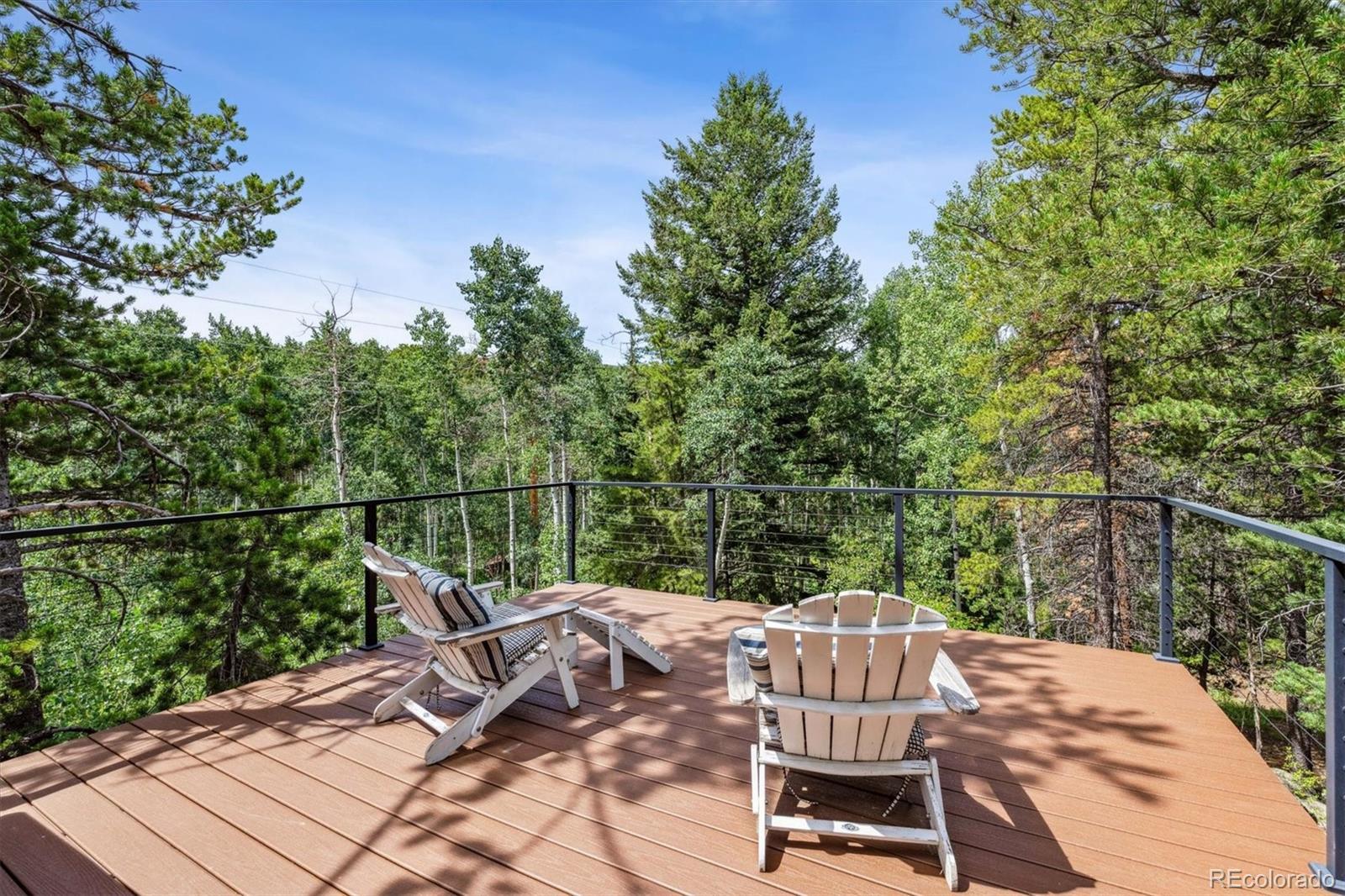 Welcome to your serene and peaceful retreat located in Coal Creek Canyon, just 45 minutes (33.6mi) from the I-25/I-70 Turnpike. Perched atop an estimated 55-million-year-old rock formation is a real example of Colorado mountain living. A rustic, quaint little cabin that features a new composite deck with breathtaking and astonishing views of your own personal aspen grove. This is an ideal spot for morning coffee, afternoon BBQs, and evening stargazing with your favorite beverage. Nestled amidst this dense, healthy forest is an enchanting aspen grove that brings all types of wildlife, from bears, deer, elk, moose, to cute little foxes. The cabin is a minimalist dream for easy living and minimal maintenance. Whether it's your 2nd home or primary home, you can relax and enjoy the beauty of the mountain life. The cabin features high-speed wired/wireless internet, a bedroom, a sitting/TV area, a table for dining/games, and of course, the deck! What's incredible about the home is the privacy, as it's located at the end of a cul-de-sac, which allows for an escape from city life, with little to no vehicle traffic, yet there are amenities nearby. From the local watering hole, The Canyon Tavern, to the Wondervu café, serving "Mountain Mexican with Altitude" for breakfast, lunch, and dinner. And there is the classic little town of Nederland 20 minutes west, Gross Reservoir, Carter Lake, a disc golf course, a coffee shop, and other restaurants within a 5-10 minute drive.
