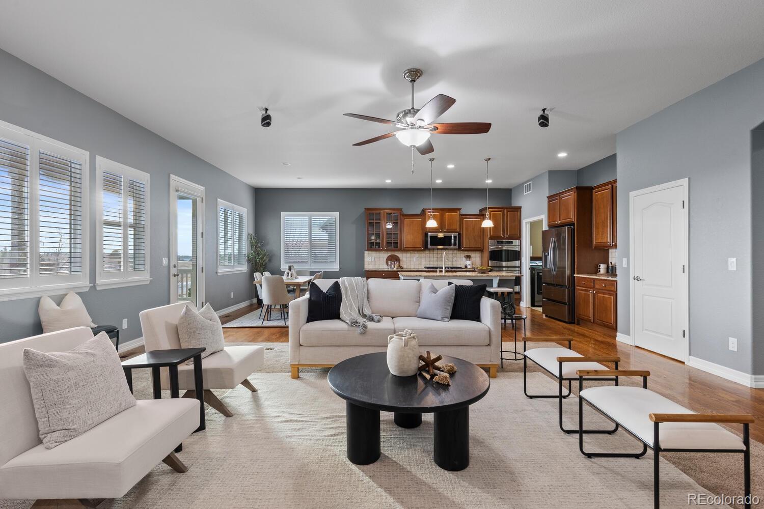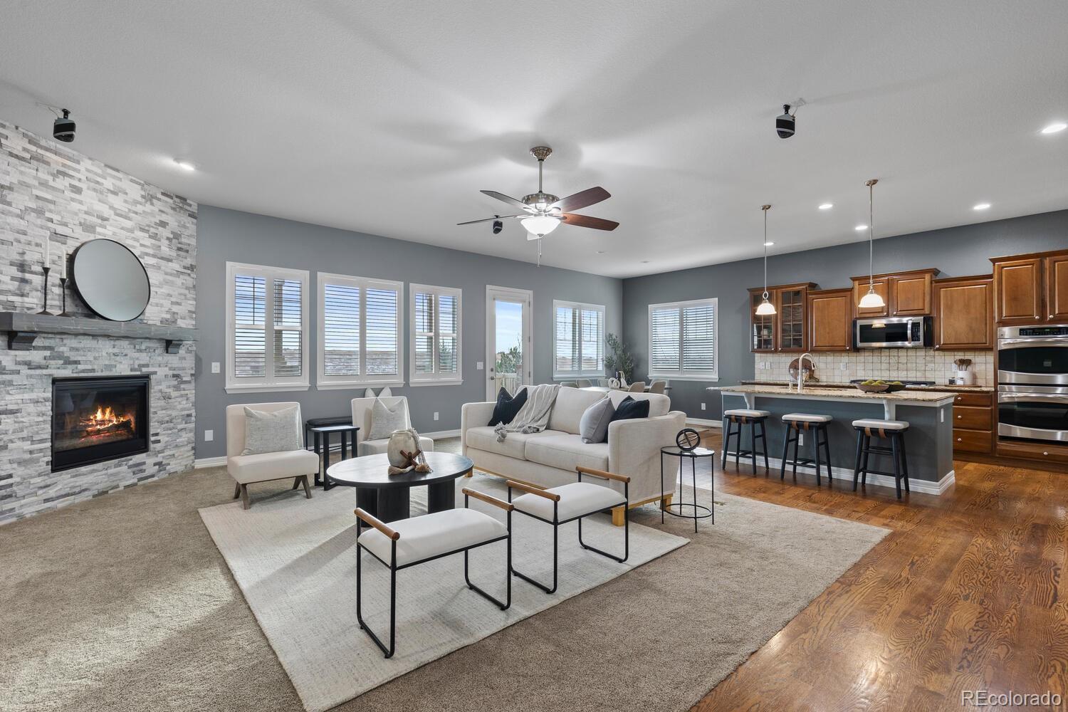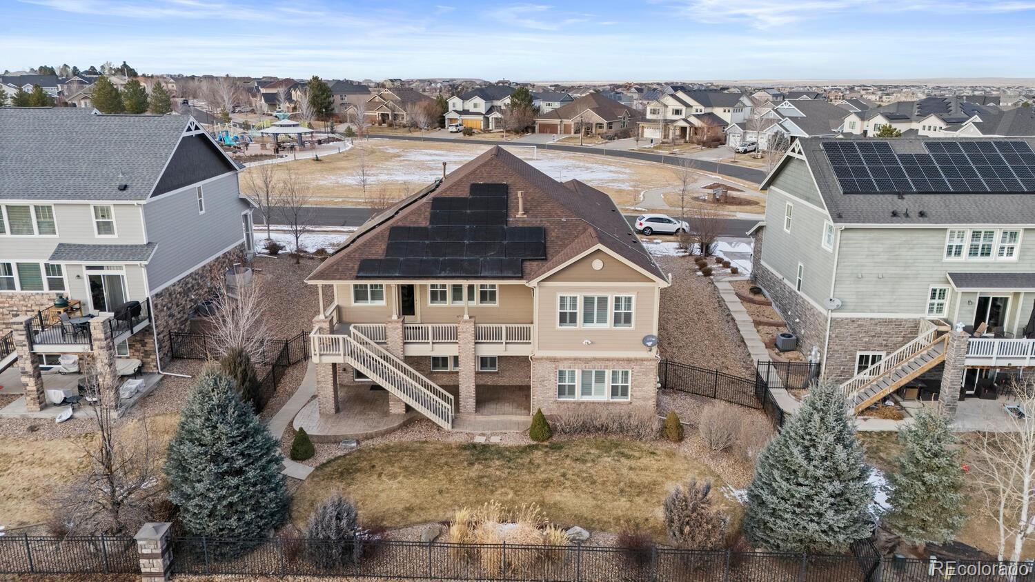 Step into a stunning residence in the highly sought-after Blackstone neighborhood of Aurora. Perfectly situated near Southlands Mall, top-rated dining, shopping, and just minutes to E-470. Nestled directly across from a neighborhood park with a basketball court. Relax on the expansive deck, enjoy morning coffee with the fresh Colorado air, or take in a spectacular Rocky Mountain sunset. Across the street, Toll Brothers ‘Piney Trails’ luxury multi-million-dollar homes are under construction, underscoring the long-term value and prestige of this location. Designed for both comfort and entertainment, this home features 4 spacious bedrooms/office, 3 bathrooms, a bonus room, media room, and a huge walk-out basement. The basement is an entertainer’s dream, boasting a fully finished bar, pool table (included), and versatile bonus room perfect for a home office, gym, playroom, or additional entertainment space. The private media/theater room is equipped with an incredible surround sound system and five luxury theater chairs (included). The upstairs living room also features built-in surround sound, creating a seamless audio experience throughout the home. All appliances, washer/dryer, all theatre room equipment / furniture and all TVs (4) are included, making this residence truly move-in ready. As a resident, you gain immediate access upon closing to the private Blackstone Country Club, offering a lifestyle beyond compare. Enjoy upscale dining, a resort-style pool with splash pad, tennis and pickleball courts, fitness center, and a full calendar of social events—all just steps from your door.