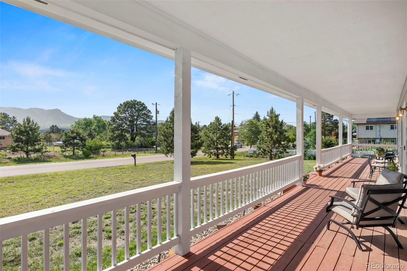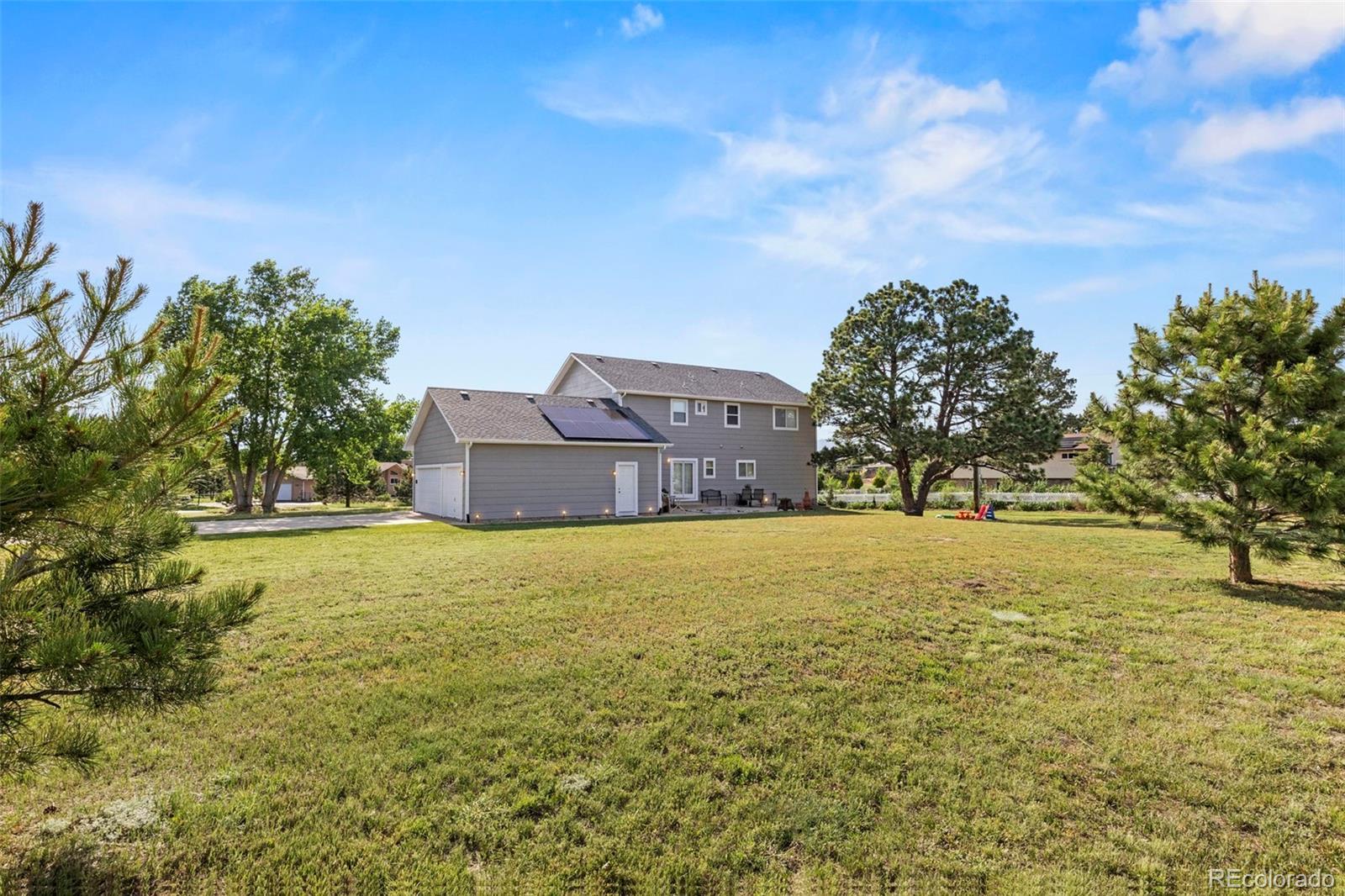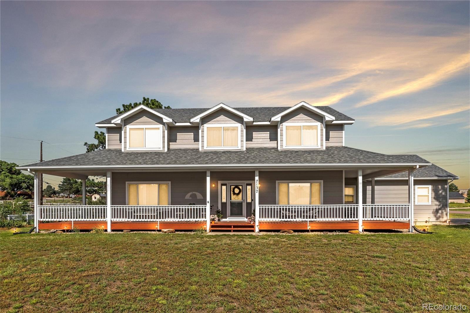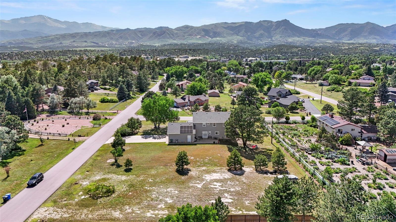 ONE ACRE LOT with VIEWS of the MOUNTAINS from the expansive front deck of this Colonial Style Home! Dreaming of a semi-rural lifestyle in the heart of the city? Your homestead awaits in The Falcon Estates. This coveted neighborhood blends urban convenience with country living. Perfect for those craving city amenities with a rural touch, this rare 4-bedroom, 3-bathroom home with a 3-car garage is the home you have been waiting for. Nestled on a ONE-ACRE corner lot, this property provides ample space and privacy. Inside, you'll find an open-concept main level with new carpet and interior paint. An inviting living room with mountain views flows seamlessly into the kitchen and formal dining room. The kitchen features granite countertops, a stone-accented breakfast bar, newly refaced white cabinets, stainless steel appliances, and updated lighting. The main level also includes a large sitting room or second living room with mountain views, access to the three-car garage, a powder room and a cozy office with french doors. Sliding glass doors open to a backyard complete with a relaxing patio, and the open backyard offers plenty of room to garden, have chickens, or entertain. Upstairs, an expansive master suite offers a true retreat with its en-suite bathroom. Three additional bedrooms and a full bathroom complete the upper level (All FOUR bedrooms on the upper level bedrooms –a rare find!) This home's appeal extends beyond its walls: situated in the highly sought-after D-20 school district, its minutes from dining and shopping at Falcon's Landing and other establishments on Academy Boulevard. Nature lovers will appreciate the short drive to stunning outdoor spaces like Ute Valley Park and Blodgett Peak. Recent upgrades include fresh interior and exterior paint, new carpet, solar panels, granite countertops in the kitchen, and new light fixtures on the main level. Even more, imagine adding a large steel barn shed for your toys on this level 1-acre property.