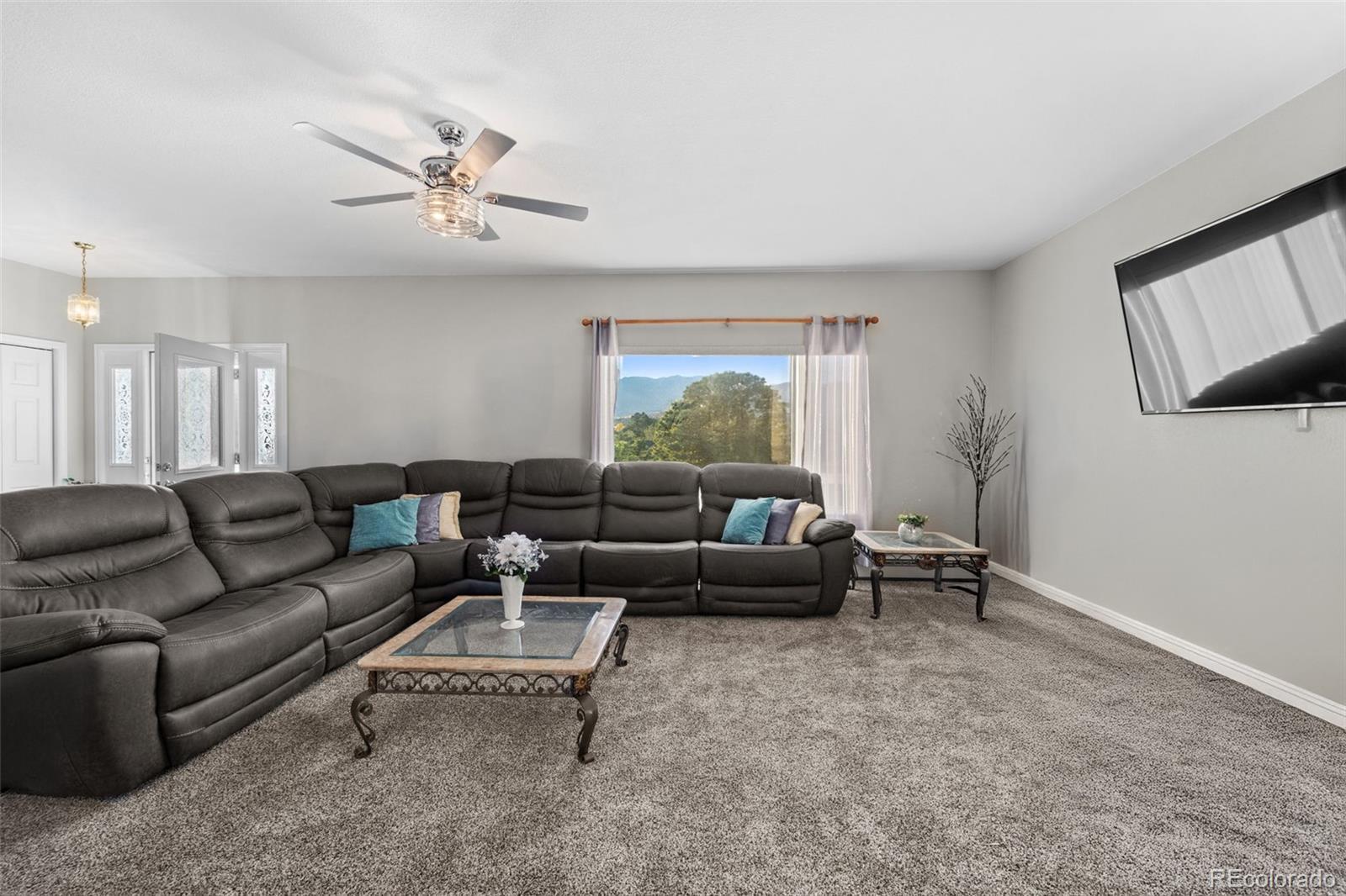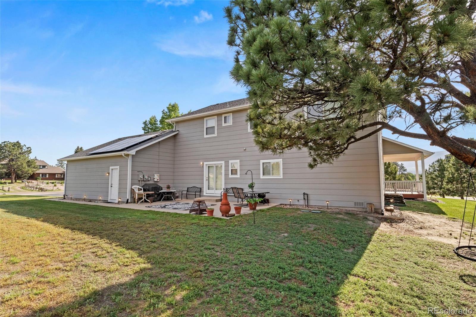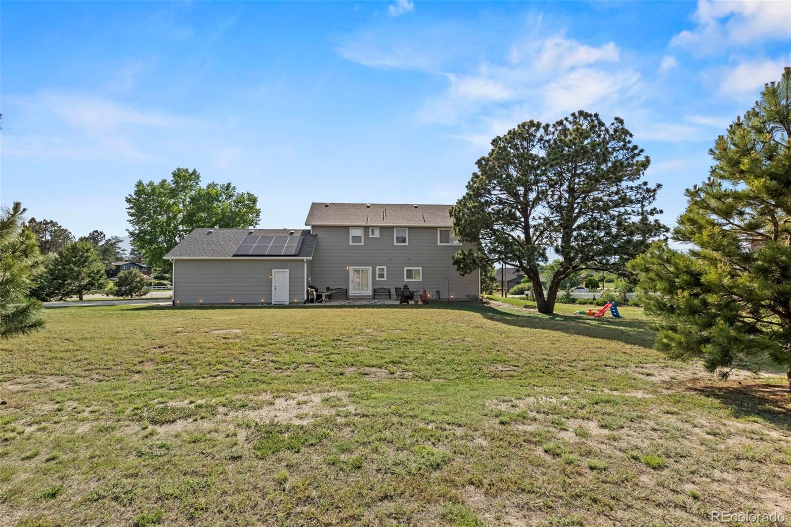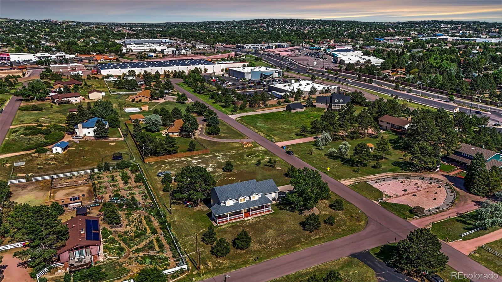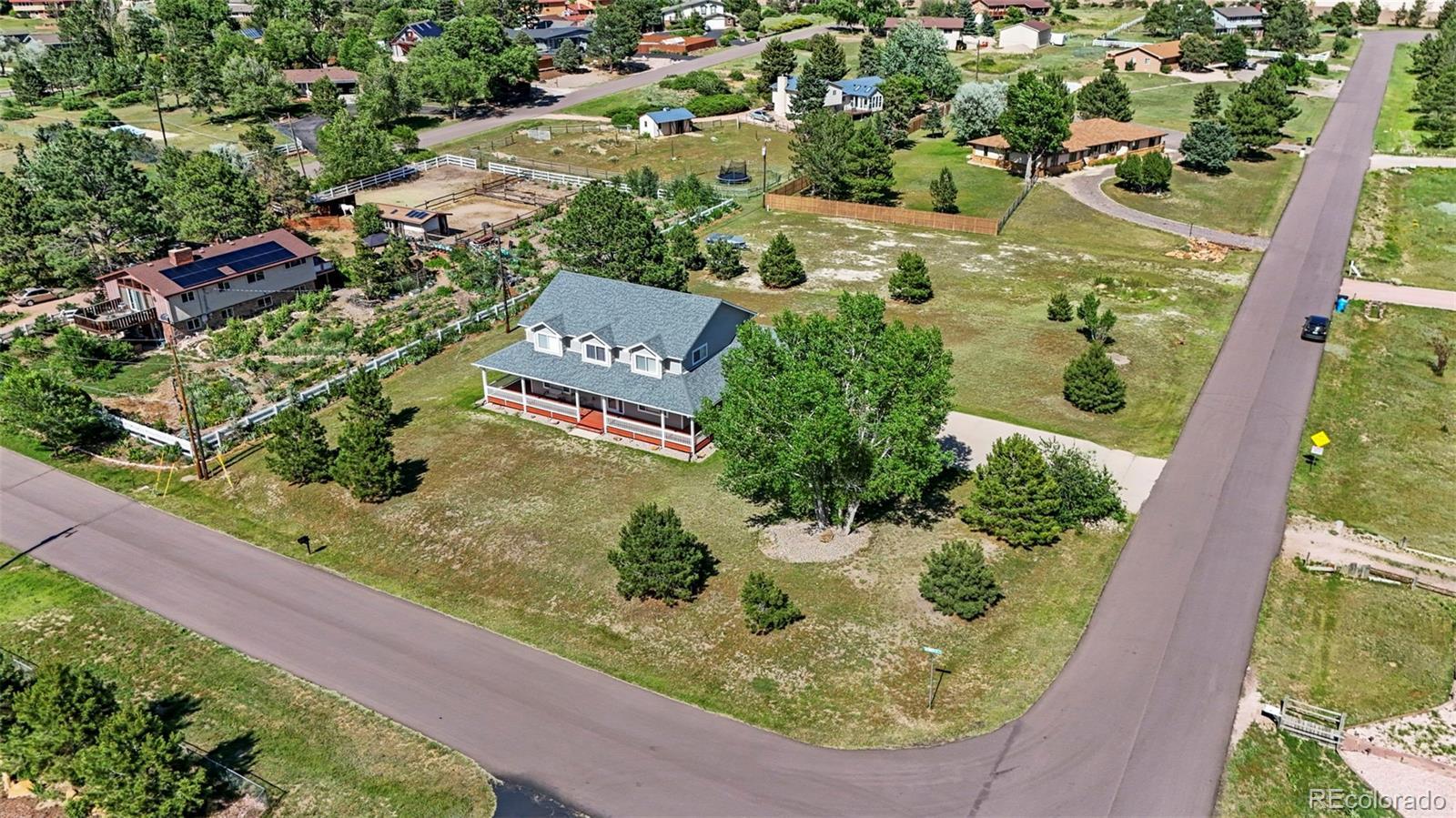 ONE ACRE LOT with VIEWS of the MOUNTAINS from the expansive front deck of this Colonial Style Home! Dreaming of a semi-rural lifestyle in the heart of the city? Your homestead awaits in The Falcon Estates. This coveted neighborhood blends urban convenience with country living. Perfect for those craving city amenities with a rural touch, this rare 4-bedroom, 3-bathroom home with a 3-car garage is the home you have been waiting for. Nestled on a ONE-ACRE corner lot, this property provides ample space and privacy. Inside, you'll find an open-concept main level with new carpet and interior paint. An inviting living room with mountain views flows seamlessly into the kitchen and formal dining room. The kitchen features granite countertops, a stone-accented breakfast bar, newly refaced white cabinets, stainless steel appliances, and updated lighting. The main level also includes a large sitting room or second living room with mountain views, access to the three-car garage, a powder room and a cozy office with french doors. Sliding glass doors open to a backyard complete with a relaxing patio, and the open backyard offers plenty of room to garden, have chickens, or entertain. Upstairs, an expansive master suite offers a true retreat with its en-suite bathroom. Three additional bedrooms and a full bathroom complete the upper level (All FOUR bedrooms on the upper level bedrooms –a rare find!) This home's appeal extends beyond its walls: situated in the highly sought-after D-20 school district, its minutes from dining and shopping at Falcon's Landing and other establishments on Academy Boulevard. Nature lovers will appreciate the short drive to stunning outdoor spaces like Ute Valley Park and Blodgett Peak. Recent upgrades include fresh interior and exterior paint, new carpet, solar panels, granite countertops in the kitchen, and new light fixtures on the main level. Even more, imagine adding a large steel barn shed for your toys on this level 1-acre property.