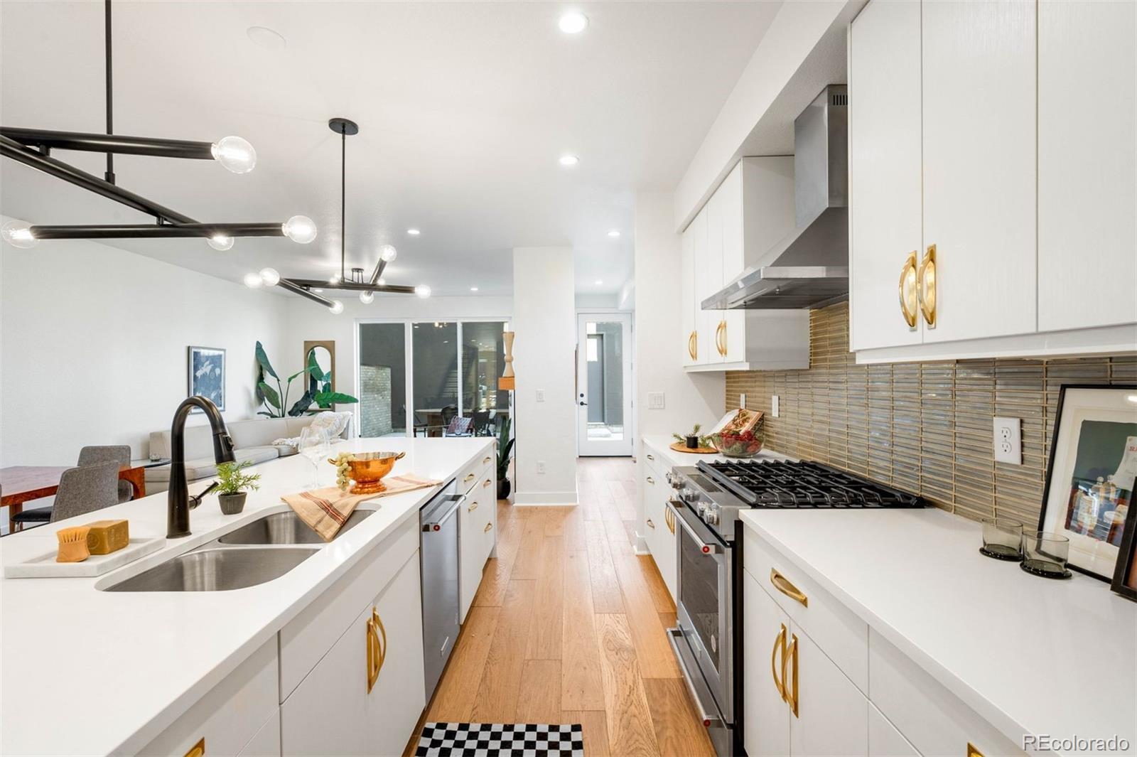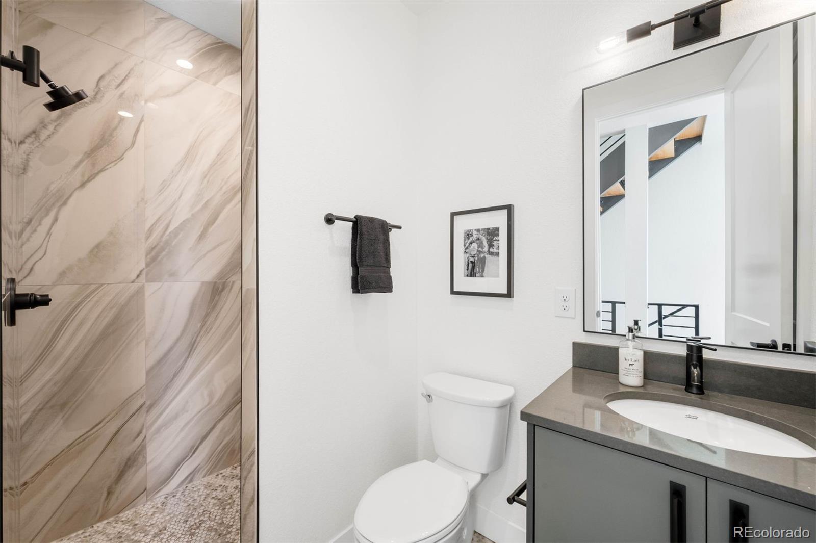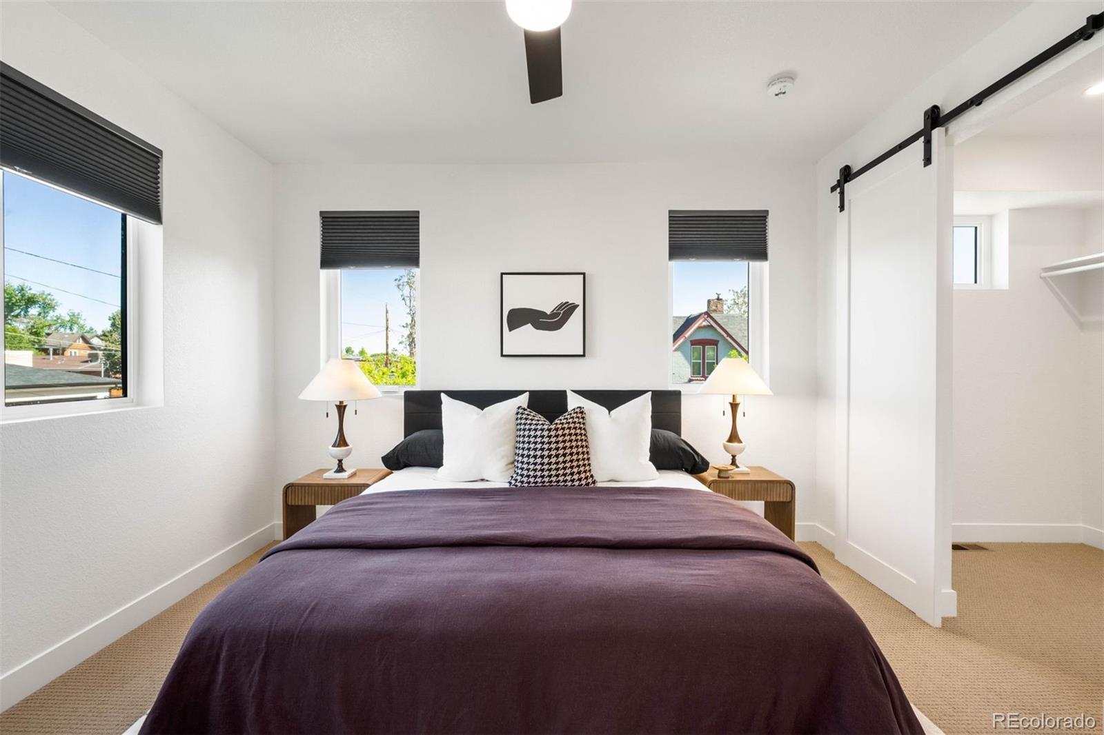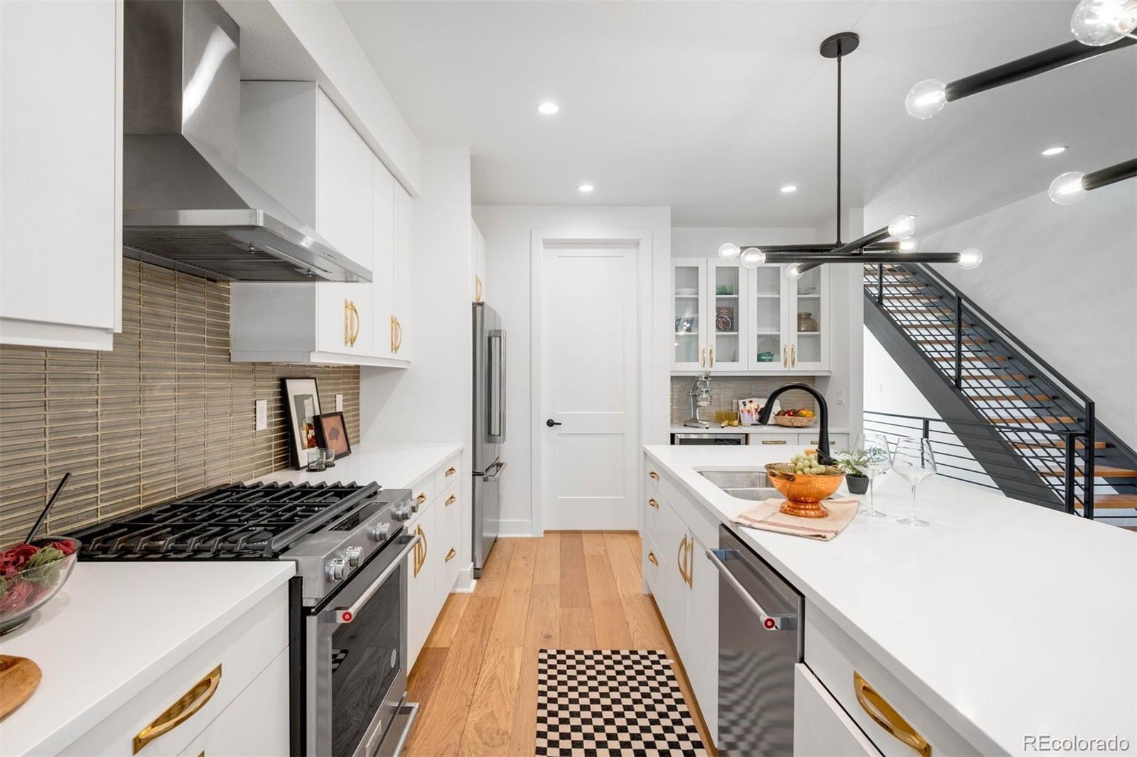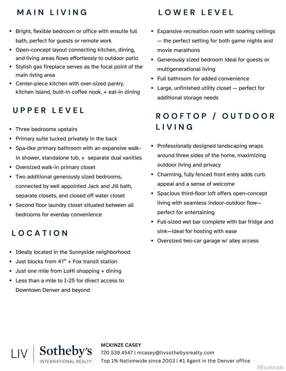 Close to public transit, minutes from highway access and LoHi, this Sunnyside duplex offers the ultimate in location, lifestyle, and layout. With an oversized, fully fenced yard that wraps around the entire north side of the property and bedrooms on every level, this property is perfectly suited for both everyday living and entertaining. Step inside to find a flexible, sunny east-facing main-floor bedroom or office space with its own ensuite bath—ideal for guests or remote work. The heart of the home features an open-concept kitchen with an eat-in dining area, coffee bar nook, oversized walk-in pantry, and a cozy living room with gas fireplace. Slide open the doors to the back patio and enjoy seamless indoor-outdoor living and al fresco dining in your expansive wrap-around yard with an over-sized two-car garage. Upstairs, three well-appointed bedrooms include a primary suite tucked quietly in the back, featuring a spacious walk-in closet and a luxurious five-piece ensuite. Two additional bedrooms share a functional Jack-and-Jill bath, and a second-floor laundry room adds convenience to the everyday routine. The third-floor loft is ripe for entertainment with a wet bar, powder room, and access to an expansive rooftop deck—perfect for relaxing or hosting with a view. Downstairs, the finished basement offers a large rec room for movie nights, oversized full bath with walk-in shower, and a generously sized bedroom—ideal for overnight guests. With its unbeatable location just blocks from a transit station and quick access to major routes, this home truly is a commuter’s dream—offering space, flexibility, and style in one of the city’s most sought-after neighborhoods.