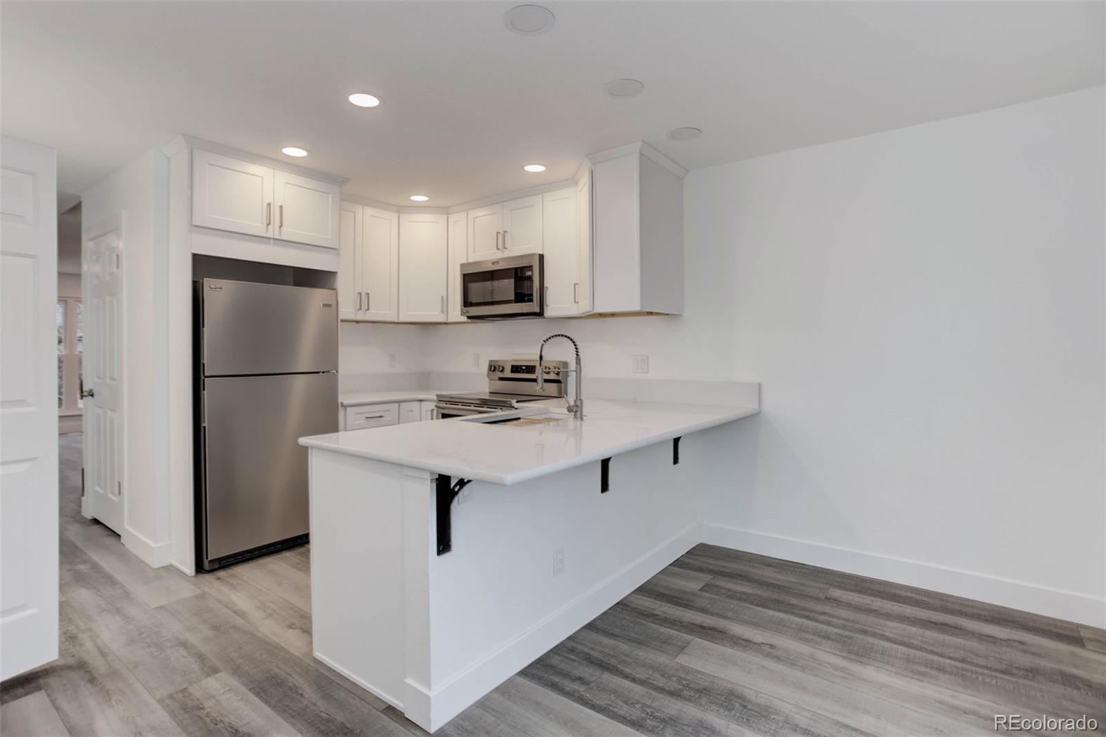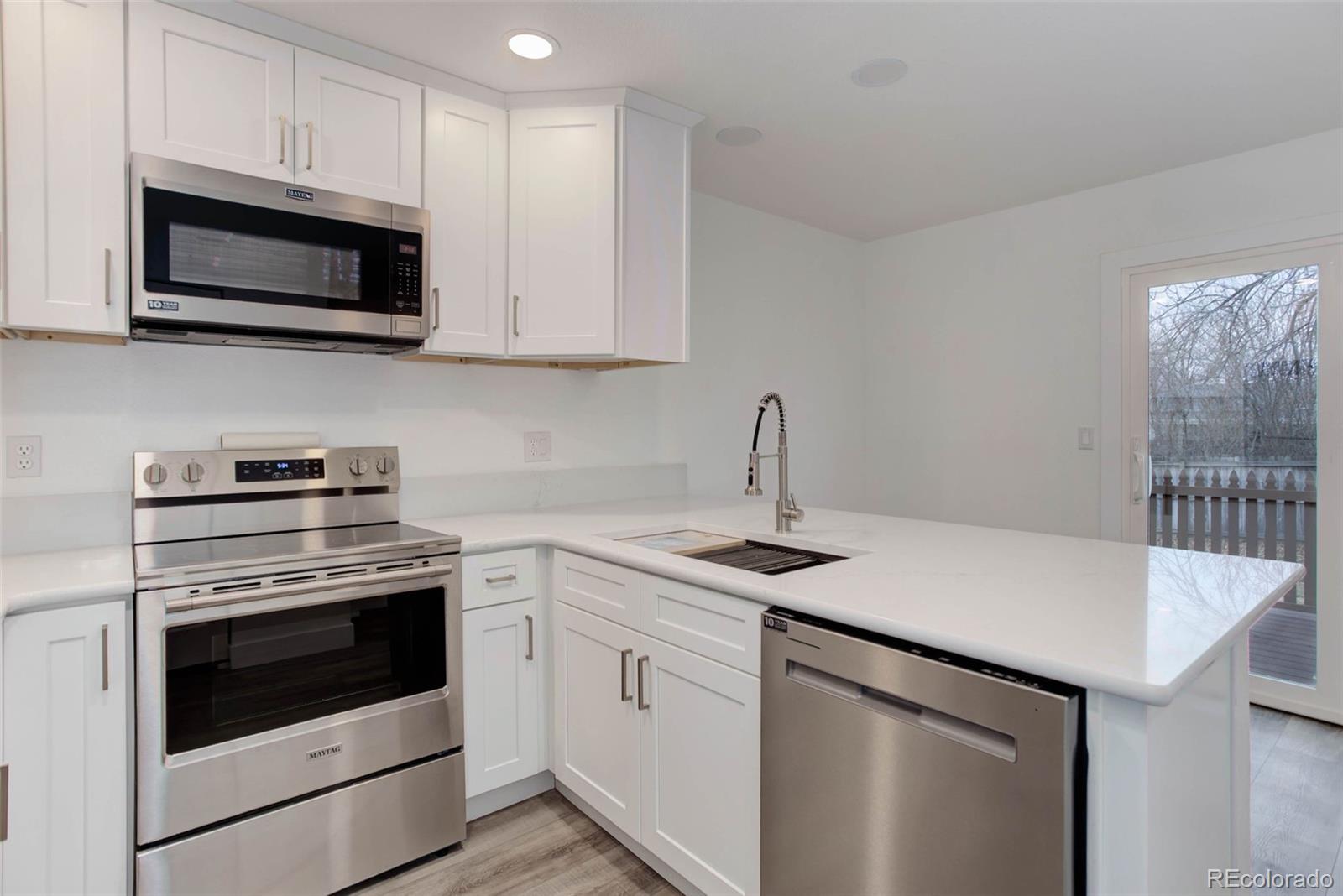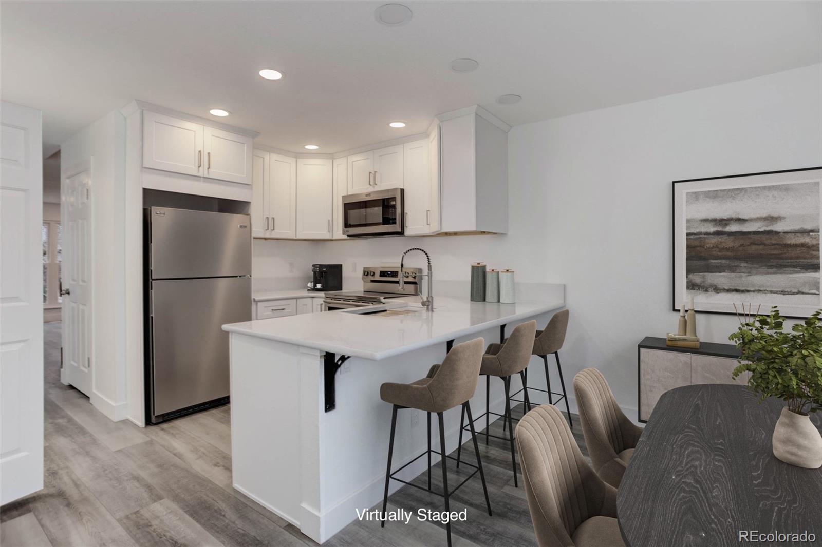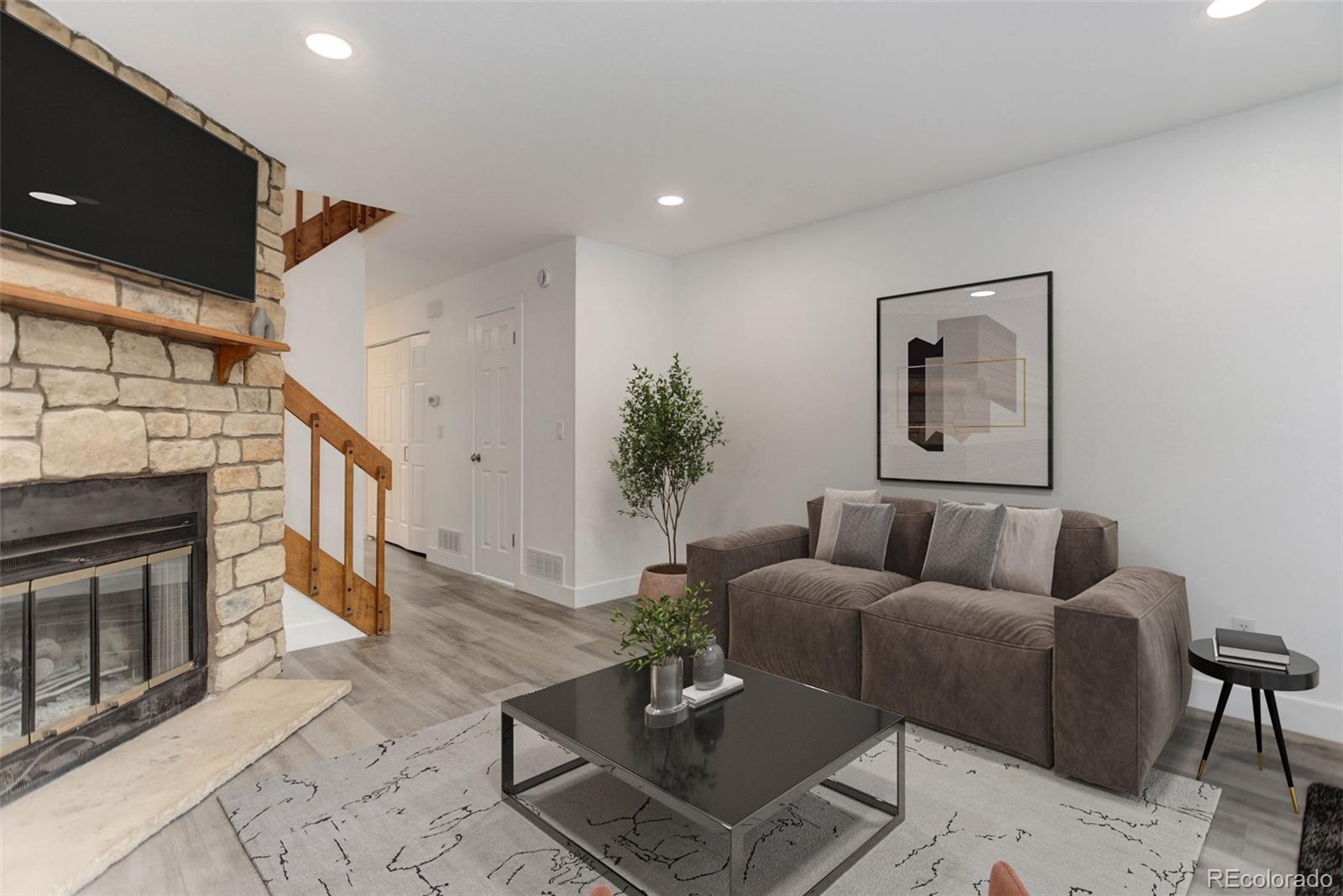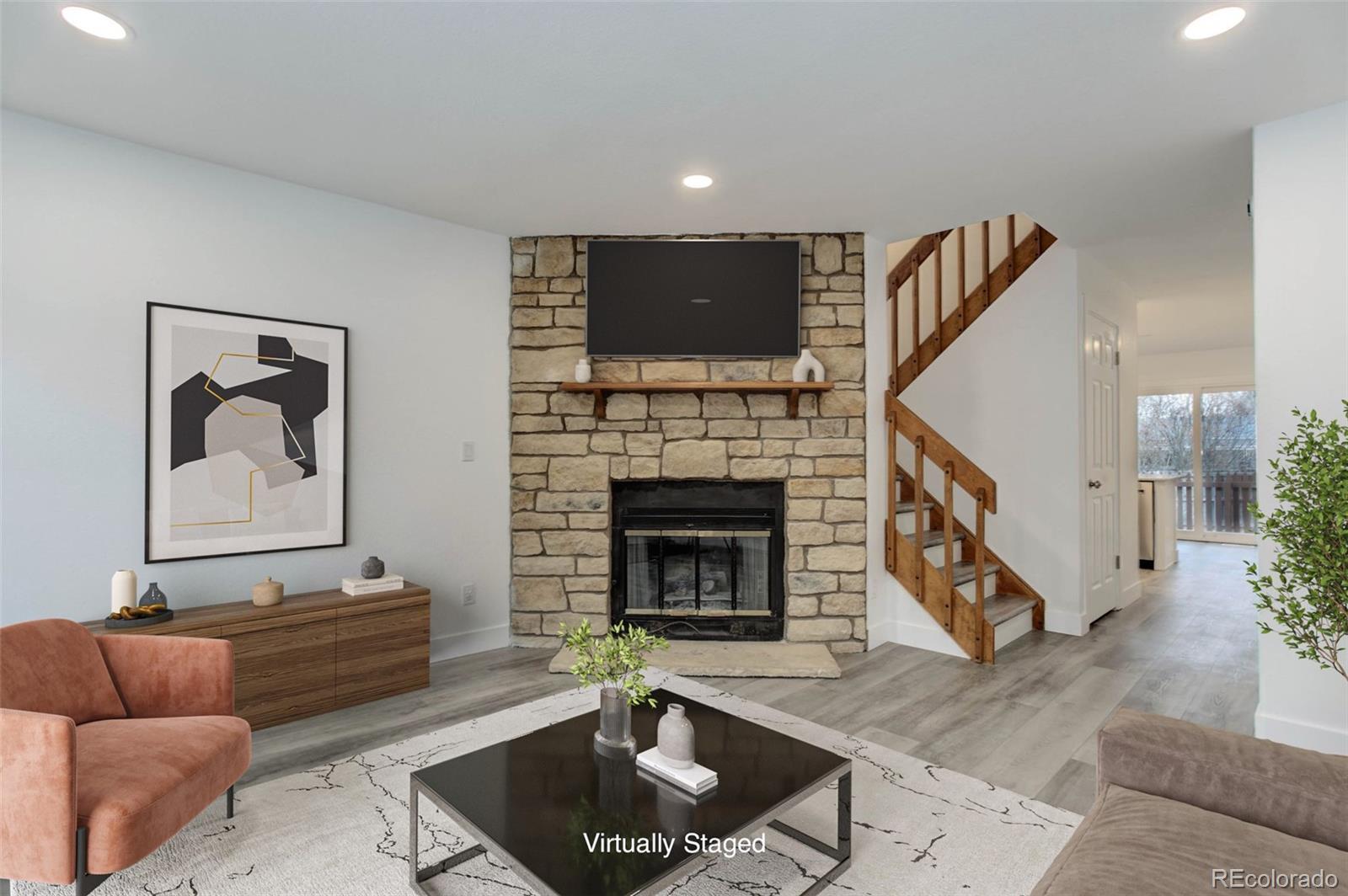 Wow, Wow, Wow, Stunning remodel! This beautiful end unit 2 Story townhome offers top of line beauty and functionality that anyone would be proud to call this property, home! The family room is updated with beautiful LVP flooring and a cozy wood burning fireplace for those cold winter nights. The LVP flooring can be found throughout the entire unit which makes cleaning a breeze. The kitchen features beautiful quartz countertops, all new cabinets, fixtures, appliances and lighting. The 1/2 bath has been remodeled and is perfect for all your guests. Conveniently located laundry completes the main floor and includes the washer and dryer. As you venture upstairs, you will love the two primary bedrooms each with their own private 3/4 baths that include new showers, vanities, toilets and fixtures New windows, flooring, fixtures, cabinets, paint, countertops, lighting, fencing and deck. You will have will have complete peace of mind knowing that all of the major items have been addressed. Check out the new deck and fencing out back. Hot water heater is less than 3 years old. The list of improvements is incredible including all new windows, trim, cabinets, countertops, stainless steel appliances, lighting, plumbing, paint, fixtures and more! Conveniently located in area close to shopping, restaurants, downtown Denver, DIA, light rail & bus stops plus more. This is truly the BEST unit in the neighborhood. Don't miss your opportunity to get into the housing market with this elegant remodel!
