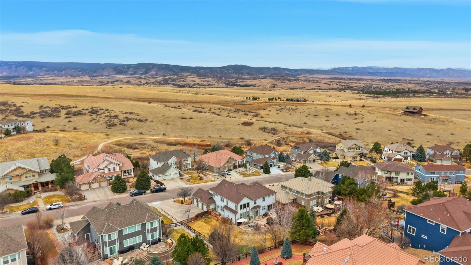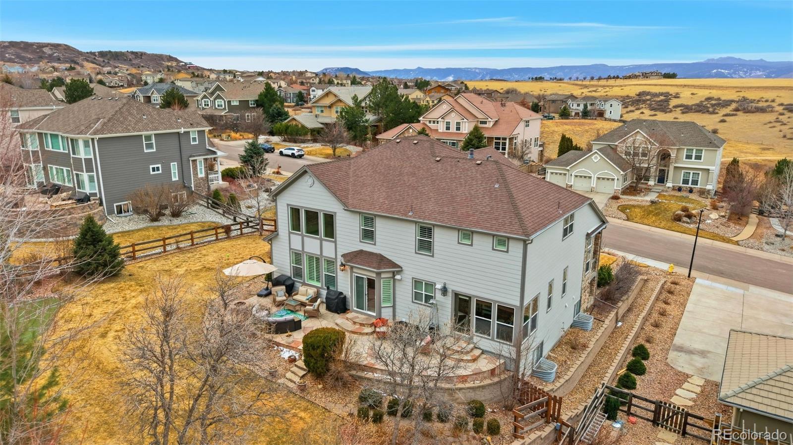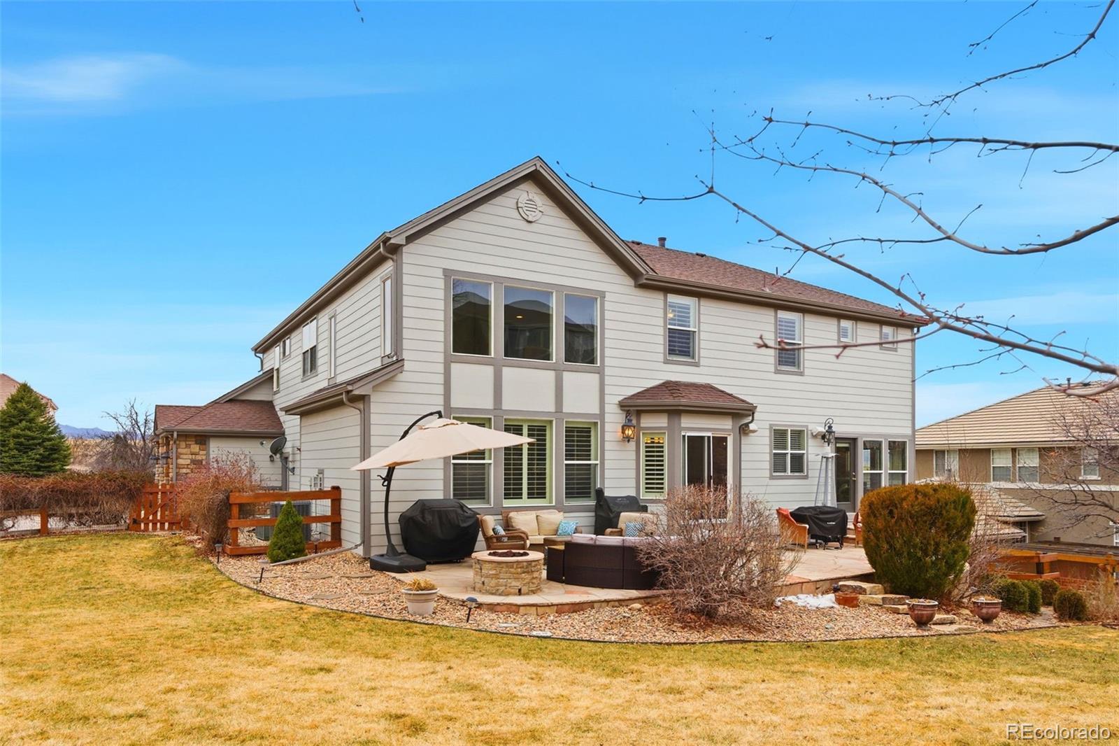 STUNNING UPDATED HOME IN EXCLUSIVE SOARING EAGLE ESTATES* TREMENDOUS CURB APPEAL & STATELY POISED ON ELEVATED LOT WITH COMMANDING MOUNTAIN VIEWS FROM THE FRONT* WONDERFUL FLOORPLAN FOR LARGE FAMILY WITH CREATIVE SPACE FOR ALL* GRAND, INVITING ENTRY* HUGE MEDIA ROOM ON MAIN LEVEL- IDEAL FOR MOVIE NIGHTS* SUN ROOM OFF THE REAR OFFERING DIRECT ACCRESS TO BACKYARD- THE PERFECT AREA FOR THAT MORNING CUP OF JOE* EXECUTIVE OFFICE W/ BUILT INS & FRENCH DOORS* FINISHED BASEMENT FEATURING FULL BAR W/ CUSTOM CABS & GRANITE COUNTERS, GAMING AREA, SECONDARY MEDIA AREA, 3/4 BATH W/ CUSTOM TILE WORK, 5TH BEDROOM/WORKOUT OR CRAFT ROOM & CRAWL SPACE FOR ADDED STORAGE* PRIMARY SUITE W/ DOUBLE DOOR ENTRY, FIREPLACE & WALK IN* GENEROUS SECONDARY BEDROOMS W/ VIEWS (1 ENSUITE)* LARGE PRIVATE REAR YARD W/ EXTENDED FLAGSTONE PATIO, GAS FIREPIT/ SITTING AREA, VIEWS FROM HOT TUB (INCLUDED), DOG RUN & MATURE PROFESSIONAL LANDSCAPING PROVIDING EXCELLENT PRIVACY IN SUMMER BLOOM* NEW FURNACE (MAIN LEVEL)* NEWER TANKLESS H20 HEATER* BRAND NEW CARPET* NEWER INTERIOR PAINT* SIDE LOAD 3 CAR GARAGE* PLANTATION SHUTTERS* SURROUND SOUND SPEAKERS THROUGHOUT HOME* TREMENDOUSLY CARED FOR PROPERTY* THE MEADOWS IS A LARGE MASTER PLANNED COMMUNITY OFFERING TOP RATED SCHOOLS, PARKS, TRAILS & POOL/CLUBHOUSE (THE GRANGE)- CONVENIENTLY LOCATED MINUTES TO THE VIBRANT DOWNTOWN OF OLD CASTLE ROCK & EASY ACCESS TO I25 & DENVER TECH CENTER* WELCOME HOME.