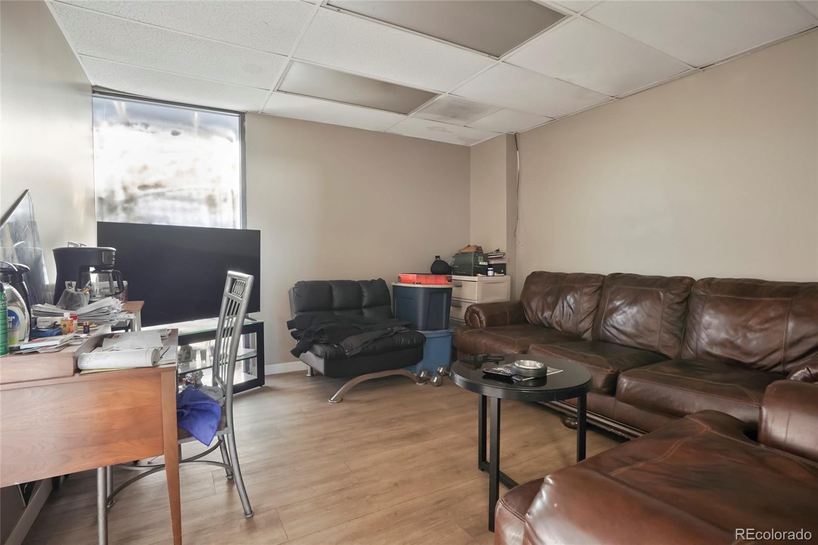 A unique opportunity in the metro area, this versatile flex condominium features a 12-foot drive-in door and a fenced outdoor storage area, a combination that is seldom available for purchase. The property is conveniently situated just west of I-225 along East 6th Avenue, offering excellent accessibility. The unit includes approximately 300 square feet of finished office space and 1,100 square feet of warehouse area with an impressive 13’10” ceiling height. Prevailing market rents are estimated between $2,300 and $2,500 per month, and monthly Owners Association dues are $287. All square footage and measurements areapproximate and should be independently verified by the buyer.
