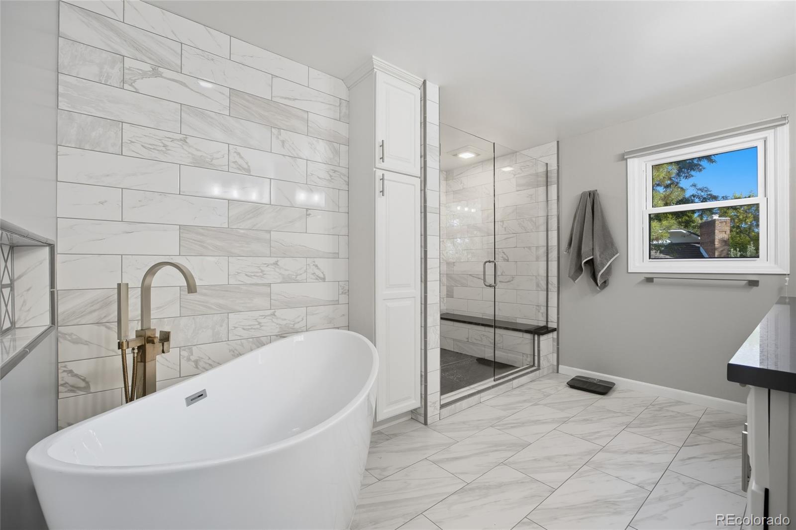 Nestled at the end of a quiet cul-de-sac within this wonderful neighborhood. This spacious & beautifully updated home is a true gem. Inside, you’ll find 5 generously sized bedrooms, including a huge primary suite featuring a sitting area w/1 of the 3 new gas fireplaces, an oversized walk-in closet, and a brand-new deck. The fully remodeled five-piece en-suite bathroom boasts heated floors, a large walk-in shower, and a soaking tub. The secondary upstairs bathroom has been tastefully remodeled with dual sinks, a skylight, and a bathtub. Three additional light-filled bedrooms complete the upper level, including one with a custom built-in Murphy bed. The main floor boasts a private study featuring built-in shelves and direct access to the powder room. The formal living room has the 2nd of 3 new fireplaces and the dining room features a wonderful (and brand new) sliding door to a private side patio. The super spacious family room also has a gas fireplace, wood floors and a brand new slider to the beautiful yard. The lovely covered patio is perfect for cooking out and entertaining. Remodeled main-level laundry / mud room features tons of counters and access to both the garage & exterior of the home. Featuring a brand-new finished basement with 2 egress windows, the 5th bedroom has tons of built in cabinetry. The basement full bath has been beautifully remodeled. Upgrades include new windows throughout, a new HVAC system with humidifier, new sliders in both the dining and family rooms, a new electrical panel, and a premium stone-coated steel roof. Outdoors, the stunning backyard oasis is framed by mature trees and a brand-new fence. Enjoy entertaining on the covered brick patio overlooking the pristine lawn. A spacious three-car garage completes this wonderful property. Just steps away from Cherry Creek State Park, Bear Park, and community tennis courts. Top-rated schools including Cottonwood Creek Elementary & Cherry Creek High School.