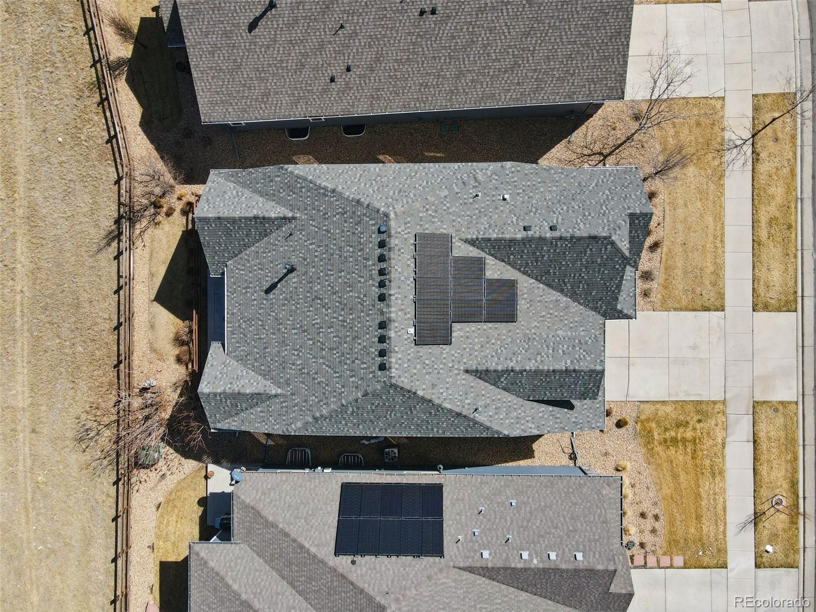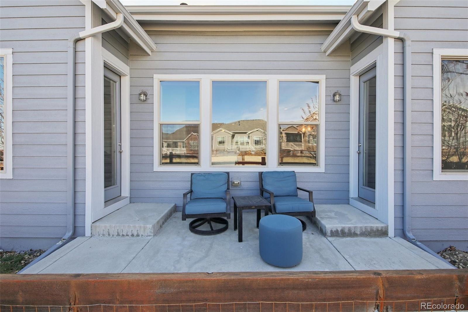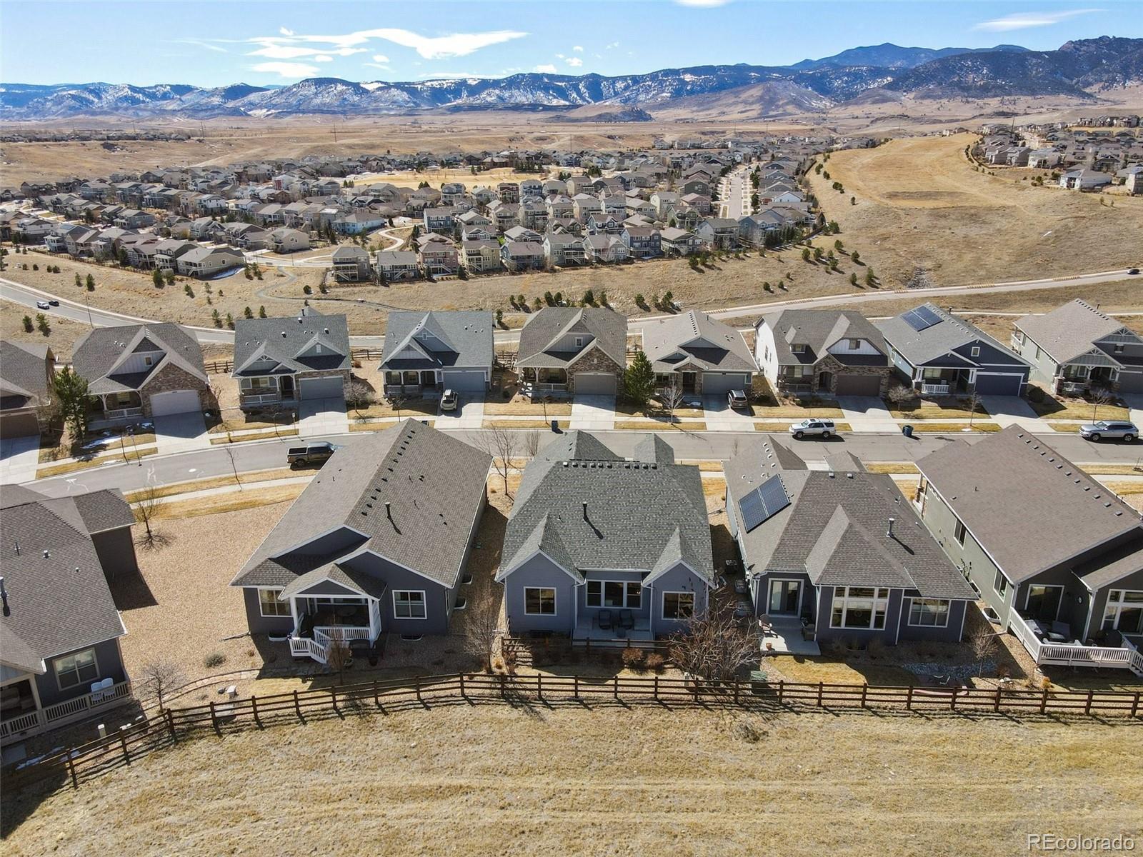 Modern comfort meets smart efficiency in this beautifully designed ranch home in the Leyden Rock Community of West Arvada. The open-concept floor plan creates effortless flow between the kitchen, dining, and living areas, anchored by a cozy gas fireplace and built-in surround sound in the great room—creating the perfect setting for both relaxing evenings and entertaining. The kitchen features stainless steel appliances, granite countertops, ample cabinetry, and generous prep space—ideal for everyday living and hosting guests. Thoughtfully designed for true main-level living, this home offers a functional layout filled with abundant natural light. Step outside to a private backyard patio—perfect for summer evenings—along with a fully fenced dog run for your pets. The covered front porch adds charming curb appeal and a welcoming place to relax. Backing to community open space with no neighbors behind, this unique setting offers exceptional privacy and tranquility. An attached two-car garage adds practicality, while the solar panels—paid off at closing and conveyed free and clear—deliver long-term energy savings and enhanced value. This home blends style, efficiency, and low-maintenance living in a highly desirable Arvada location.