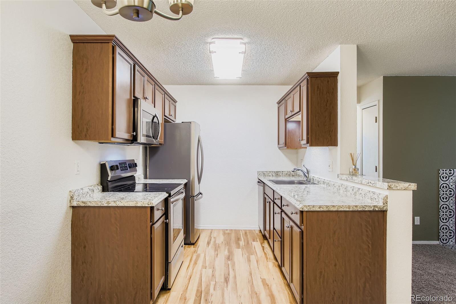 This charming and affordably priced main-floor condo is a true gem! Tucked at the end of a quiet cul-de-sac, backing to a peaceful greenbelt and creek, with an attached one-car garage! Step inside and enjoy the fresh feel throughout. Many features in the home have been replaced in the last few years including light fixtures, paint, carpet, and appliances. The cozy living room offers plenty of natural light and a beautiful wood-burning fireplace, creating the perfect space to relax or entertain. The kitchen was also updated within the last few years featuring newer appliances and cabinetry, ready for your culinary adventures! You’ll love the spacious primary suite with vaulted ceilings, large windows, and a walk-in closet. The second bedroom is also generously sized and includes its own walk-in closet. Additional highlights include a newer furnace and A/C (2022), washer and dryer and plenty of storage. The location is unbeatable, with trails, parks, Standley Lake, Apex Recreation Center, all being nearby. You’re just a short drive from Old Town Arvada, Downtown Golden, Boulder, and Denver. Less than 15 minutes away from the Arvada Ridge RTD Light Rail Station! Welcome home!