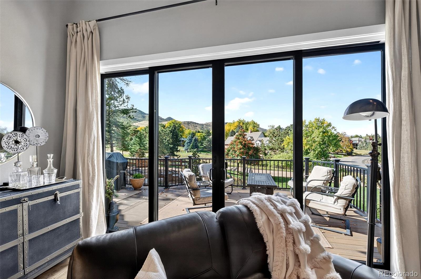 This stunning main floor primary suite is located in the North Ranch at Ken Caryl Valley, offering breathtaking views of open space. The home has been thoughtfully renovated, featuring new Andersen windows and a custom design throughout. On the main floor, you'll find a spacious primary suite complete with a luxurious bathroom and a large walk-in closet. The layout includes a huge laundry room equipped with a dog wash and ample cabinetry, a dining room, a comfortable study or foyer, and a family room that showcases beautiful views. The gourmet kitchen is a chef's dream, featuring a breakfast nook, a generous walk-in pantry, a large center island with built-in seating, top-of-the-line appliances, and two beverage refrigerators. The upper level boasts two lofts, one of which serves as an ideal second study, along with two additional bedrooms, each with its own ensuite bathroom. The finished walk-out basement includes a guest suite with a full bath, a great room featuring a wet bar and a gas fireplace. Outside, enjoy fantastic views from a fenced dog run, expansive deck and garden, a covered composite deck, a sports court, and beautifully landscaped grounds. Unparalleled Ken Caryl amenities with 3 Pools, tennis/pickleball, miles of trails, and many parks.