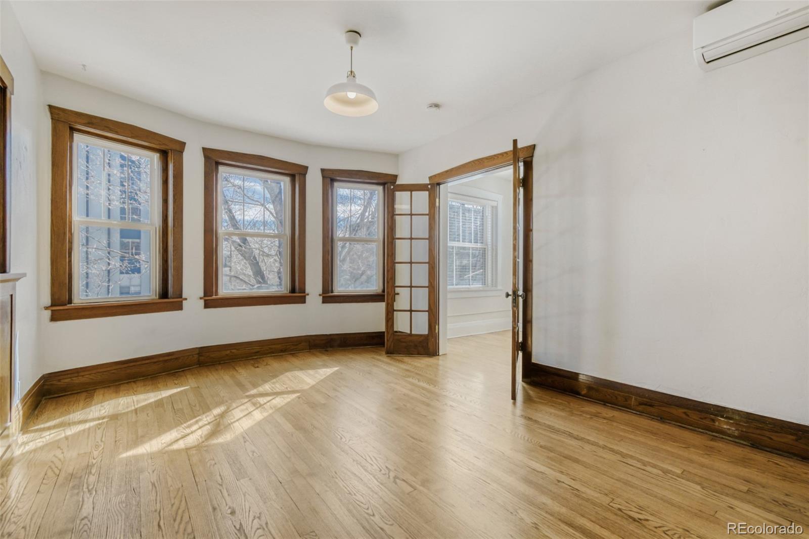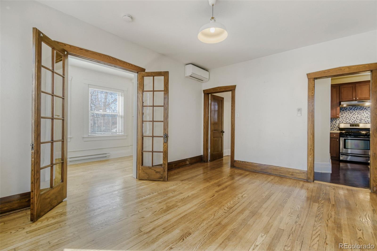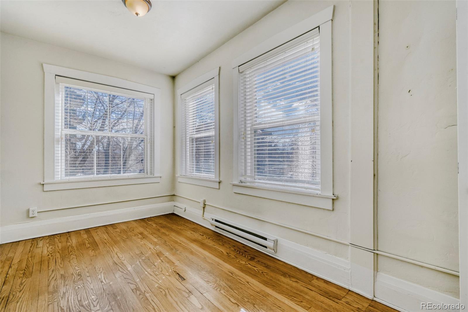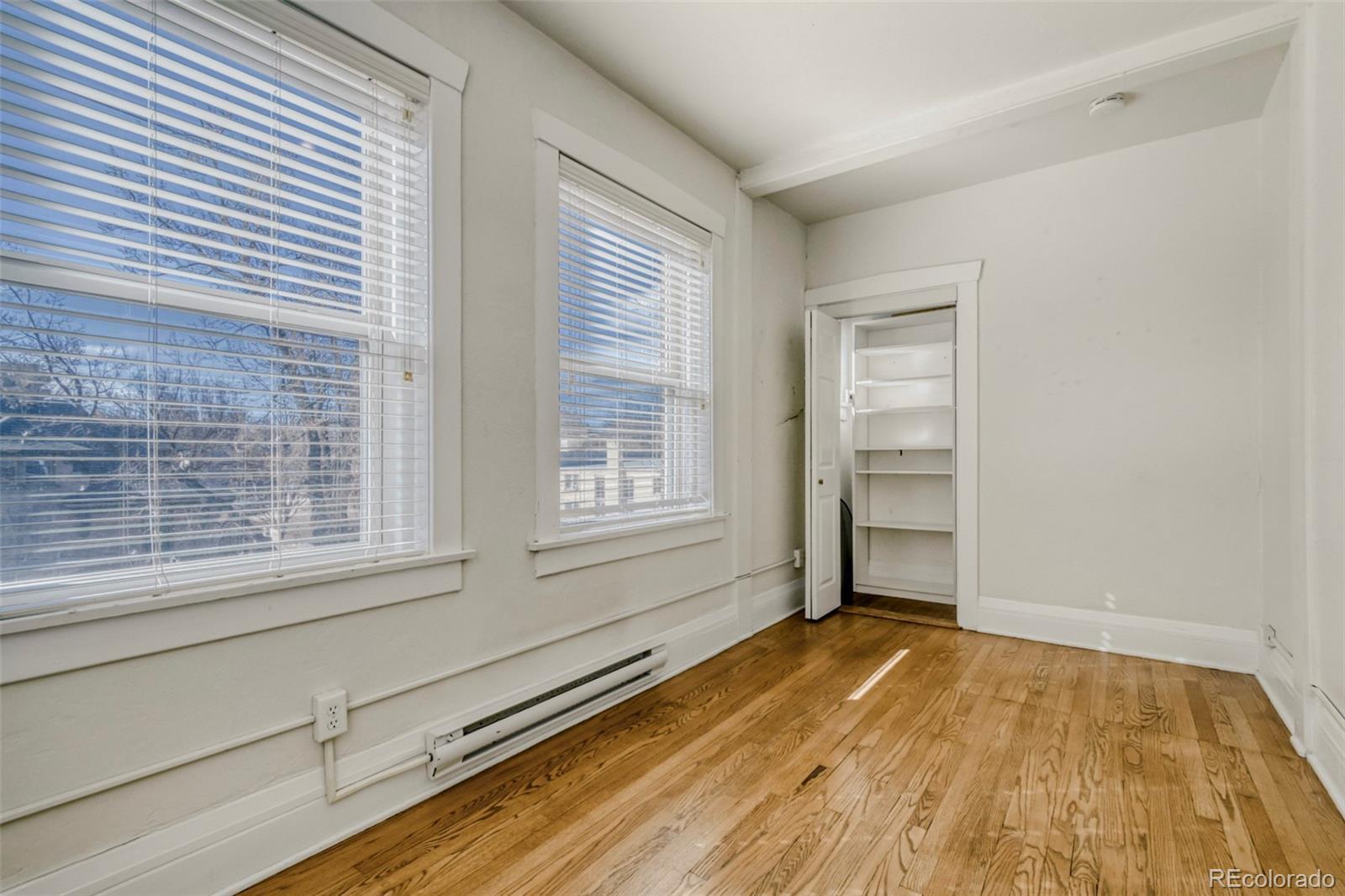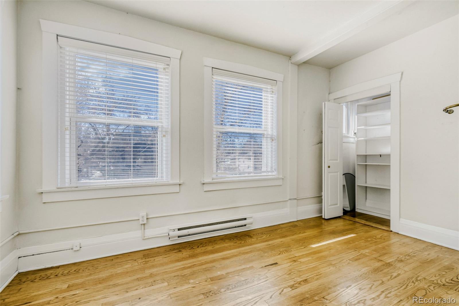 Welcome to your next chapter in the heart of Denver's historic Congress Park neighborhood. This beautifully maintained, sunny, top-floor unit offers an open floorplan with charming built-ins, hardwood floors, and stunning period details. This spacious 967 sq ft, two-bedroom, one-bathroom condominium offers walls of windows and sizable closets. The bathroom, conveniently located adjacent to the primary bedroom, features subway tile and a clawfoot tub/shower. The updated kitchen includes newer cabinetry, tile backsplash and S/S appliances(all included). The conveniently located mudroom/laundry room includes newer (2021) in-unit washer & dryer and is adjacent to the property's back entry, with a patio space with mountain views and stairs leading to the separate garage and a lush backyard. The property includes wall-mounted mini-splits, offering both cooling and heating options. Whether you are a Buyer looking for your next home or an investor looking for a rental property, this condo checks every box.