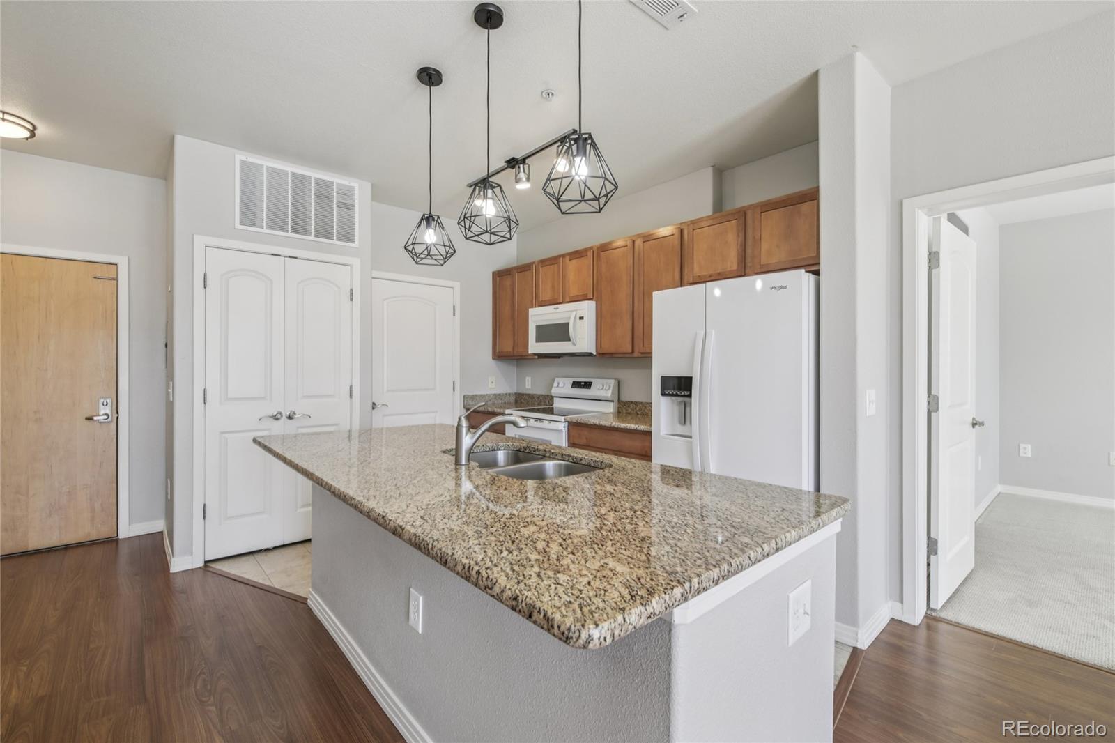 Lincoln Square Lofts - Whether you're driving to the Tech Center or taking the train downtown, your commute just got easier. With a short walk to Lincoln Station light rail or quick access to I-25 & C-470, all are easily accessible within minutes. Step inside to an open layout that just works—kitchen flowing into dining into living room, all anchored by a granite-topped island that's perfect for everything from meal prep to catching up with friends. When Colorado evenings get cool, your gas fireplace sets the vibe. Access your balcony just off the living room- perfect for a morning coffee and Colorado air. Here's what makes this place different: two full suites, two full baths. Whether you need a primary bedroom plus a guest suite, a work-from-home setup, or just love the idea of never sharing a bathroom again—you've got options. Both bathrooms come loaded: walk-in showers, soaking tubs, smart storage. One suite even has that walk-in closet you've been looking for. The practical stuff that makes life easier? In-unit laundry. Check. Reserved underground parking so you're never circling in winter storms? Double check. The HOA provides a state-of-the-art clubhouse with kitchen, fitness center. Soak up the Colorado sunshine - enjoy the outdoor pool, take advantage of the hot tub and grilling area featuring breathtaking mountain views. With local restaurants, parks, trails and shopping nearby this home offers the perfect blend of low-maintenance care and ease of Colorado living. Come take a look today!