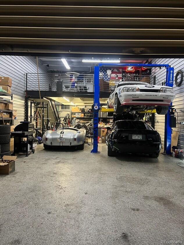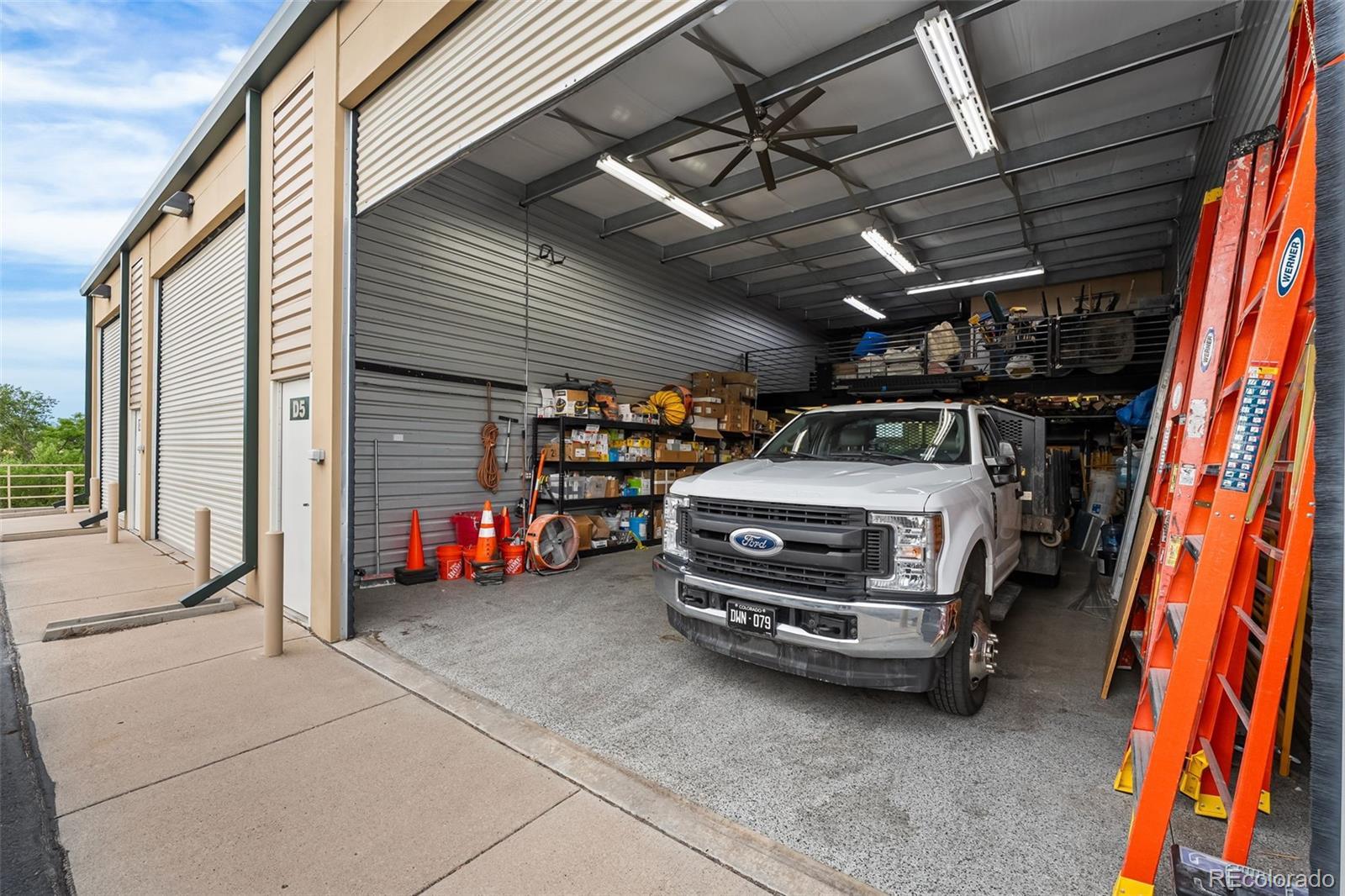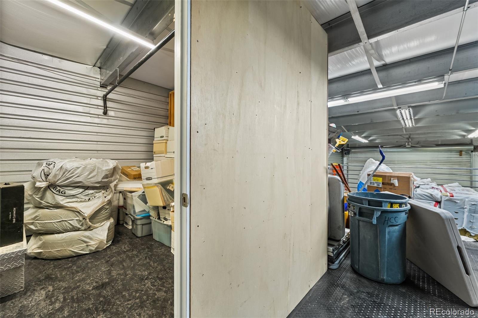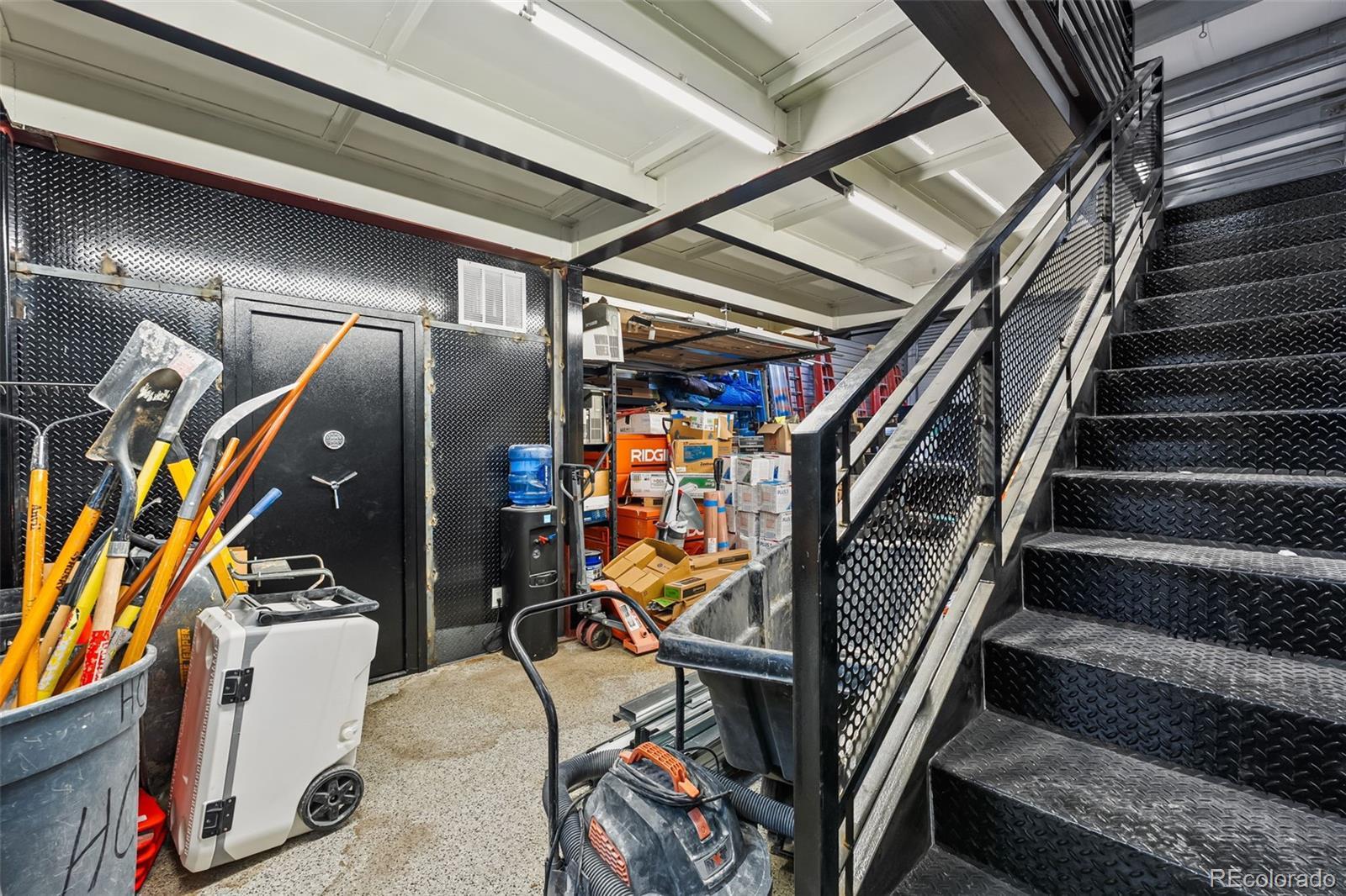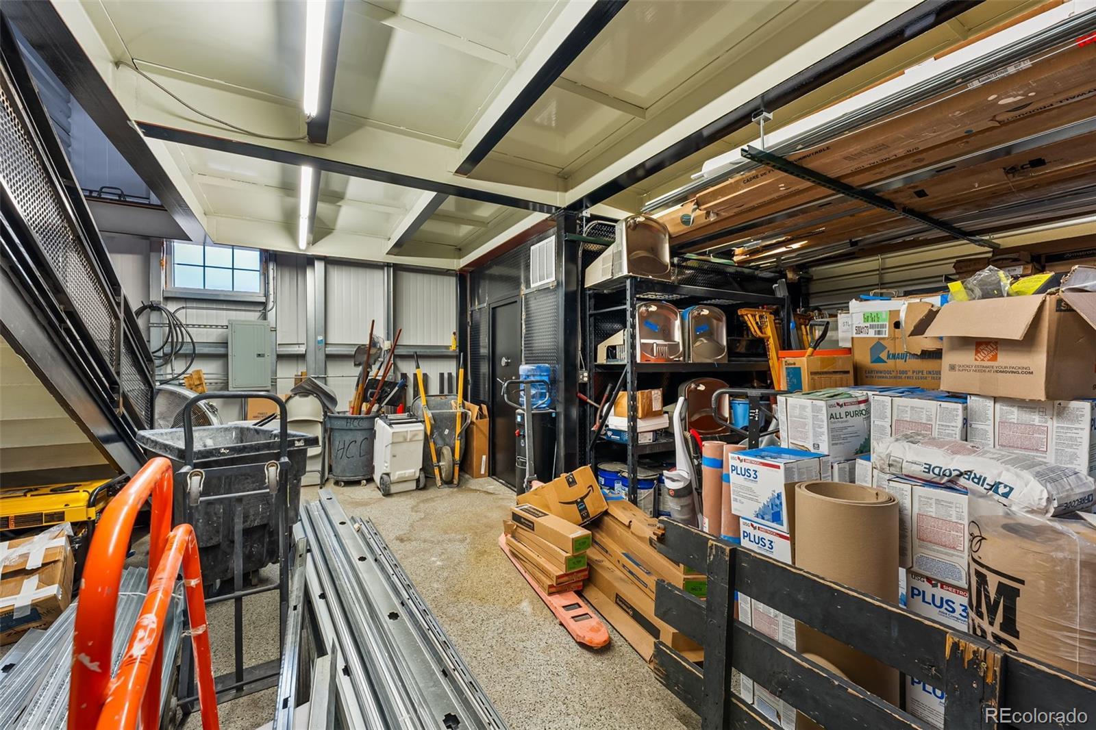 Fantastic flex condo with mezzanine and built-in metal walled walk in safe. 1,700 square feet including the mezzanine. Great man cave, industrial work space, or bunker. The walled in safe was designed as a gun safe and offers a secure space to store your prized possessions. There is a drywalled in office space on the mezzanine level and the mezzanine is built to withstand a large amount of weight. Plenty of room for a lift as seen in the previous pictures.