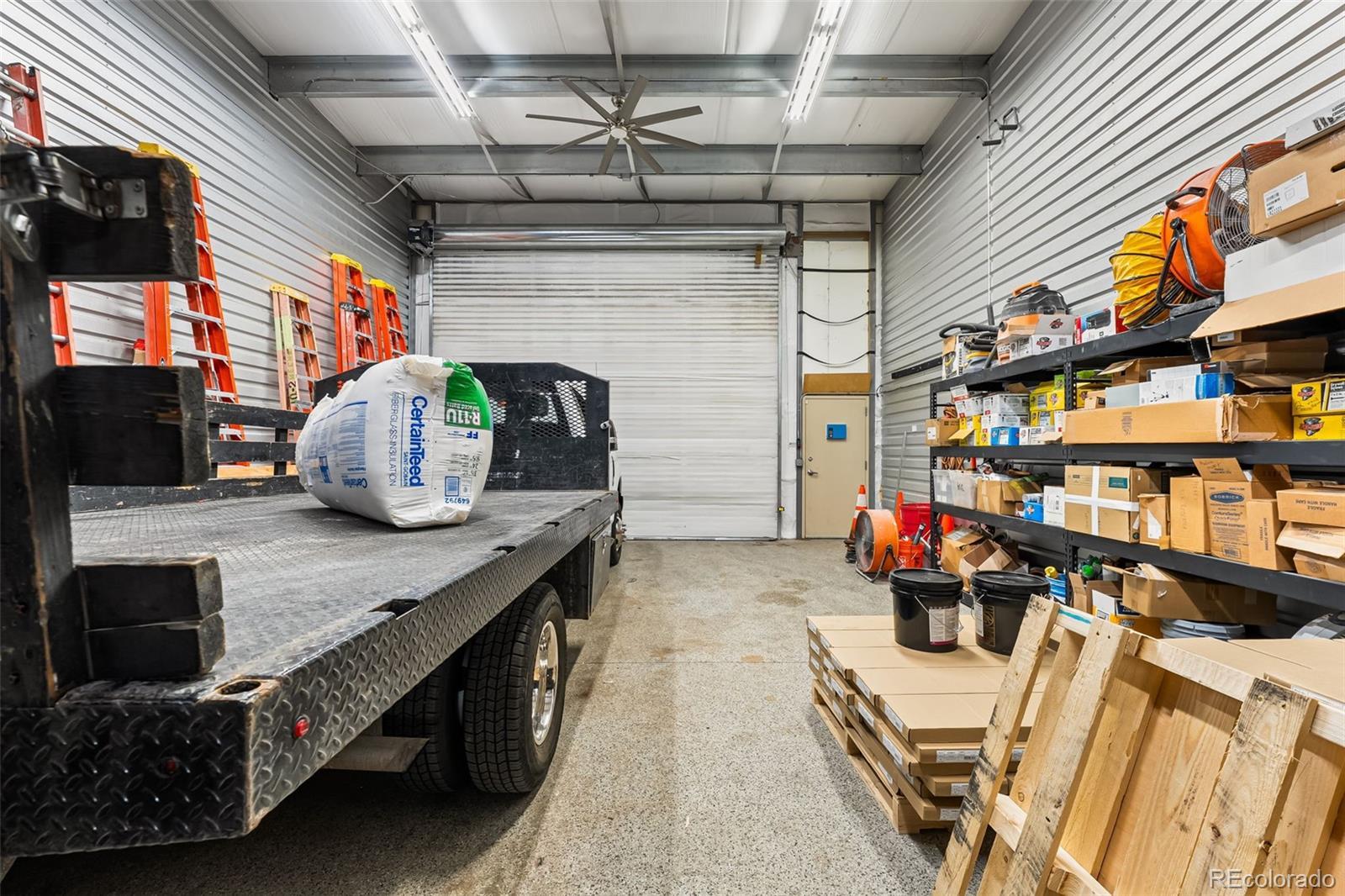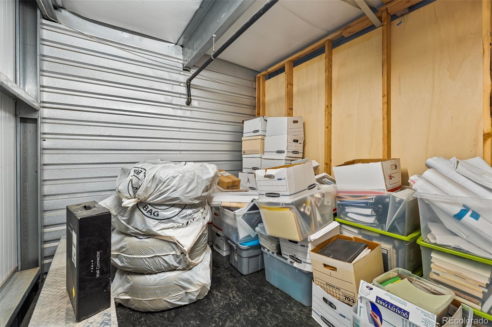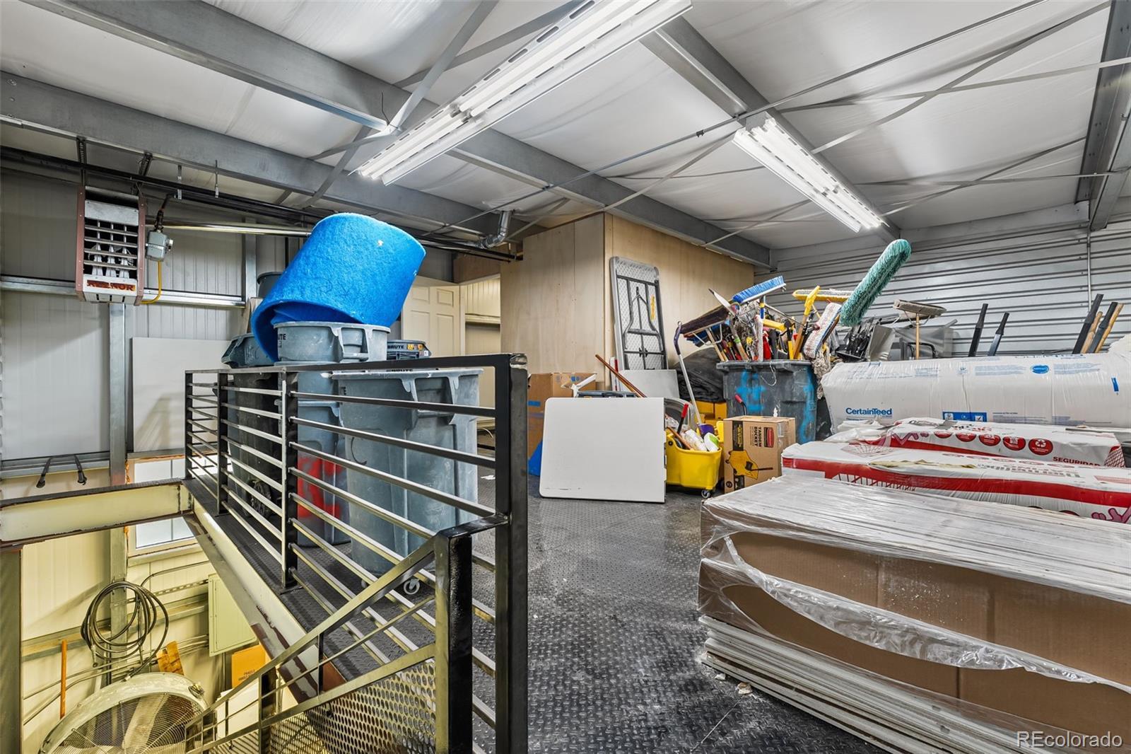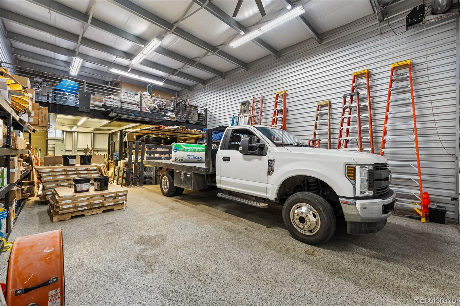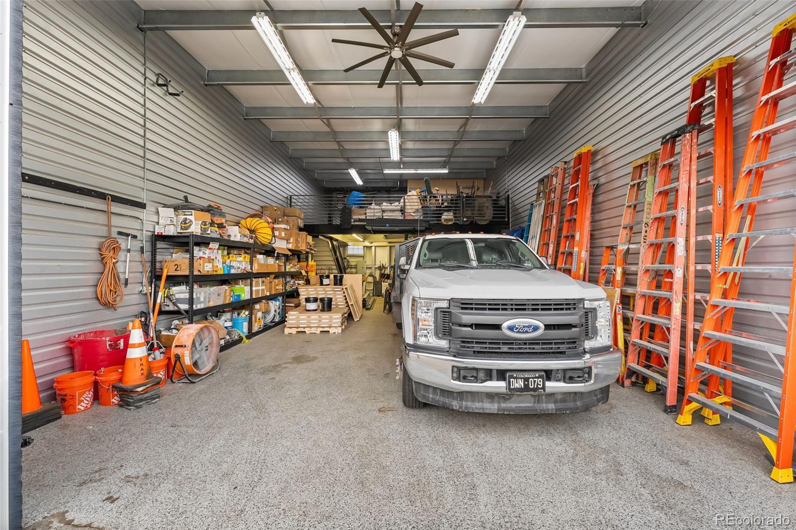 Fantastic flex condo with mezzanine and built-in metal walled walk in safe. 1,700 square feet including the mezzanine. Great man cave, industrial work space, or bunker. The walled in safe was designed as a gun safe and offers a secure space to store your prized possessions. There is a drywalled in office space on the mezzanine level and the mezzanine is built to withstand a large amount of weight. Plenty of room for a lift as seen in the previous pictures.