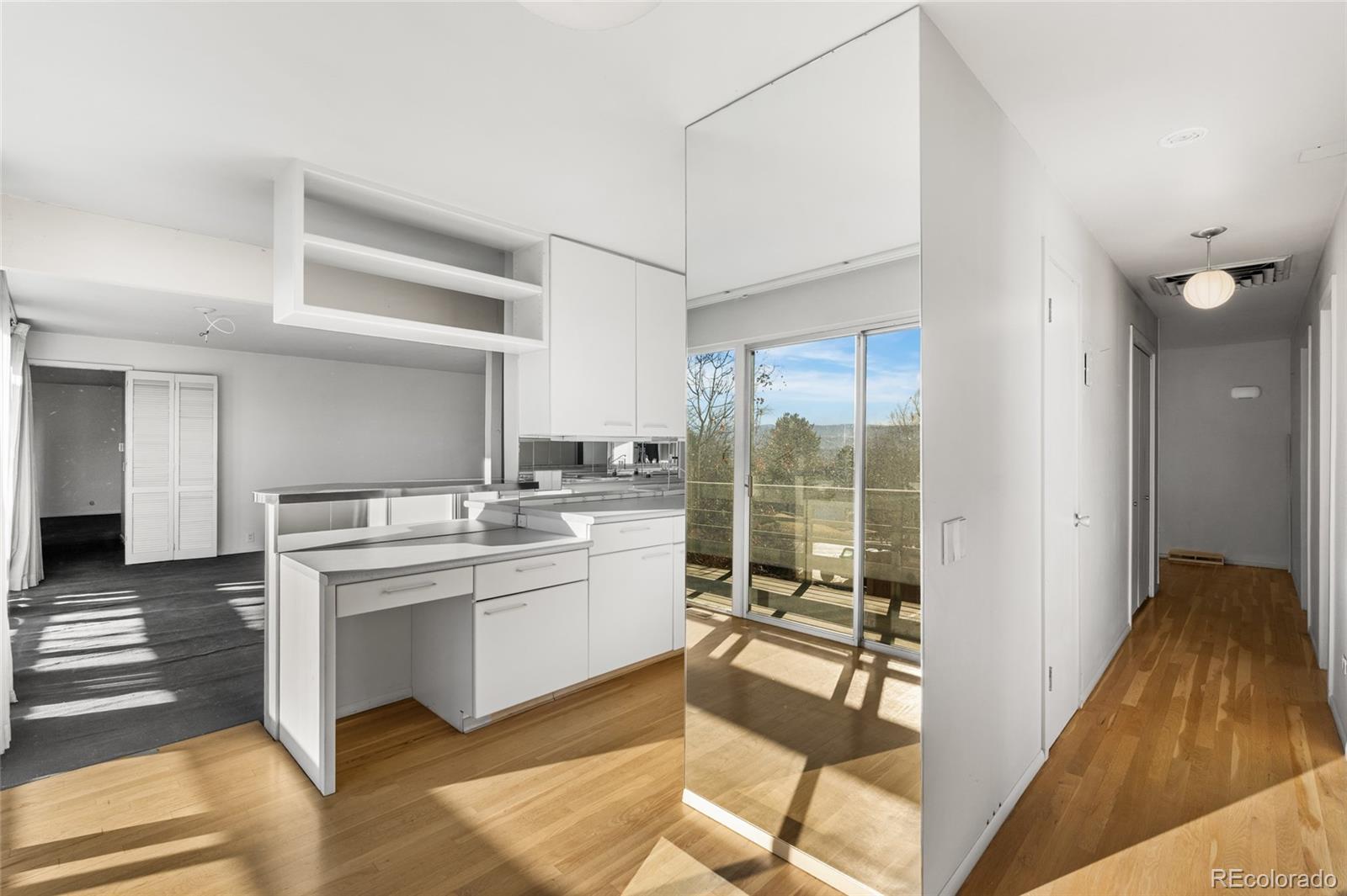 Mid-Century Modern magic awaits! Built in 1962, this classic mid-mod gem is a dream flip with serious potential. Clean lines, vintage character, and a layout that begs to be reimagined set the stage for something special. The expansive living room is flooded with natural light thanks to a stunning wall of near floor-to-ceiling windows/sliding doors, perfectly framing the private, tree-filled backyard, and most importantly, show-stopping panoramic mountain views. Sliding glass doors lead to a covered balcony, made for effortless indoor/outdoor living. With four generously sized bedrooms and four baths, there’s plenty of room to make this mid-mod your masterpiece. Downstairs, a second full living room opens through sliding glass doors to a covered patio and 2 car carport. Tucked into the coveted Scenic Heights neighborhood, just 5 minutes to Olde Town Arvada and a brisk 10 min walk to Majestic Park...this location is an absolute dream come true. Bring your vision and your imagination. This mid-mod beauty is ready to become your next masterpiece. Schedule your showing today! (Seller is selling the property on behalf of her mother’s estate and has no knowledge of the home’s condition or systems. The Seller has not occupied the property for over 30+ years. Property is being sold STRICTLY AS-IS. Seller and listing agent are aware that the refrigerator is non-functional; the condition of all other kitchen appliances and home systems is unknown. No representations or warranties of any kind are made, expressed or implied. Buyers must rely solely on their own inspections and due diligence.)