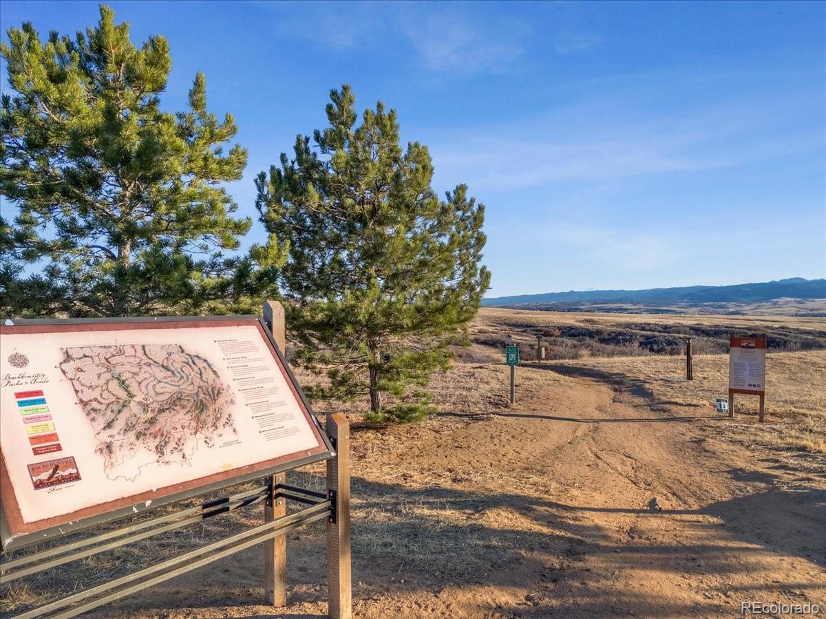 MOVE IN READY! NO MAINTENANCE ranch-style home in the gated enclave of Backcountry Highlands Ranch. OVER 3,000 FINISHED SQ FT! Perfect blend of comfort and convenience OVER 8,000 ACRES OF BACKCOUNTRY TRAILS IN YOUR BACKYARD! 4 bedrooms, 4 baths, and attached 2-car garage, this home provides a spacious and inviting setting for your next adventure. LUXURY GOURMET KITCHEN! 10 ft ceilings and 8 ft doors! The main level is thoughtfully designed for single-level living featuring two bedrooms, including a spacious primary suite with a large 3/4 spa bath and a walk-in closet. The gourmet kitchen is a chef's dream, complete with quartz countertops, stainless steel appliances, and a walk-in pantry. The living and dining areas flow seamlessly onto a large COVERED COURTYARD deck, the perfect spot for your morning coffee or for entertaining friends. The FINISHED BASEMENT is an entertainer's paradise, boasting a full wet bar and an expansive entertainment area with high ceilings. An additional 2 bedrooms and 2 bathrooms, along with a quiet den area, and large storage room. Forget about weekend yard worK! The HOA handles the landscaping, giving you the ultimate lock-and-leave freedom. Just a 10 minute walk away from the COMMUNITY CLUBHOUSE "Sundial House", including restaurant and community events, outdoor pool, state of the art fitness center, complete with gorgeous mountain views. * side yard can be fenced in with association approval * custom window well grates * whole home updated to stainless steel plumbing shut off valves * whole house humidifier * whole house top down bottom up blinds * gas valve in the courtyard for a grill * soft close cabinets and drawers * Access to 4 premier Highlands Ranch recreation centers! Trails, parks, and top-rated schools, with quick access to C-470, the DTC, Red Rocks, and Downtown Denver. Backcountry trail system, Bluffs Regional Park, High line Canal Trail, and more! Minutes to shopping, dining and entertainment at Park Meadows Mall!