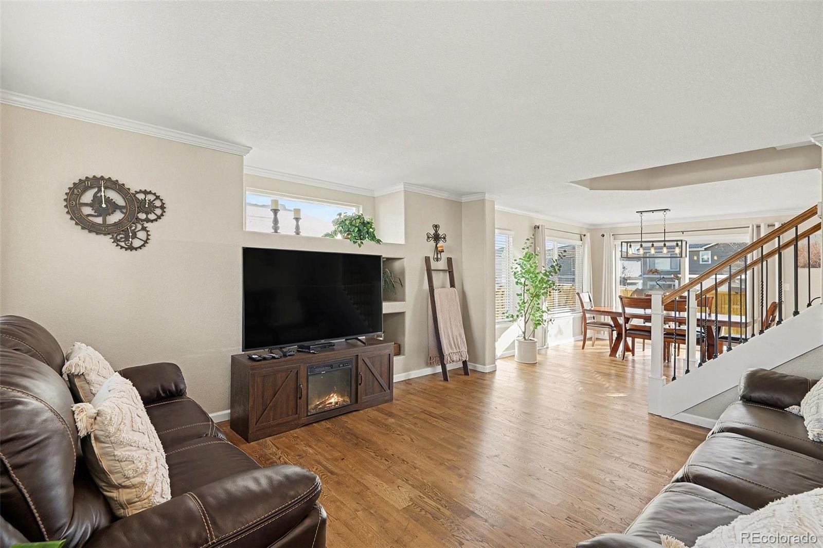 Eastridge Home w/ Stained Hardwood Floors, Granite Slab Counters, White Cabinetry w/ Brush Nickel Pulls, Modern Lighting, Pantry, New Paint, Gas Range, 4 Bedrooms Upstairs, Primary Bathroom Remodel w/ Seamless Glass Door, Tire Shower & Granite Counters. Unfinished Basement Provides room to grow. Amazing Proximity to Park Meadows Shopping Resort, Valor Christian High School & Highlands Ranch Eateries. Highlands Ranch Community Provides Access to 4 Recreation Centers, 26 Parks & Over 70 Miles of Interconnected Trail System w/ Open Space.