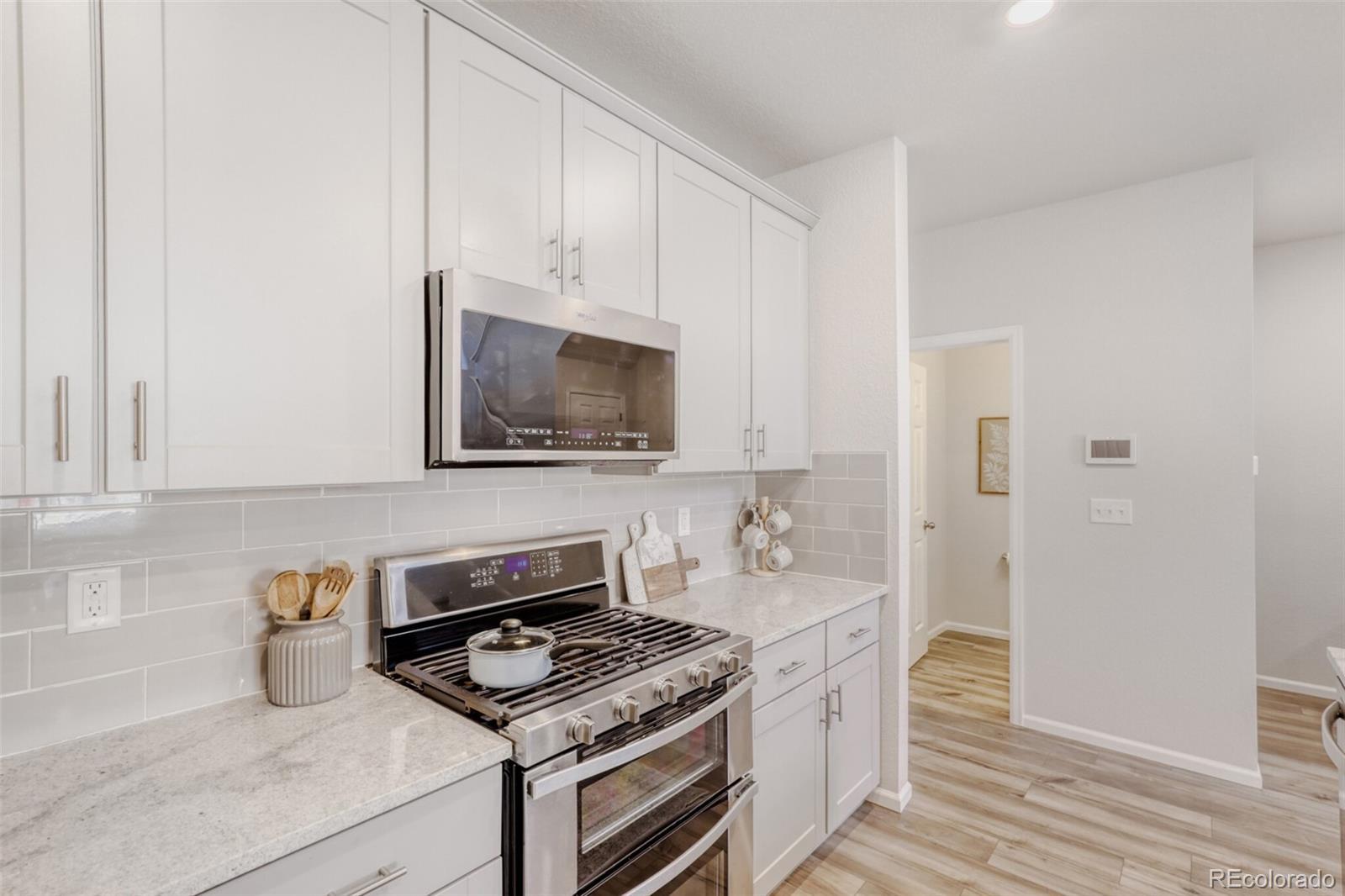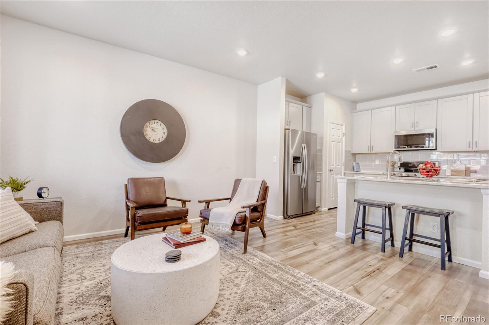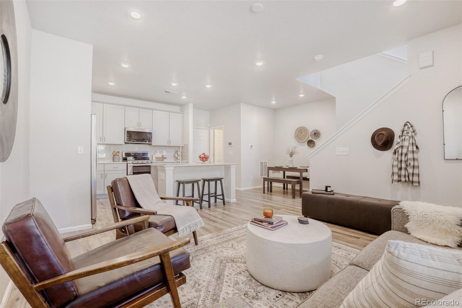 **Up to 2% below market rates with preferred lender!** Better value than new construction, this like-new Painted Prairie townhouse combines low maintenance, great location and thoughtful layout in the perfect lock-and-leave package. Gorgeous kitchen features a large pantry, beautiful granite island, glass tile backsplash and true convection dual oven with 5-burner gas range. Attractive luxury vinyl plank flooring throughout main level. Spacious master retreat with large walk-in closet and luxurious bathroom. Convenient upper-level laundry room. Additional upgrades include security and smart-home integration package and 220v EV charger. Amazing Painted Prairie neighborhood with award-winning parks, community garden, outdoor art and even a neighborhood gathering space right off your front patio! Easy commute by car or train to downtown, and DIA, Gaylord Rockies and dozens of major employers are just a few minutes away, making it the perfect location for jet-setters and investors alike.