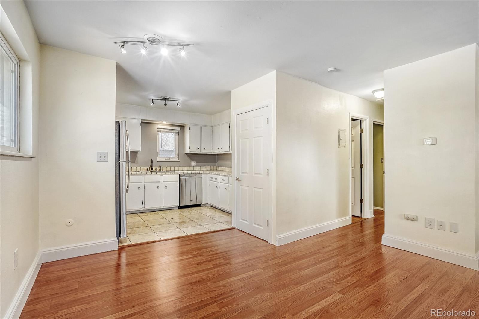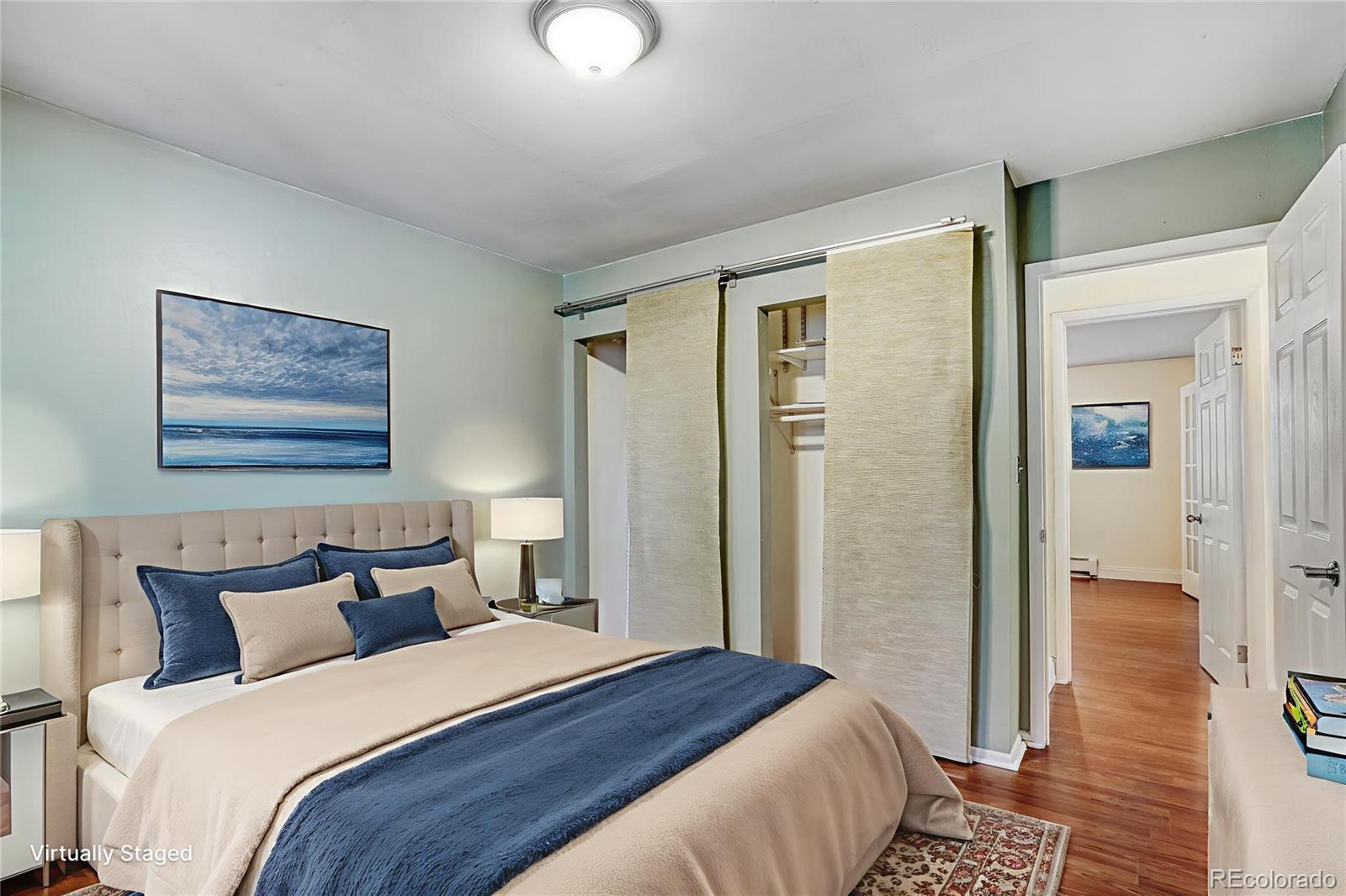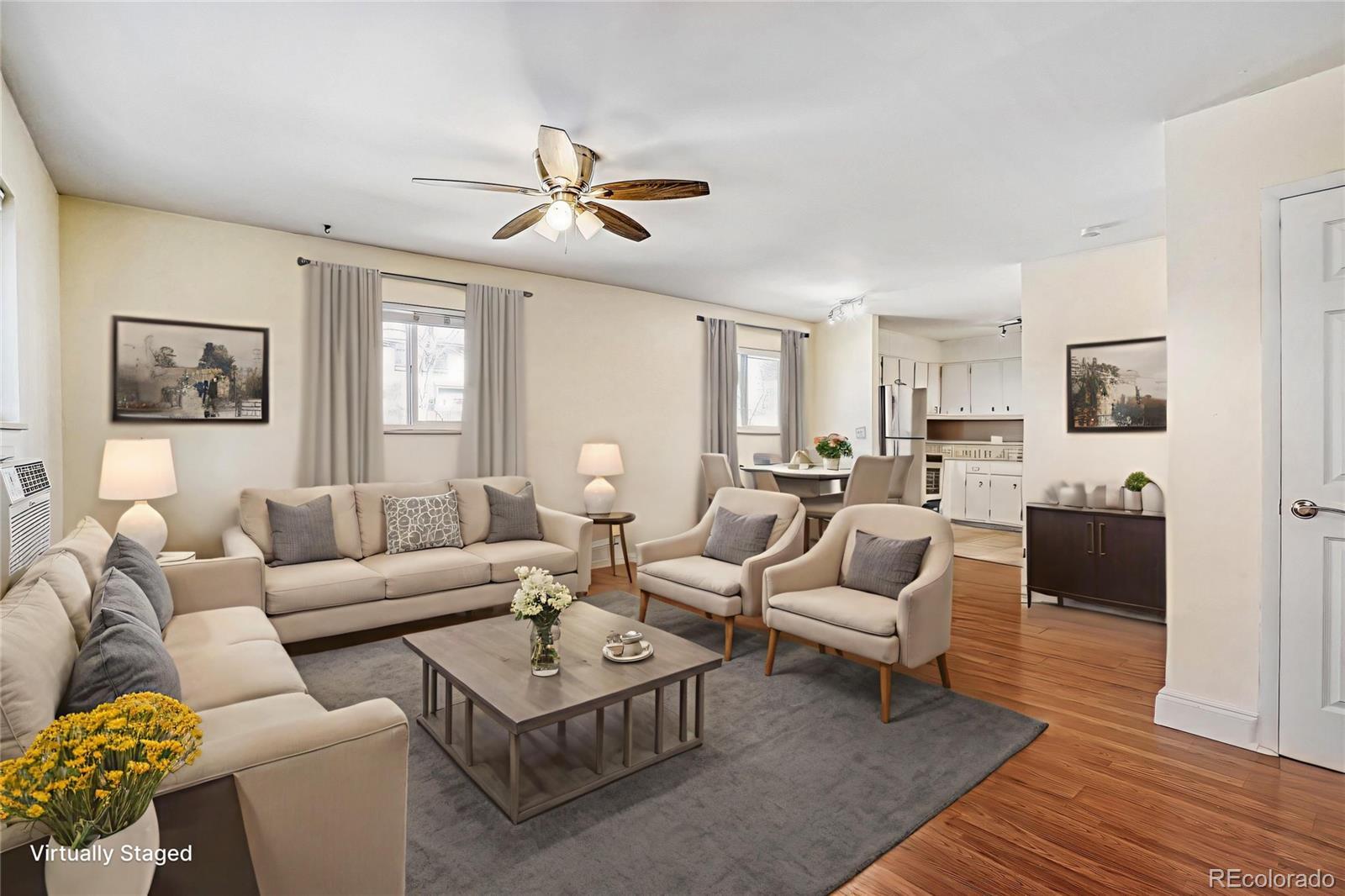 This end-unit home offers the perfect blend of comfort, convenience, and an unbeatable west Denver lifestyle. Inside, you’ll find a bright and inviting living space filled with natural light and complemented by warm hardwood-style flooring. The open living and dining area provides a comfortable layout for everyday living or entertaining guests. Both bedrooms are generously sized with great closet space and flexibility to suit your needs — whether you’re creating a guest room, home office, or personal retreat. The full bathroom is clean and well-appointed with modern fixtures, offering a timeless and practical design. One of the biggest highlights of this condo is its location. Enjoy quick access to Sloan’s Lake Park, where miles of walking and biking trails, paddleboarding, picnics, and breathtaking mountain sunsets await. Just minutes away, Edgewater Public Market, local restaurants, breweries, and boutiques provide endless dining and entertainment options. Don't forget about the Edgewater Beer Garden, where you can enjoy a beer outside. With easy access to major routes, downtown Denver and the mountains are always within reach. Additional features include assigned parking, dedicated storage, and a well-maintained community with mature landscaping and a strong HOA. Whether you’re a first-time buyer, investor, or someone seeking a low-maintenance home near Denver’s best outdoor and urban amenities, this condo is a fantastic opportunity. Storage for Bikds and. a personal locked unit in south building.