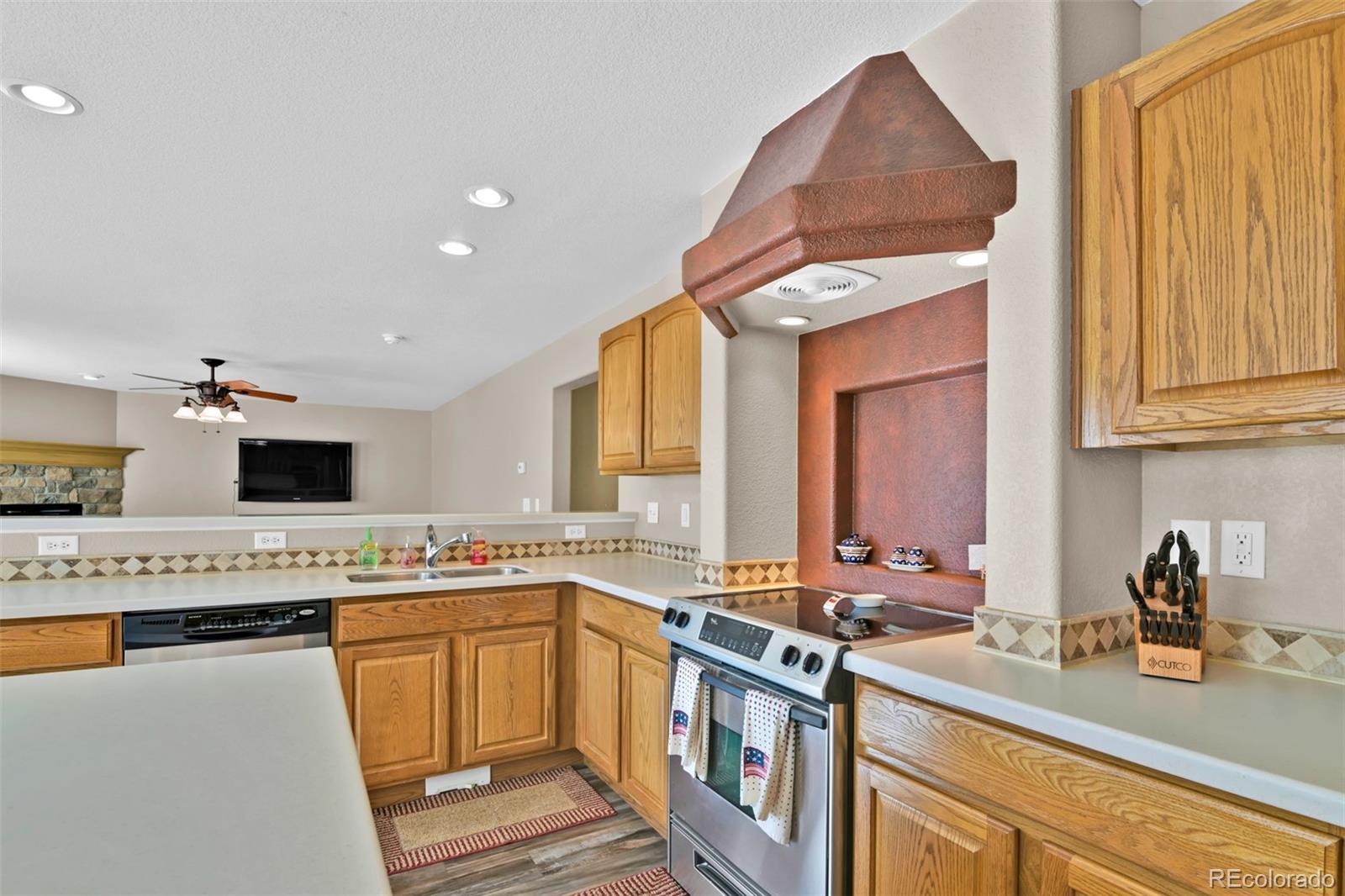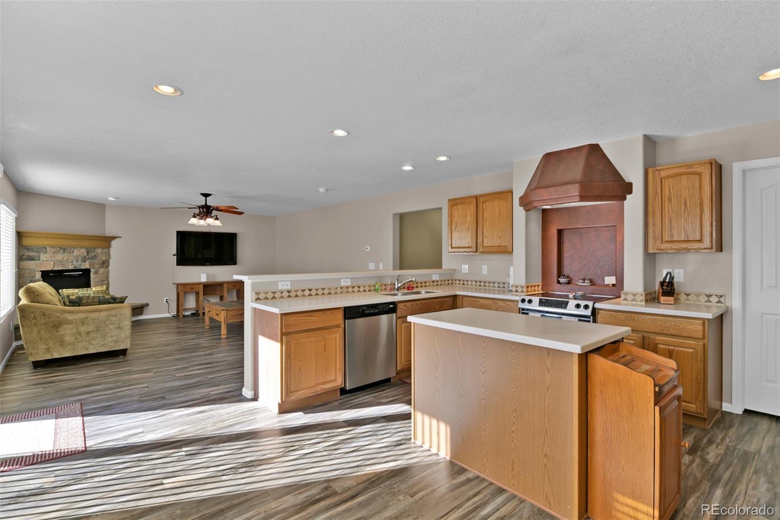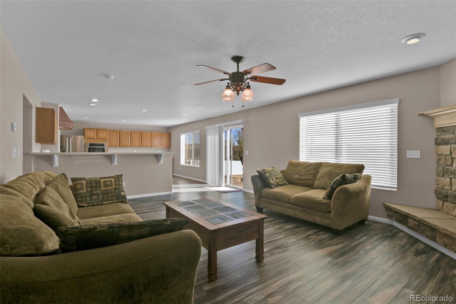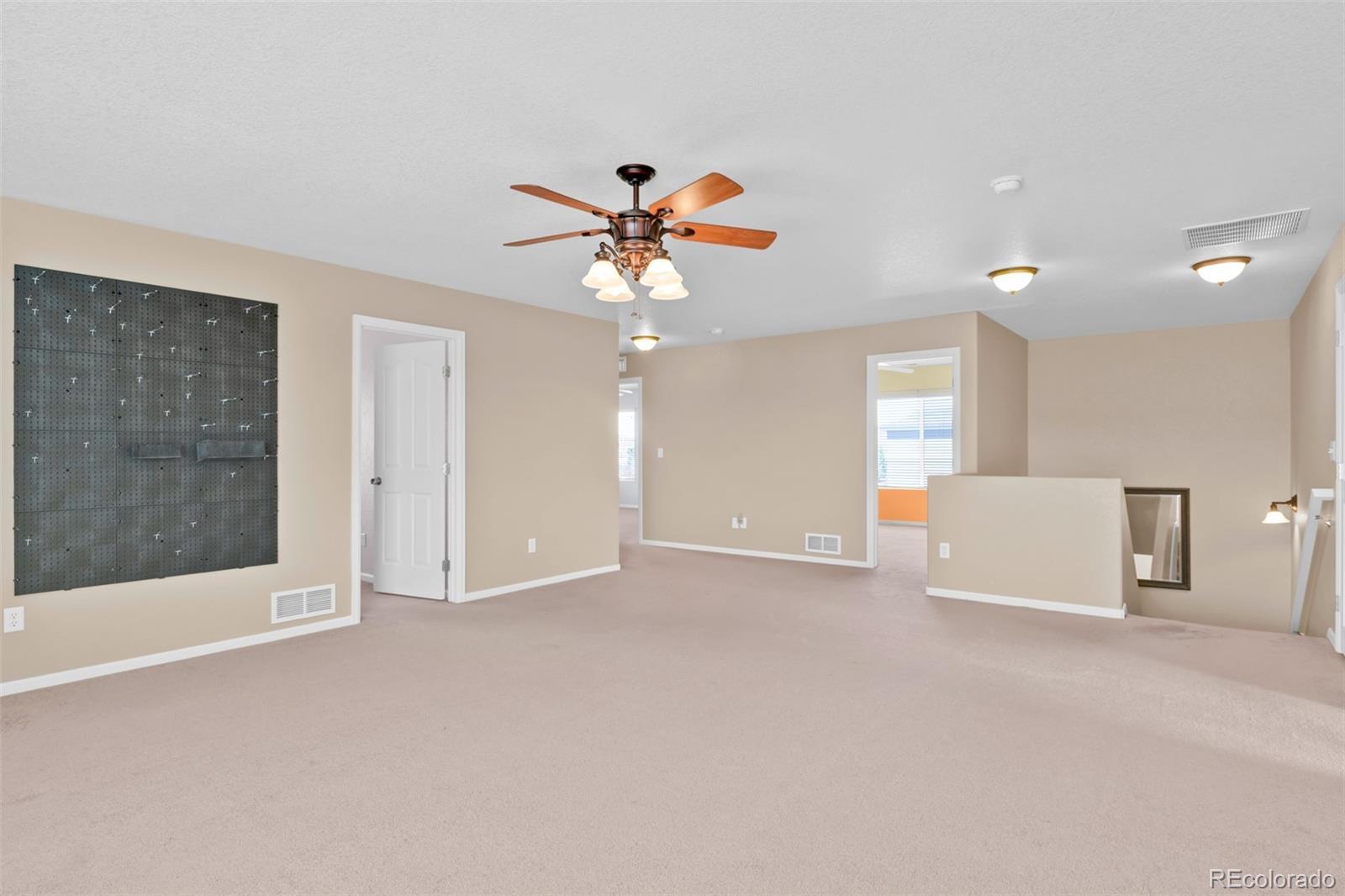 Welcome to this stunning 5,300+ sq ft home, where elegance and functionality meet. The exterior showcases stucco siding, a tile roof, vinyl fencing, and a three-car attached garage. Step into the backyard oasis featuring a large composite deck with a built-in fireplace, outdoor kitchen with cooler, covered hot tub, wired patio speakers, and a backyard shed, the perfect setting for entertaining or relaxing under the Colorado skies. Inside, the gourmet kitchen is a chef’s dream, boasting corian countertops, dual ovens (including convection), a large pantry, and a center island designed for both prep and gathering. The main level includes a spacious family room, a living room with a cozy gas fireplace, a formal dining room, and a private office ideal for remote work or study. Upstairs, you’ll find four generous bedrooms and a versatile loft. The primary suite offers a luxurious escape, featuring a five-piece bath with a jetted tub, stand-alone shower, his-and-her closets, and dual vanities. A laundry room on this level adds convenience to daily living. The finished basement extends your entertaining space with a bedroom, den, living room, and a dry bar. Plus a 17.1 surround-sound system and tanning bed, perfect for movie nights or guests. Additional highlights include a sump pump, water softener, home humidifier, central vacuum, and dual furnaces, providing comfort and efficiency year round. This exceptional home truly has it all, space, sophistication, and lifestyle. Offering the ideal blend of indoor luxury and outdoor enjoyment.