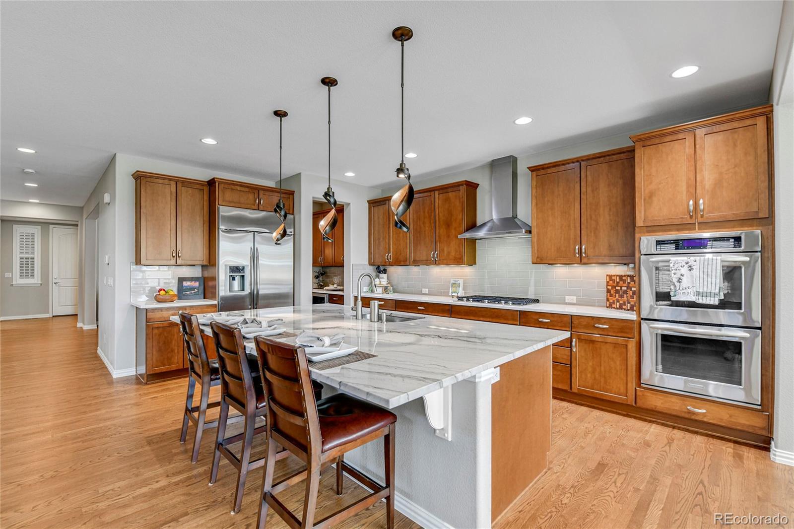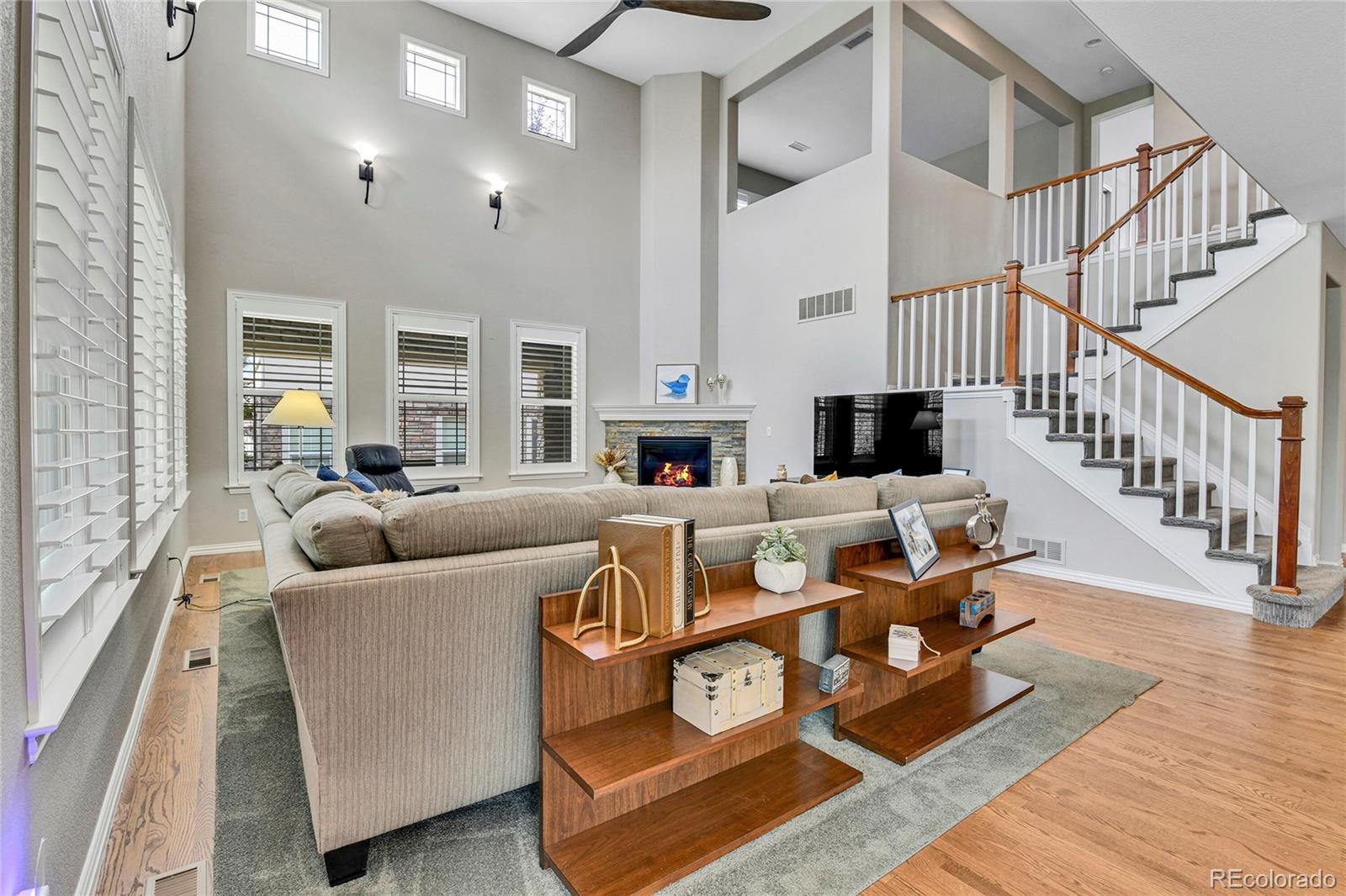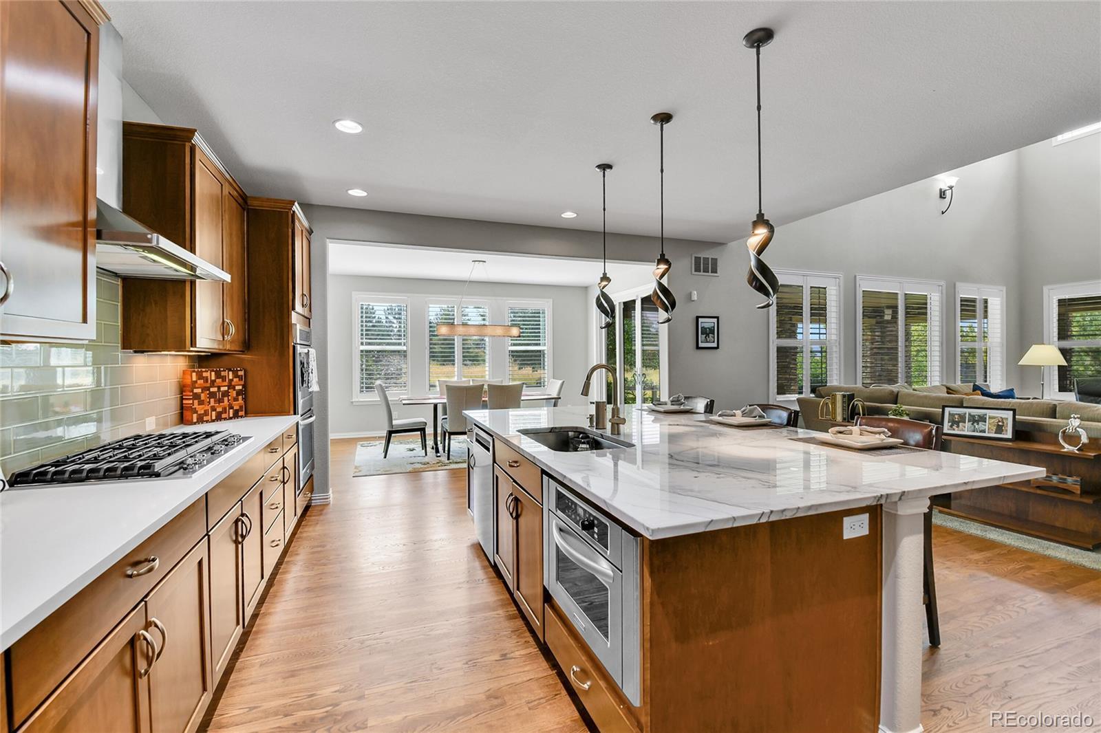 Modern Luxury in the Heart of BackCountry–Highlands Ranch,CO.Nestled in the prestigious gated community of BackCountry, this beautifully remodeled Shea home blends contemporary luxury w/the warmth of home. Located on a cul-de-sac, it offers 4 spacious bedrooms, 4 en-suite bath & powder room on main.Enjoy mountain views & direct access to scenic trails & open space. Step into a light-filled,open floor plan w/ vaulted ceilings, custom lighting, & hardwood floors on the main level. The gourmet kitchen features slab marble countertops, matching backsplash, an oversized island, upgraded appliances, a bright eat-in area—perfect for casual meals. Formal/informal dining spaces include a dedicated dining room just off a convenient butler’s pantry offering added storage & prep space.Cozy up to a remodeled stone fireplace or step out to the wraparound covered patio w/a built-in gas line—ideal for year-round entertaining. The private, fenced backyard backs to protected open space, offering serene views & enhanced privacy. Main floor highlights include a den or guest suite with en-suite bath, an additional powder room & spacious laundry/mudroom with washer/dryer (included) & ample cabinetry. Upstairs, each bedroom includes an en-suite bath & plush high-density carpet. The primary suite is a retreat, featuring double walk-in closets, an updated fireplace, & a luxurious 5-piece bath w/dual vanities, soaking tub, expansive walk-in shower & tile flooring. Addtl features include a tankless water heater, radon mitigation system, & an unfinished basement w/tall ceilings—ready for customization. BackCountry offers resort-style amenities, including a private pool & the exclusive Sundial House with a restaurant, workout area, & gathering spaces. Residents also enjoy access to Highlands Ranch’s four recreation centers and top-rated Douglas County schools. This property showcases the best of Colorado living in one of Highlands Ranch’s most sought-after communities.