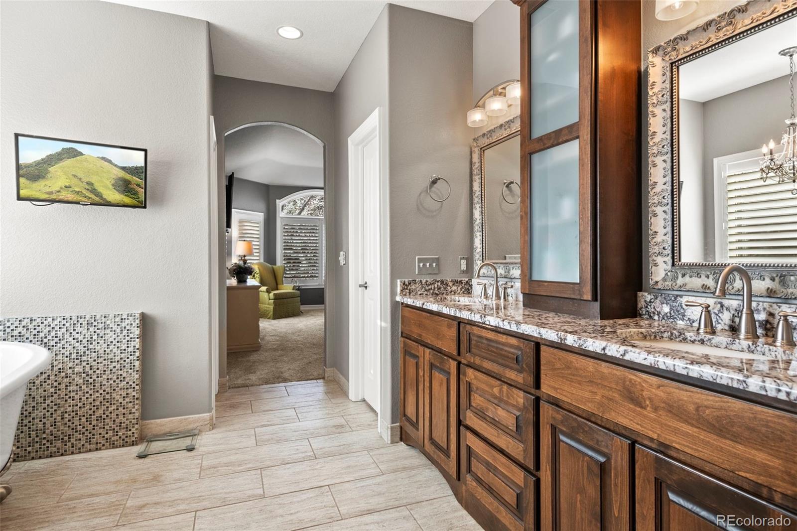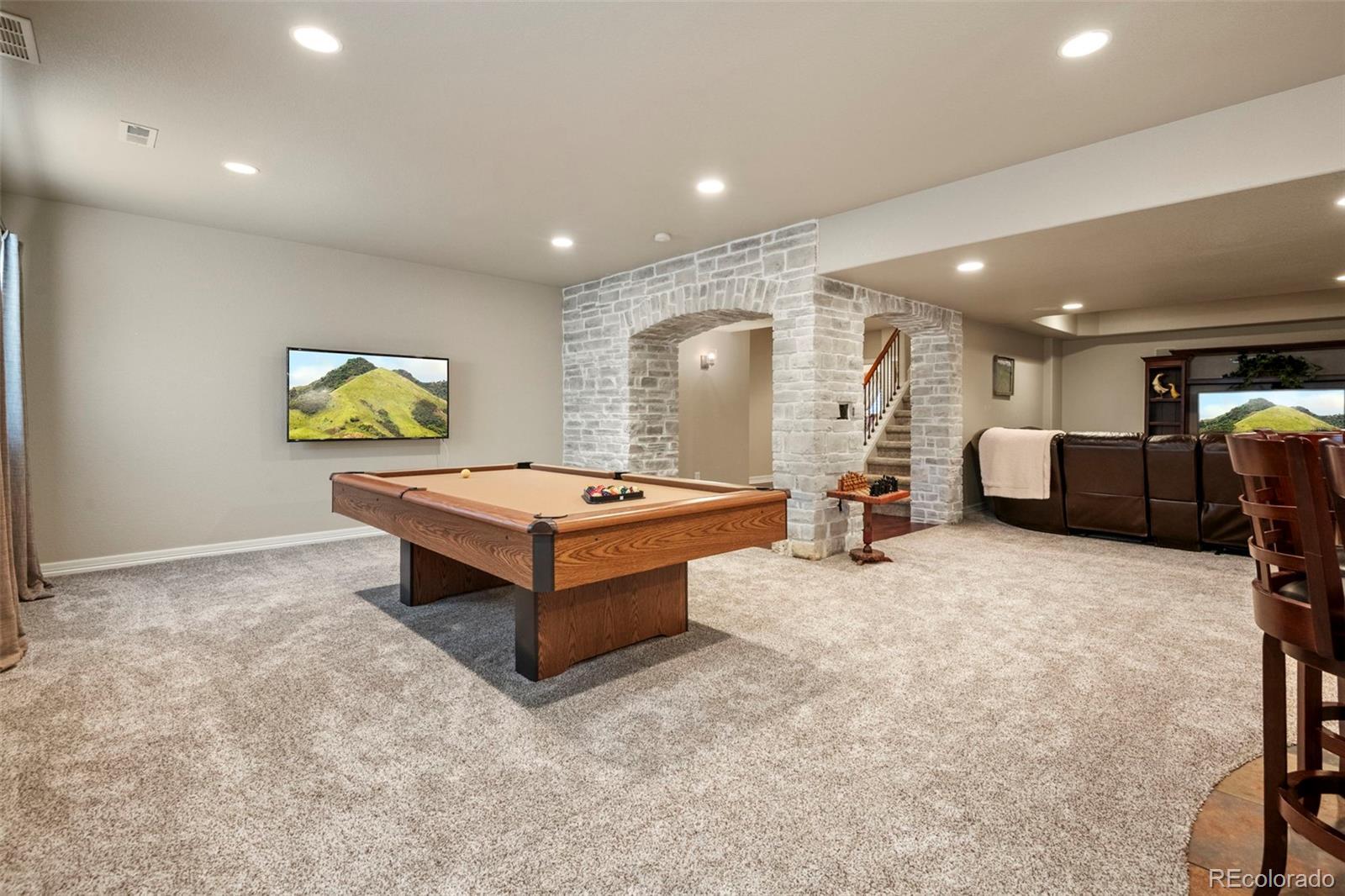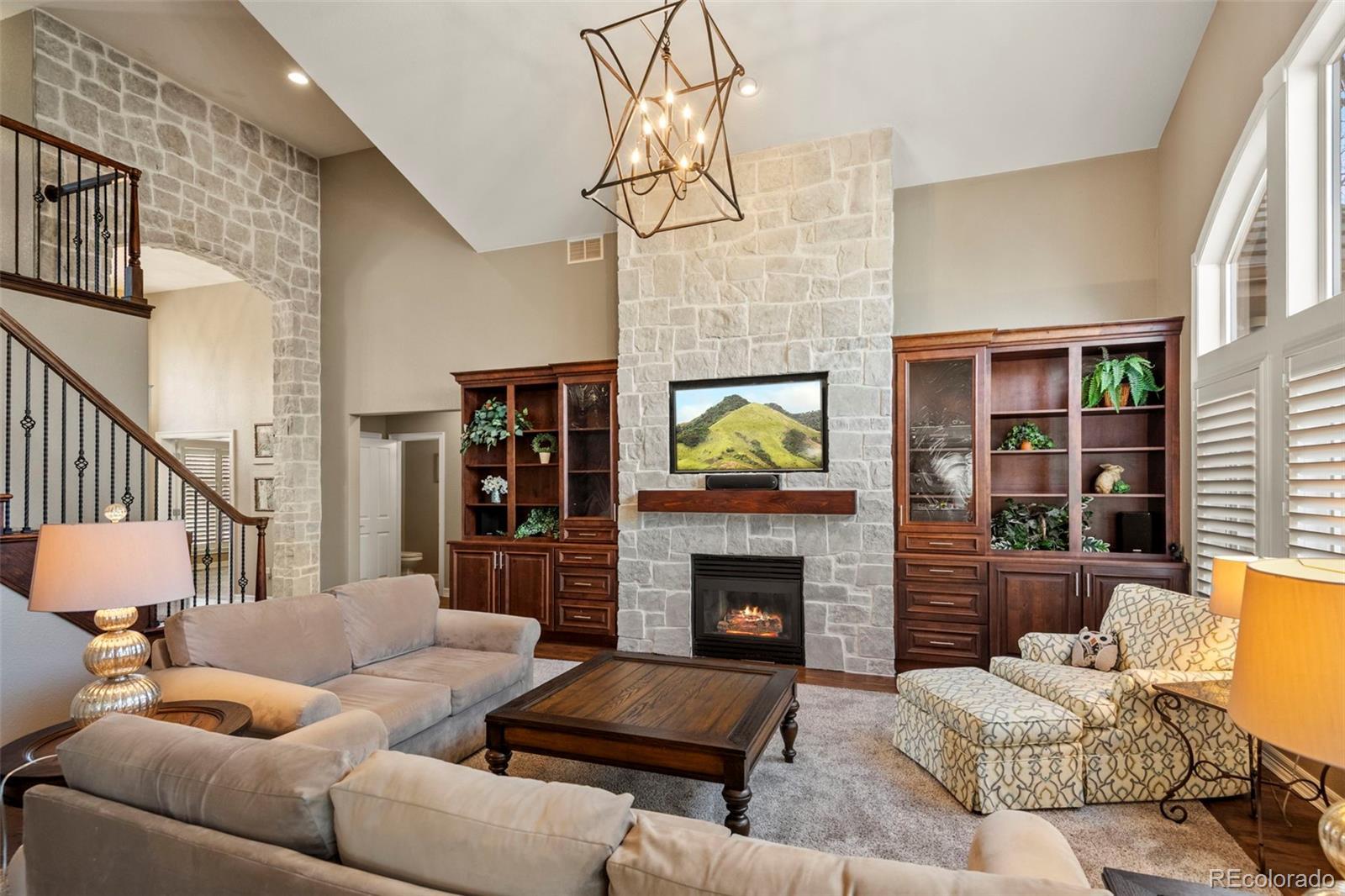 Discover luxury living in this stunning two-story home with main floor primary bedroom, nestled in the desirable Ranch Reserve neighborhood. This spacious residence offers 5 bedrooms and 4 baths on a quiet cul-de-sac. Upon arrival, you are greeted by great curb appeal with new exterior paint & fence stain. A vaulted entry welcomes you into a beautifully designed layout with an abundance of natural light through the cased windows with shutters. The chef’s kitchen boasts high-end appliances, a large island, and a sunlit breakfast nook that opens to the great room with stone accents, a gas fireplace, and custom built-ins. You'll also find a dedicated home office and an elegant formal dining room. The main floor primary suite is a true oasis with a private ensuite 5-piece bathroom and two walk-in closets. Upstairs offers a loft with private balcony, two bedrooms, and a full bath—perfect for kids or guests. The finished basement expands the living space with two additional bedrooms, a full bath, a wet bar, and multiple entertaining areas for movie nights or gatherings. The 3-car garage includes built-in storage and a newer level 2 EV charger. Enjoy outdoor living in the fenced backyard with a built-in gas grill, stamped concrete patio, hot tub, and easy access to walking trails and open green space. Additional features included beautifully updated stone-washing, updated light fixtures, Simplisafe security system, and walk-in closets with custom shelving. Opportunity to join The Ranch Country Club with dining, swimming, tennis, and golf. Located in the Adams 12 Five Star School District and close to parks, shopping, and commuter routes—this home offers the perfect blend of comfort, style, and convenience.