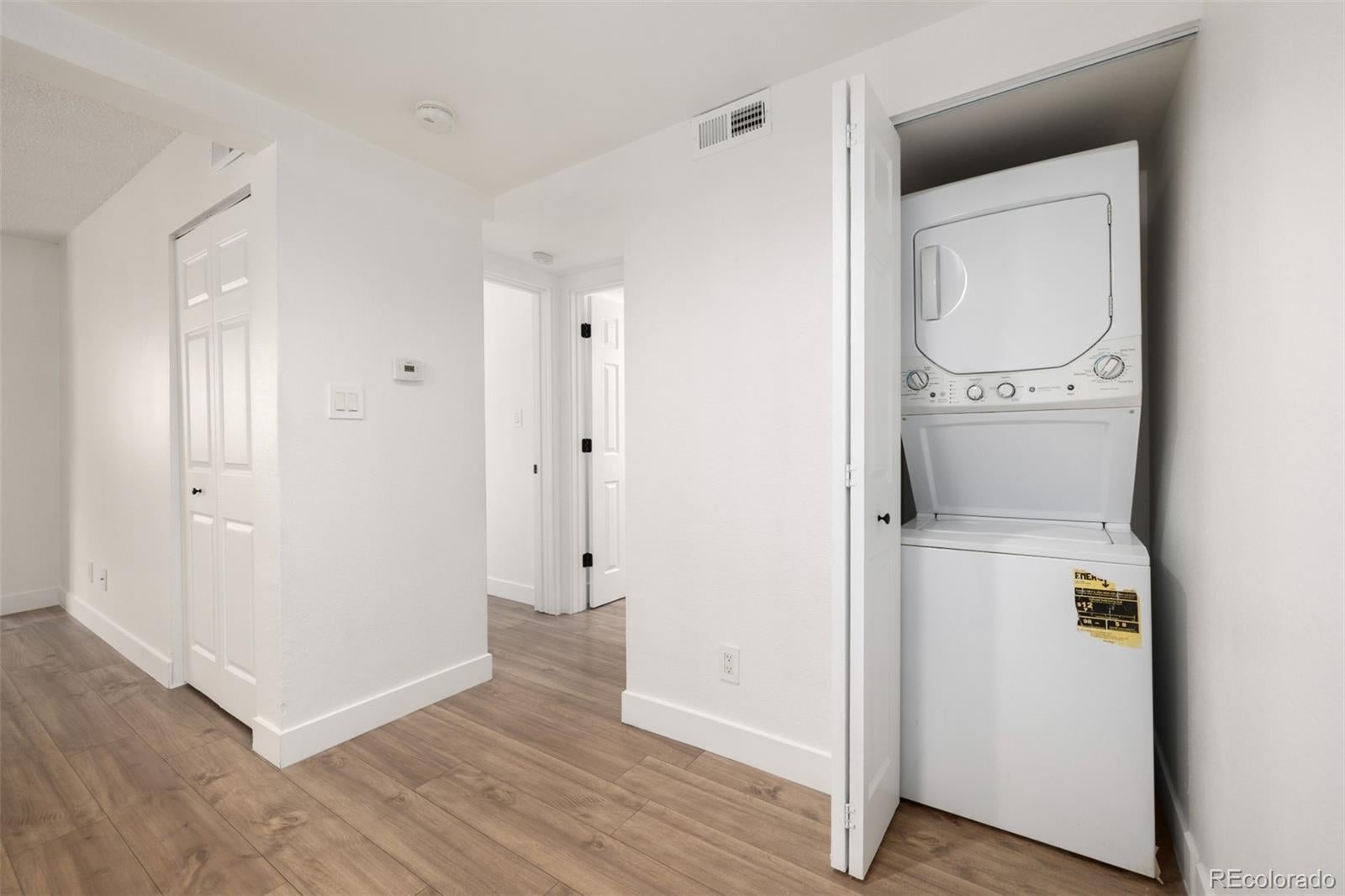 A sense of calm and modern simplicity defines this fully renovated condo from the moment the door opens. Warm modern plank flooring guides the eye toward the living area where a striking stone fireplace creates an unmistakable focal point. Glass doors to the private balcony draw natural light across the space, softening the lines of the room and adding a subtle indoor outdoor connection that encourages lingering. An inviting dining nook sits beneath its own window, creating a cheerful corner for morning coffee or relaxed meals with effortless ease. Just beyond, a thoughtfully designed laundry closet keeps daily routines simple and efficient while maintaining a clutter free environment. The kitchen reveals itself with a quiet confidence. Crisp white shaker cabinetry offers abundant storage and a timeless sense of order. Elegant white quartz counters add an elevated touch that feels both modern and refined, beautifully balanced by the depth of the dark hardware and fixtures. A deep undermount sink and stainless appliances create a highly functional workspace that inspires creativity and ease. The serene flow continues into the bedroom where generous dimensions and extensive closet space allow room for personalized retreat. The adjacent bath feels like a private spa, thoughtfully finished with modern materials and refined design choices that feel both elevated and grounded. Step onto the balcony and take in an outdoor view that overlooks the community courtyard and green space. It is a peaceful extension of the home and a welcome breath of fresh air. Completely renovated interiors, a stone fireplace that brings authentic character, a chic modern kitchen, and private outdoor space come together to create something quietly special. This is a home that embraces simplicity, beauty, and ease in equal measure.