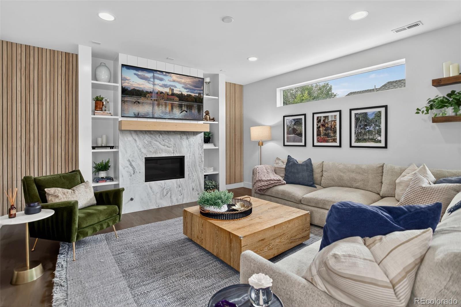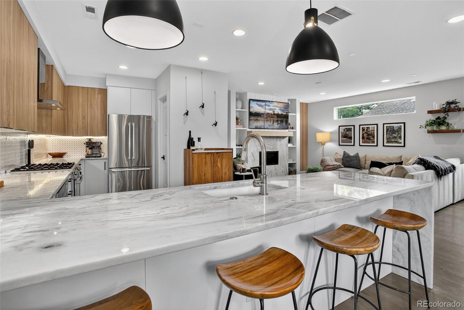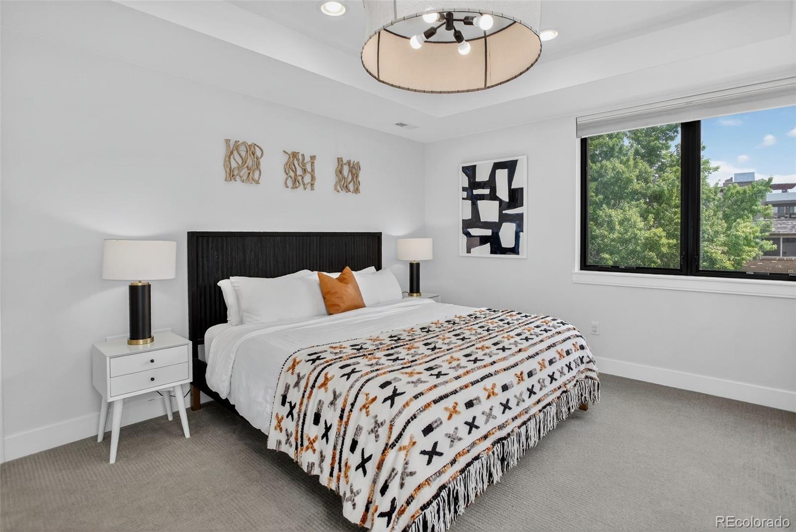 This stunning townhome is sophisticated urban living with giant mountain views and a very spacious floor plan! It is perfectly situated in the heart of West Washington Park. Designed for the modern Denver lifestyle, this luxurious 3 bedroom/4 bathroom residence with a rooftop deck offers an expansive, open-concept layout with designer finishes at every turn. The entrance has its own fully fenced front yard and patio-great for pets or to try your hand at gardening. The entry-level is a true flex space featuring a foyer, bedroom and a full bath perfect for a home office or guest suite. The light-filled main level is the heart of the home where a chef-inspired kitchen awaits with top-of-the-line appliances, a large waterfall island perfect for entertaining, and seamless flow into the living and dining areas. The striking marble fireplace framed with book shelves and wood slat walls serves as a beautiful focal point. A private balcony just off of the dining room offers a perfect spot for morning coffee, conversation and grilling. The third floor is a private sanctuary. The primary suite is a true retreat, boasting a massive en-suite bathroom, a spacious walk-in closet, and a versatile attached space perfect for an office, home gym, nursery, or a dedicated second closet. A laundry room, additional bedroom and full bath on this floor make it a family-friendly layout or a comfortable space for guests. The grand finale is the rooftop deck. This impressive space offers unobstructed views of the Denver skyline and the majestic Rocky Mountains—the ultimate setting for enjoying stunning sunsets and hosting gatherings. Walkable to an endless list of neighborhood hot spots, including Uncle, Olivia, Carmine's, Levan, Taki Sushi, The Spot, Rosebud Cafe, Rise and Shine, Fire on the Mountain, and more. Enjoy easy access to Washington Park and the vibrant shops, restaurants, and entertainment of the S Broadway Corridor. Just minutes from everything Denver has to offer.