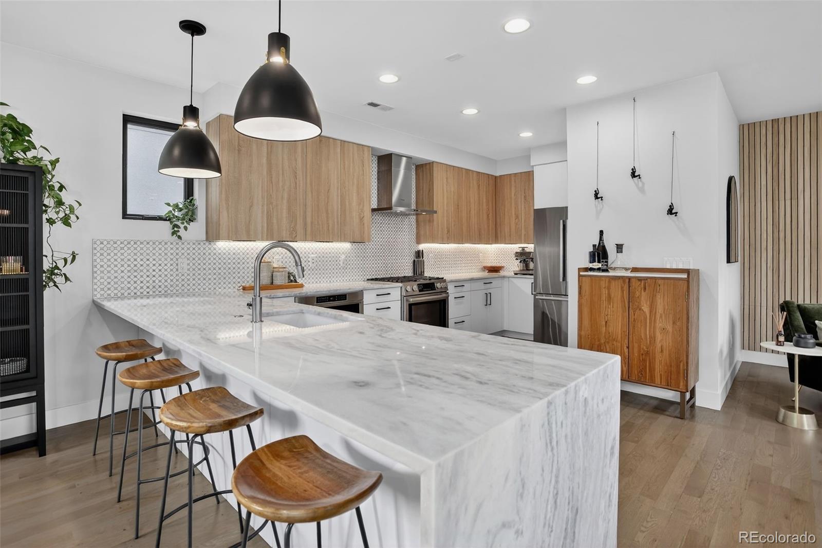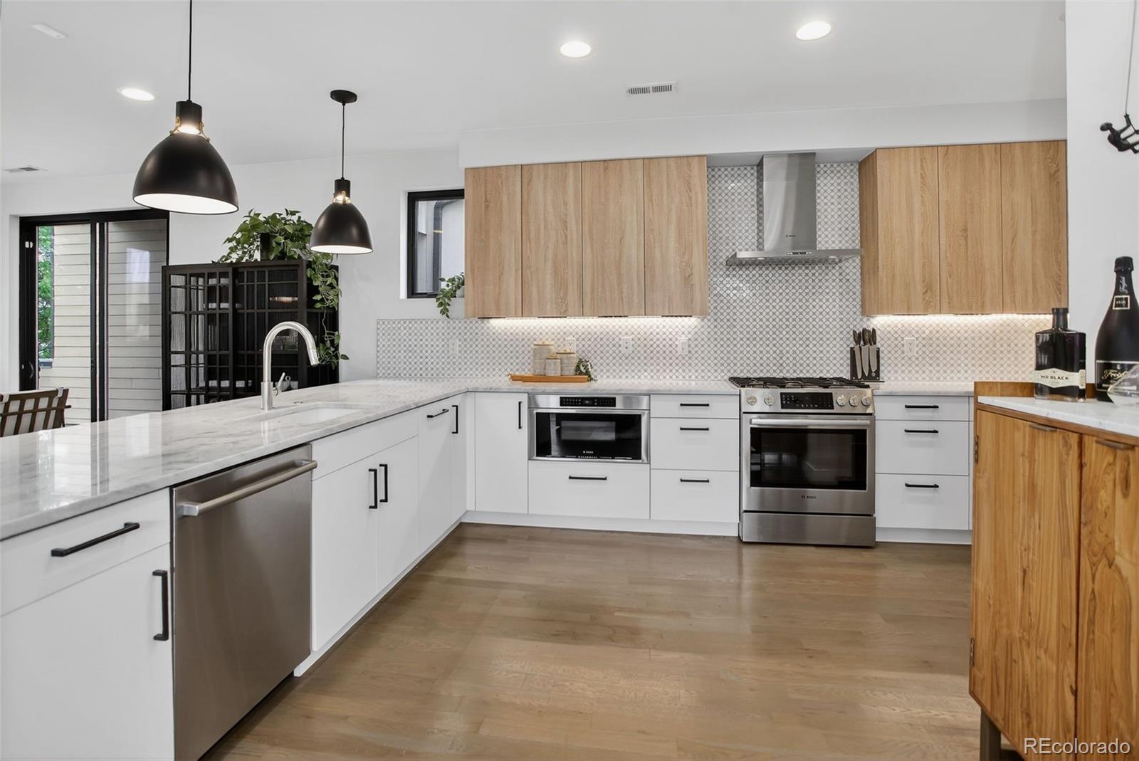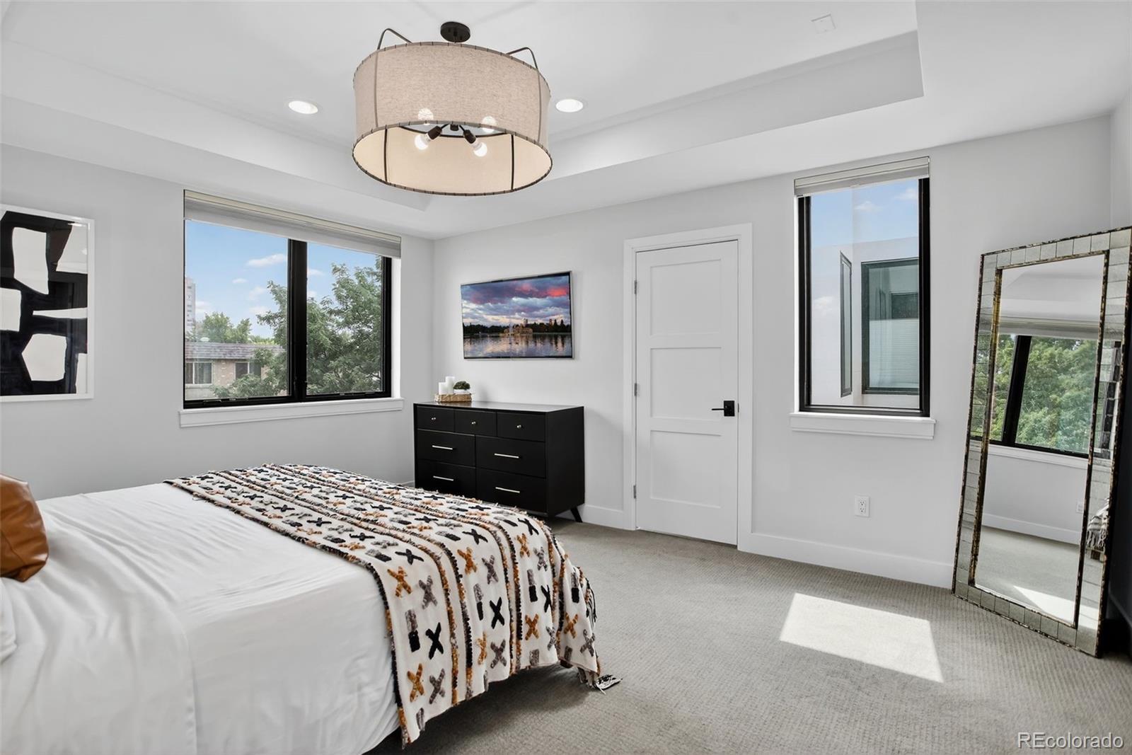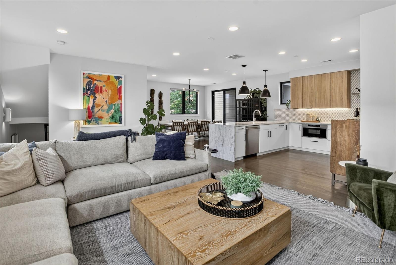 This stunning townhome is sophisticated urban living with giant mountain views and a very spacious floor plan! It is perfectly situated in the heart of West Washington Park. Designed for the modern Denver lifestyle, this luxurious 3 bedroom/4 bathroom residence with a rooftop deck offers an expansive, open-concept layout with designer finishes at every turn. The entrance has its own fully fenced front yard and patio-great for pets or to try your hand at gardening. The entry-level is a true flex space featuring a foyer, bedroom and a full bath perfect for a home office or guest suite. The light-filled main level is the heart of the home where a chef-inspired kitchen awaits with top-of-the-line appliances, a large waterfall island perfect for entertaining, and seamless flow into the living and dining areas. The striking marble fireplace framed with book shelves and wood slat walls serves as a beautiful focal point. A private balcony just off of the dining room offers a perfect spot for morning coffee, conversation and grilling. The third floor is a private sanctuary. The primary suite is a true retreat, boasting a massive en-suite bathroom, a spacious walk-in closet, and a versatile attached space perfect for an office, home gym, nursery, or a dedicated second closet. A laundry room, additional bedroom and full bath on this floor make it a family-friendly layout or a comfortable space for guests. The grand finale is the rooftop deck. This impressive space offers unobstructed views of the Denver skyline and the majestic Rocky Mountains—the ultimate setting for enjoying stunning sunsets and hosting gatherings. Walkable to an endless list of neighborhood hot spots, including Uncle, Olivia, Carmine's, Levan, Taki Sushi, The Spot, Rosebud Cafe, Rise and Shine, Fire on the Mountain, and more. Enjoy easy access to Washington Park and the vibrant shops, restaurants, and entertainment of the S Broadway Corridor. Just minutes from everything Denver has to offer.