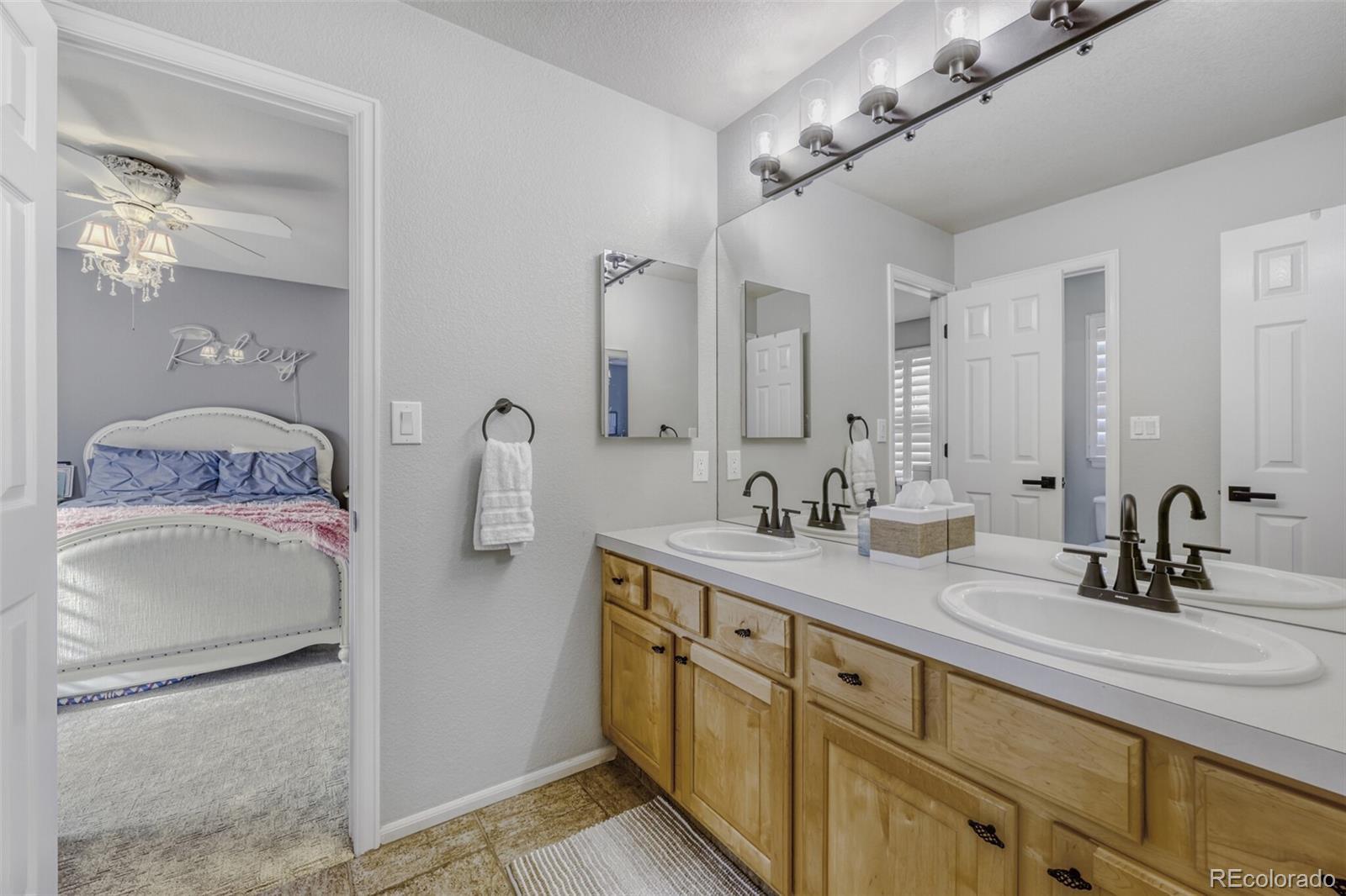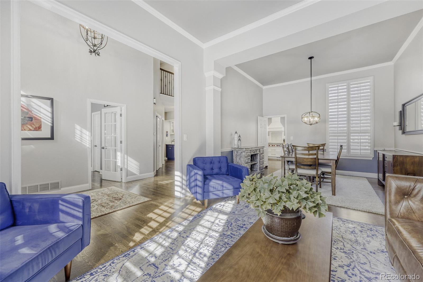 THIS STUNNING GEM HAS HAD OVER $250,000 of UPRGRADES RECENTLY COMPLETED! Step inside this home and be wowed! CUSTOM BASEBOARDS, CROWN MOLDING & PLANTATION SHUTTERS THROUGHOUT! GREAT FOR ENTERTAINING, OPEN BRIGHT FLOORPLAN, HIGH CEILINGS. This Gourmet kitchen boats new cabinets, Wolf range , double ovens, natural quartz counters, bar with built in beverage cooler, hardwood floors. Main level includes light & bright living room and dining room, cozy family room with stone fireplace along with a main floor bedroom - office with an attached 3/4 bath. Master suite upstairs has been remodeled - 5 piece bath with standalone soaking tub, updated large walk in shower, new cabinets and marble countertops. Two additional bedrooms and a loft round out the upper level. Fully finished basement with theater room, super large bedroom with sitting area , bonus/exercise room and full bath. Head outside to the newly landscaped backyard with a firepit and gas line hookups for great outdoor entertaining and relaxing spaces.. wind down the day with a soak in the hot tub. Garage storage loft and LED lighting. Exterior recently painted in the past few years. BRAND NEW class 4 hail resistant roof. Mature trees for privacy and plenty of landscape lighting. This beautiful home boasts hardwoods on the main floor, tons of bright lights, plantation shutters through out. Community friendly neighborhood with great neighbors, one block from Cougar Run park and walking distance to the elementary school. Open choice schools are also an option with close proximity to Rock Canyon and several charter schools.
