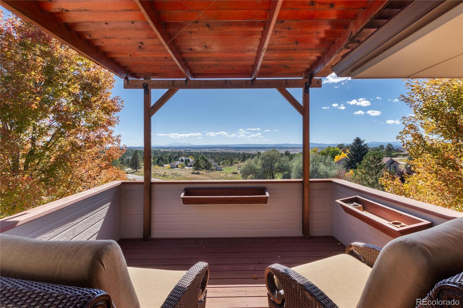 Discover timeless elegance and Colorado luxury in this meticulously maintained Misty Pines estate, offering stunning mountain views, high-end craftsmanship, and an exceptional layout designed for both comfort and sophistication. This 6,176 sq. ft. custom home sits on a private 2.3-acre lot surrounded by mature trees and professional landscaping. Step inside to experience solid oak finishes, three inviting fireplaces (in 5 different rooms!), a covered balcony off of master bedroom, and expansive living spaces perfect for daily life or grand entertaining. Enjoy seamless indoor-outdoor living with over 600 sq. ft. of deck space, a charming outdoor pergola, outdoor fireplace and beautiful areas for relaxing or hosting under the Colorado sky. Recent upgrades include: New Driveway, Steel Roof, All Solid Oak Windows, New Carpet, Meticulous Upkeep. The walk-out basement provides even more versatile space β ideal for a recreation area, home theater, or guest suite. Every detail reflects quality, care, and pride of ownership. Located in the sought-after Misty Pines HOA, this property offers tranquility and privacy while remaining close to everything Parker has to offer. This is more than a home β itβs Colorado lifestyle surrounded by nature, luxury, and lasting quality.