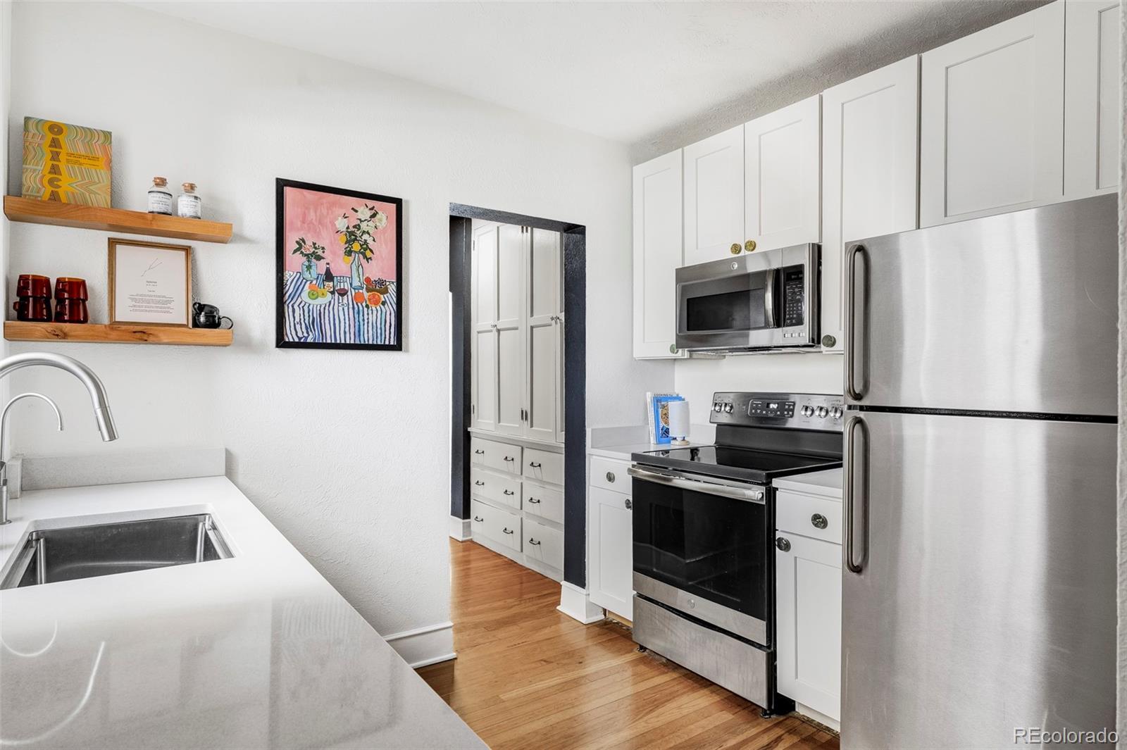 Character abounds in this charming and spacious condo. Positioned on the second floor of the historic Downing Manor, this corner unit enjoys abundant natural light from both east- and north-facing windows. Tall ceilings lend a sense of grandeur, perfectly paired with an open and airy layout between the living and dining rooms—making this home an entertainer’s dream. The soon-to-be owner will love the newly renovated kitchen (2024), featuring quartz countertops, bespoke hardware, stainless steel appliances, exceptional storage, and a water filtration system to boast! • Corner unit with incredible natural light • Kitchen renovated in 2024 with stainless steel appliances, quartz countertops, new cabinetry, sink, faucet, garbage disposal, water filtration system, floating shelves, updated plumbing, hardware, and a new window • Bountiful storage, including two large coat and storage closets, floor-to-ceiling cabinetry in the kitchen hallway, and an additional deeded storage space in the basement • Deeded parking space behind the building • Downing Manor offers a shared outdoor space & a small community feel with only 13 units and low owner turnover • The only unit in the building offering over 1,000 square feet • Charming arched doorways that speak to the architecture of the late 1920s If the condo’s timeless architecture and finishes weren’t enough, its location in the heart of Capitol Hill certainly puts it over the top. Just steps from the buzz of some of Denver’s best restaurants, music venues, parks, and bars, this home is a perfect base for exploring the very best the city has to offer. • Easy access to grocery stores including Sprouts, Whole Foods, King Soopers, and Trader Joe’s • Less than a mile to notable restaurants such as Potager, White Pie, Steuben’s, and many more • Cheesman Park and City Park are just blocks away • Never a dull weekend with the Fillmore Auditorium, Ogden Theatre, and Bluebird Theatre just moments away