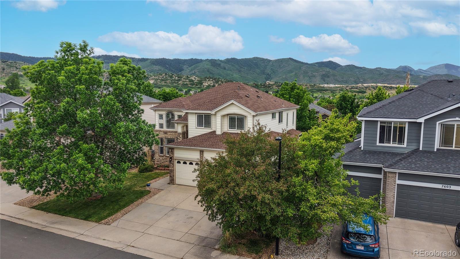 This beautifully updated home shines with fresh finishes throughout! Refinished natural hardwood floors and new carpet on the main level provide a clean, modern foundation. The kitchen features quartz countertops, a new tile backsplash, stainless steel appliances, walk-in pantry, center island, and a bar area with wine cooler and floating shelves—perfect for entertaining. Step into the soaring foyer with dramatic ceilings and a curved staircase, complemented by a new contemporary light fixture. The formal living and dining rooms feel open and airy, ideal for gatherings. A main-floor study near the front entrance makes an ideal home office or workspace for a small business. The great room boasts a 19’ ceiling, expansive windows, ceiling fan, and a gas fireplace with new Carrara marble surround, creating a stunning focal point. The main floor powder bath has also been refreshed with a new vanity and sink. Upstairs, a landing overlooks the great room before leading into the spacious primary suite, featuring vaulted ceilings, a ceiling fan, and breathtaking foothill views. The 5-piece primary bathroom includes new quartz countertops, modern rectangular undermount sinks, an oversized soaking tub, and updated lighting. Three additional bedrooms share a full hall bath, also with new quartz countertops, dual sinks, and a medicine cabinet. The unfinished basement includes a rough-in for a future bathroom and offers endless potential. The utility room features a newer furnace and water heater, along with a radon mitigation system. A huge crawl space provides extra storage options. The two-car stall includes extra-deep 28’ bays perfect for a large truck or recreational gear, + a third stall that is 18' deep— The backyard offers excellent privacy with mature trees, a large deck for entertaining, and the relaxing ambiance of the neighbor’s water feature—without the upkeep!