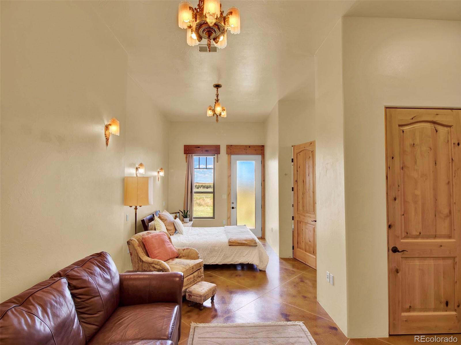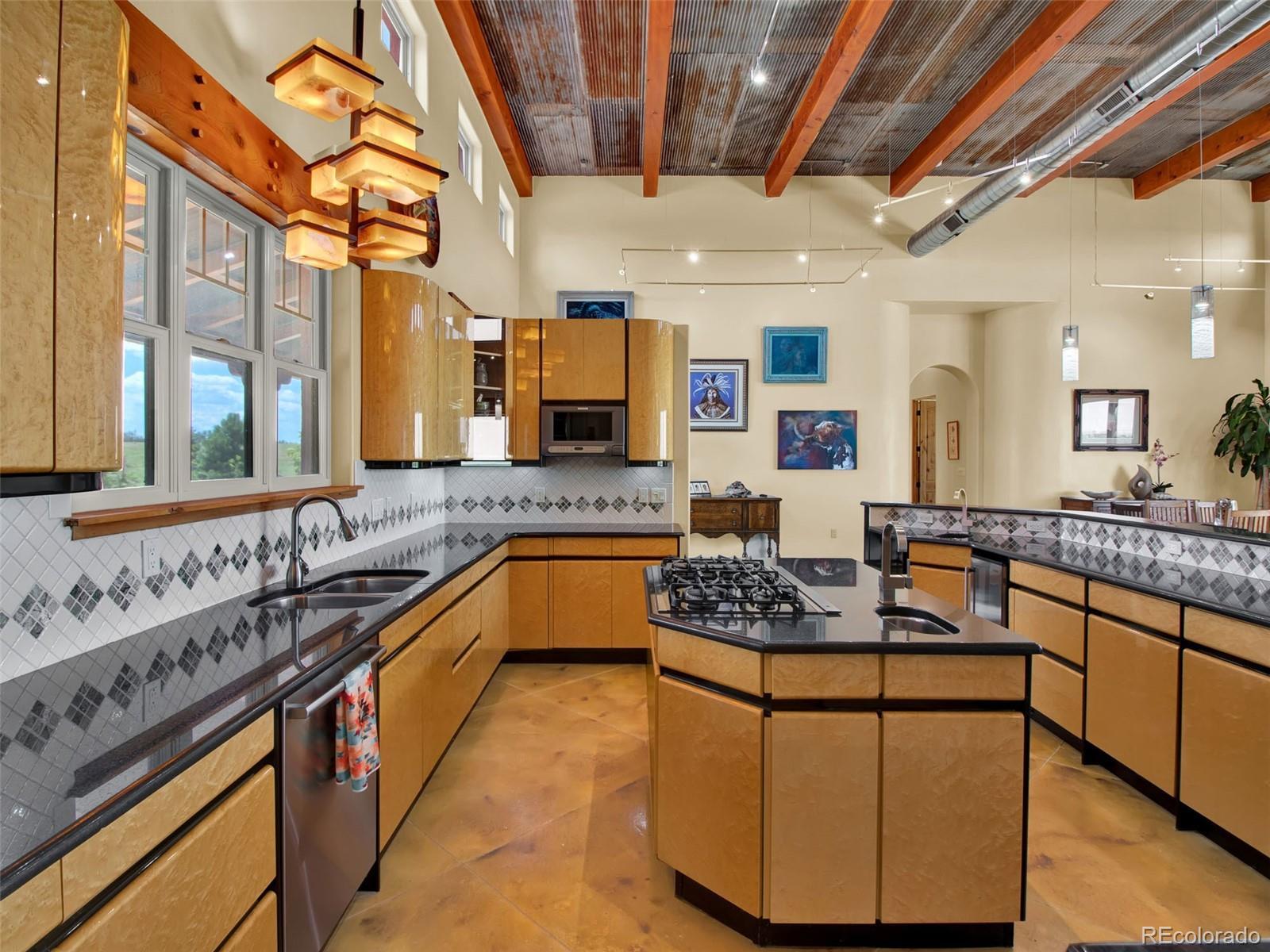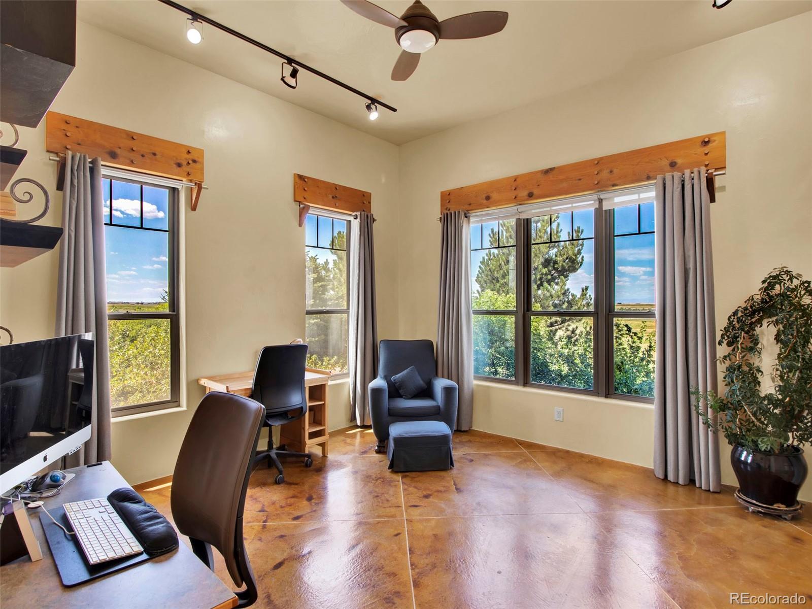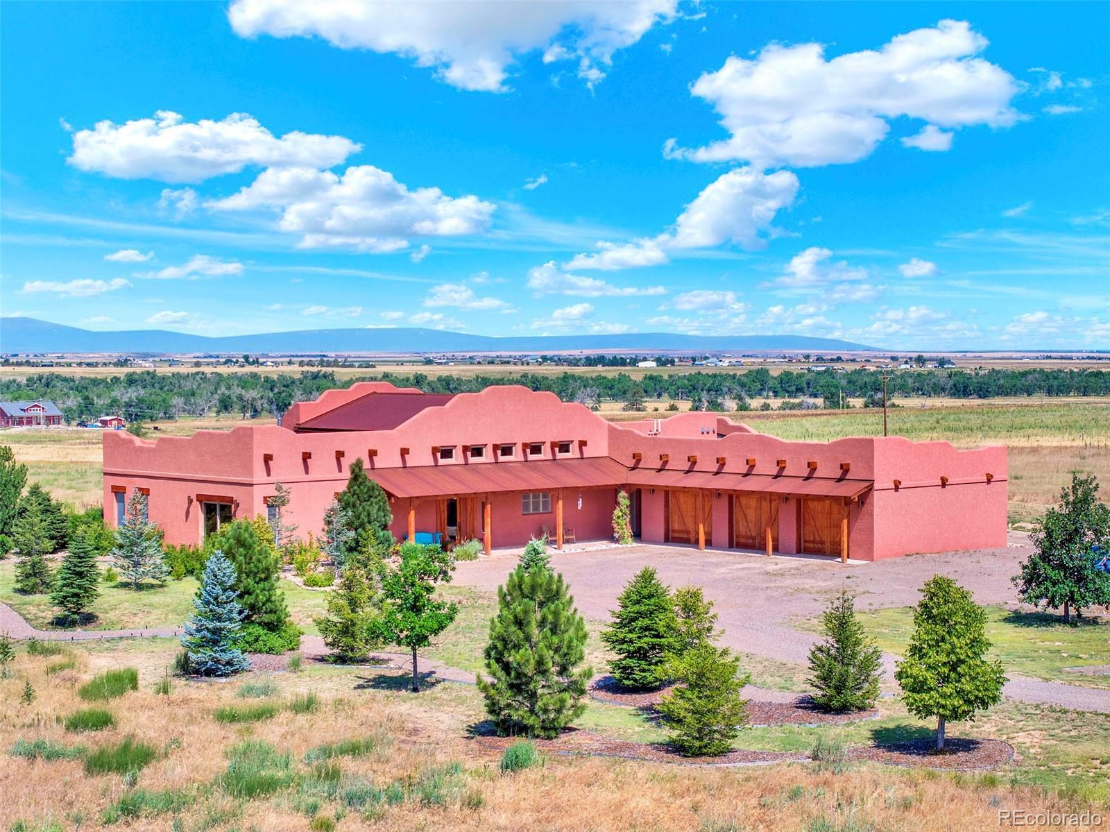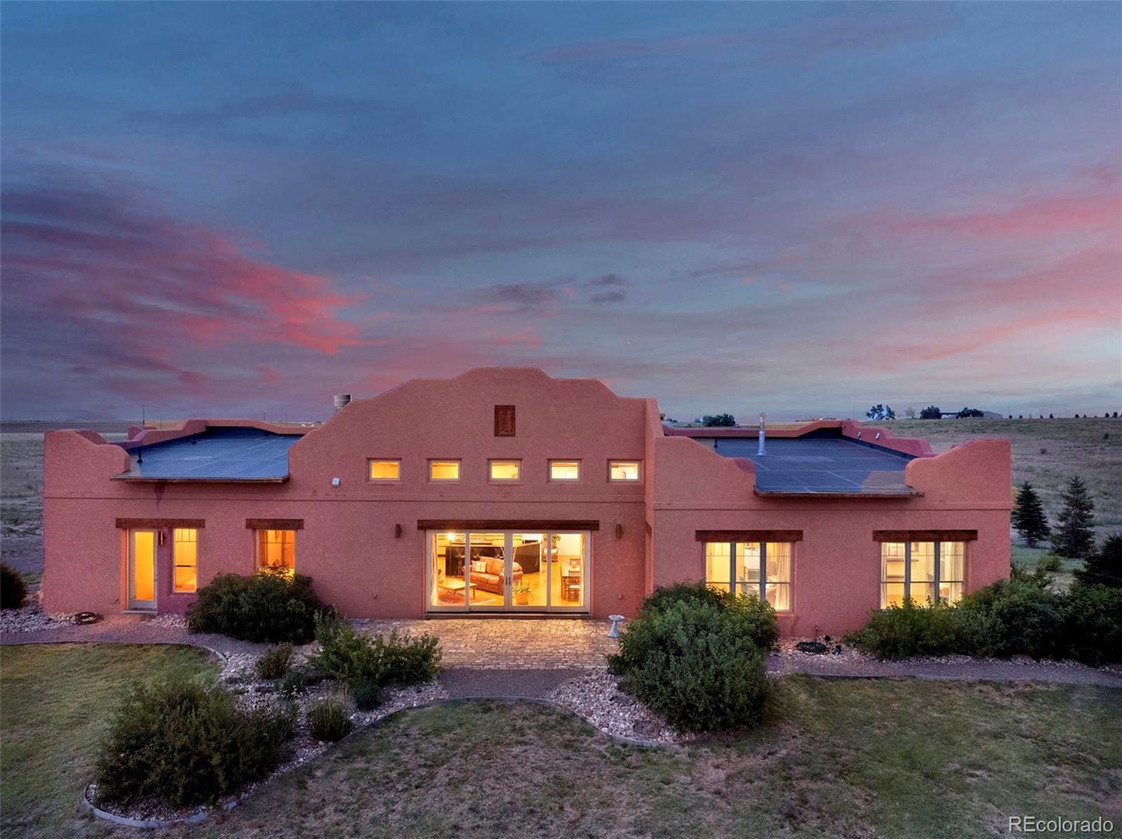 $50,000 SELLER CONCESSION OFFERED!! PLUS NEW LIST PRICE!! Discover the unparalleled luxury in this exquisite property. Modern Southwest with just the precise blend of Southwest, Western and Contemporary. The custom-built home has been truly respected - the plentiful features of the home were well thought out. Ample west facing windows expose the Kiowa Creek and the front range Rocky Mountain views as the backdrop for this acreage. Moving to the front of the home-the covered porch flagstone pavers are all from the street in front of the Old Denver downtown Post Office. Now let’s talk about the garage before we get to the truly good stuff - 1380sqft (no need for an outbuilding), fully sheet rocked, in-floor radiant heat, overhead storage rack. The kitchen is a culinary haven offering granite countertops. 2 preps sinks, gas cook top, Bosch refrigerator with dual compressors, new dishwasher that has never been used, new under cabinet ice maker, huge walk-in pantry, eating bar and opens to the family room. Next are the well thought out interior/exterior features to the home–if towel warming drawers in 2 of the baths gets your curiosity, keep reading! Geothermal heating offering in-floor radiant heat (with backup boiler) and cooling, insulated concrete forms (ICF) resulting in approximately 12” exterior walls, EPDM roofing over slightly sloping areas with a 1-12 pitch, NOT a flat roof, drip water system to all trees and shrubs, heated stained concrete floors, wide hallways, 3’x8’ solid wood doors with hand built door frames, recycled corrugated metal ceiling in family room, true timbers (not facades) in family room, 1000 gallon underground propane tank, light fixtures in the Guest Suite are from sellers’ Great-Grand Mothers’ home she had built in 1931 in NW Denver (the fixtures were one of the most highly prized chandeliers of the 1930’s!). There is a total +-155 acres available by purchasing parcel 2-4 adjacent to this property (MLS 6598281)