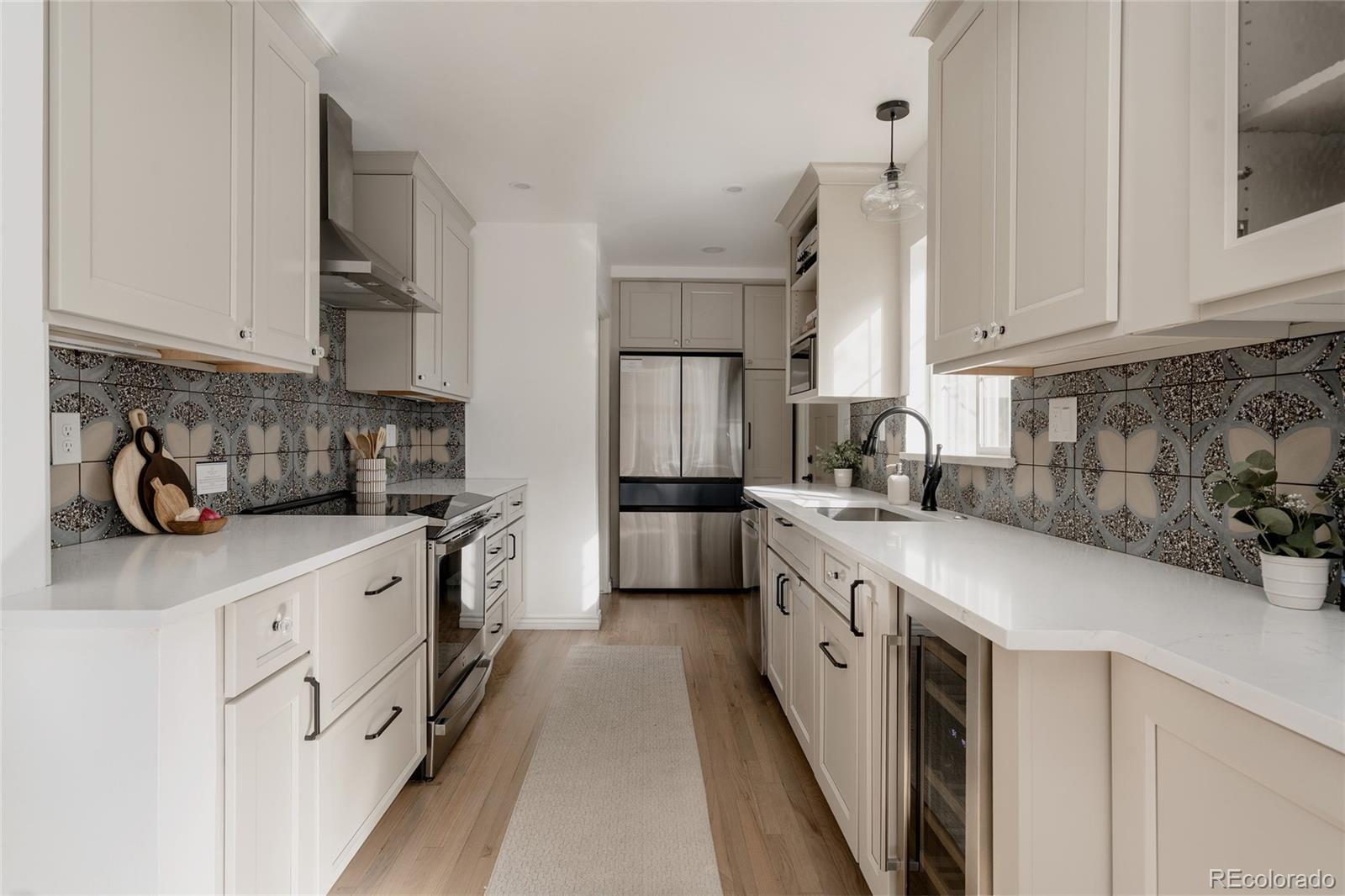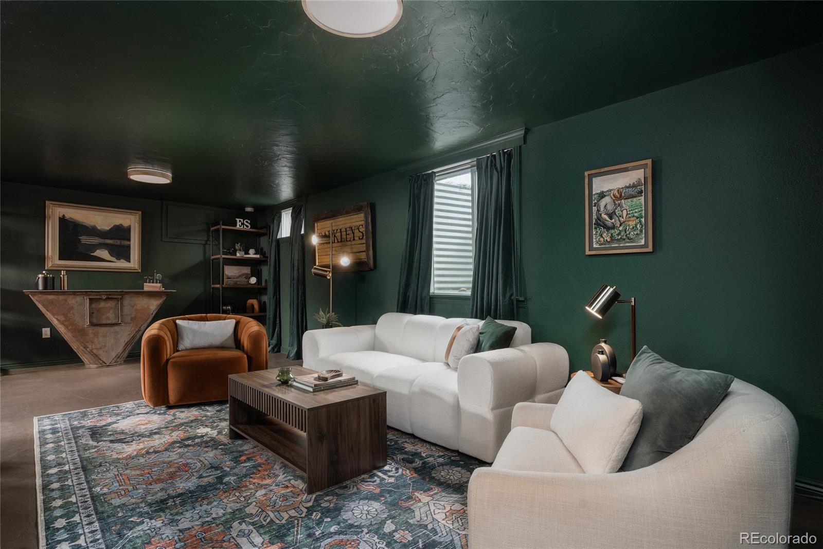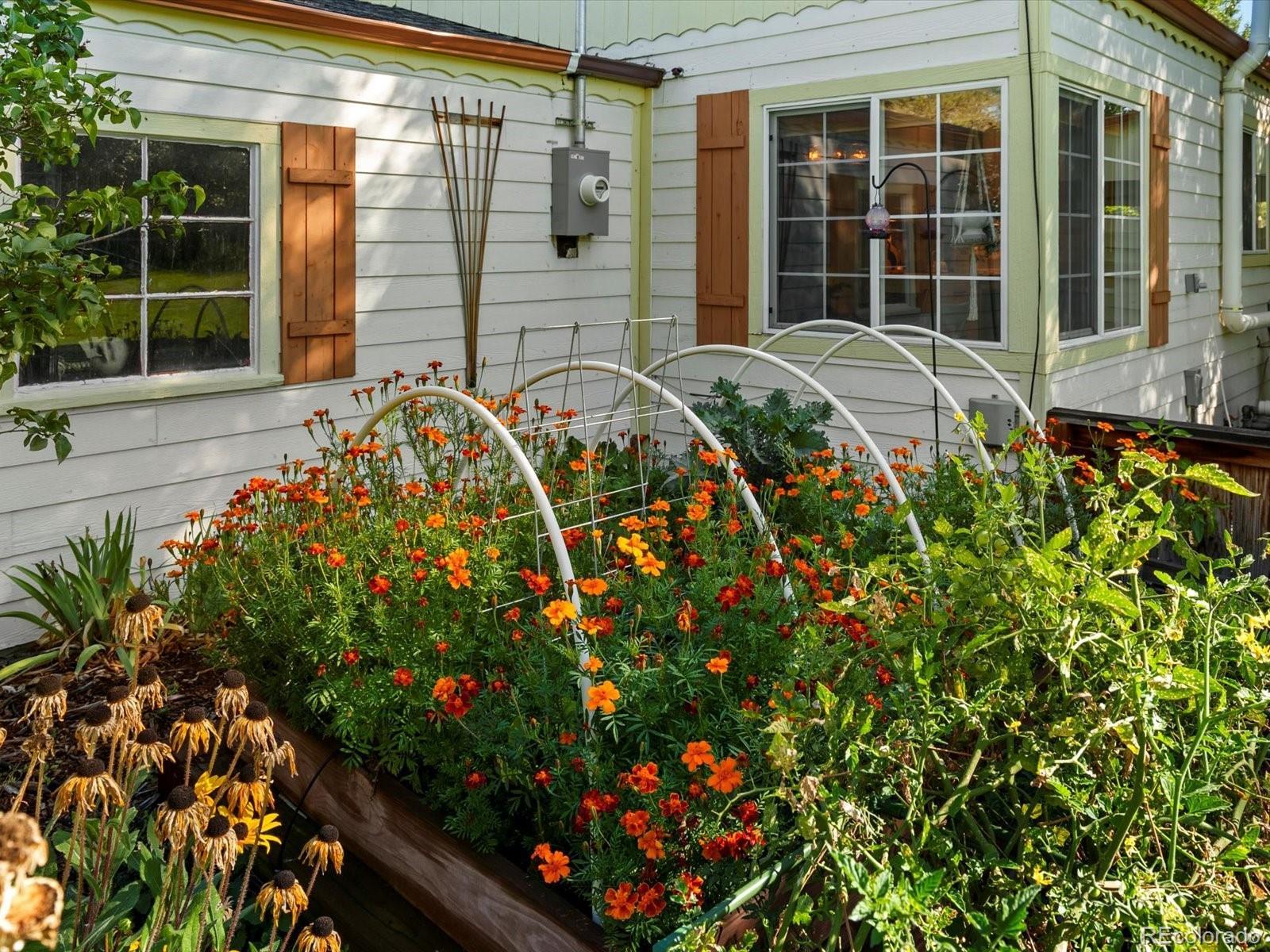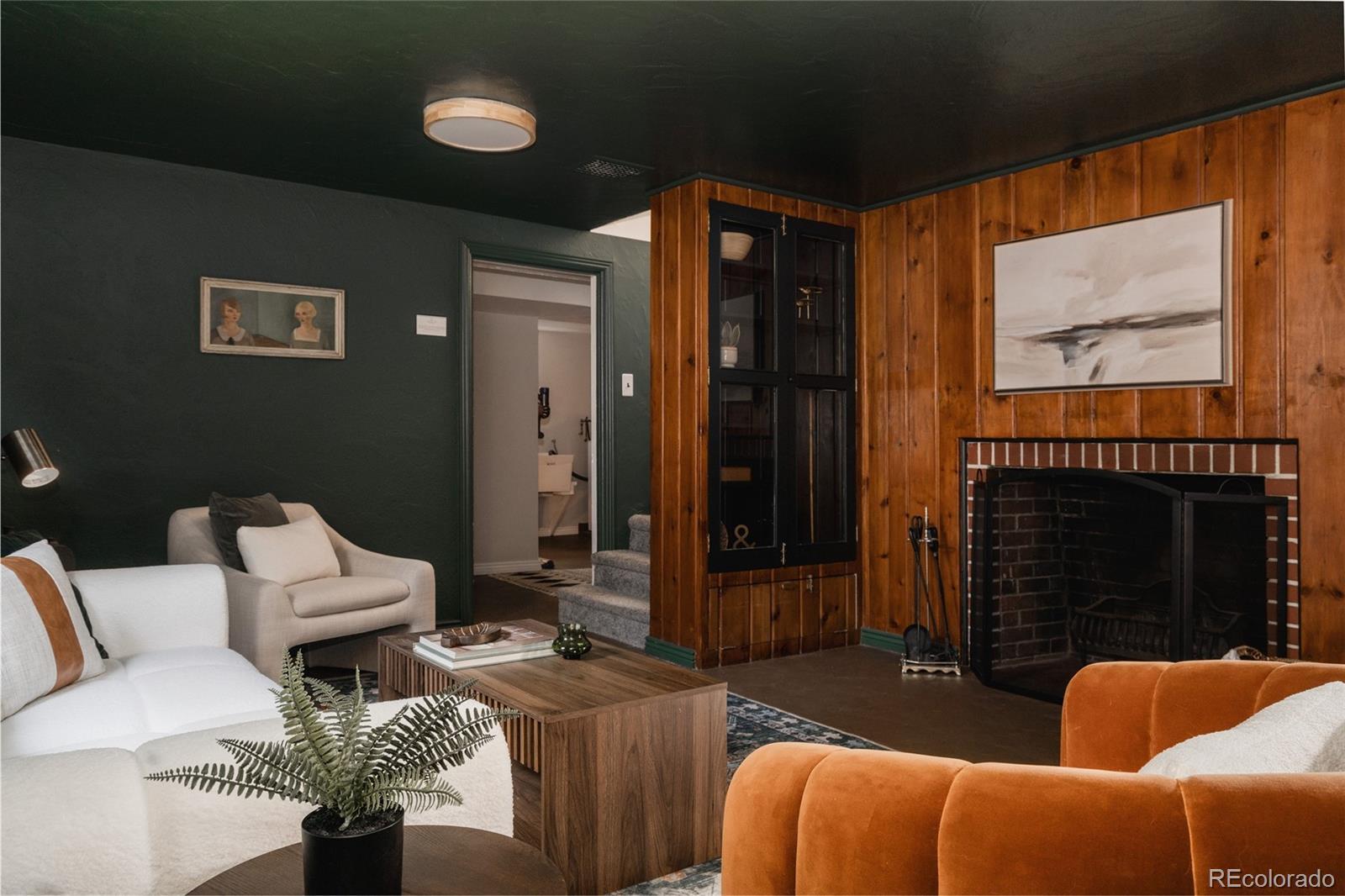 Model Home Origins. Mid-Mod Comfort. Half an Acre of Possibility. Thought to be the original model home for Lakewood Heights, this thoughtfully updated 1938 ranch blends historic charm with modern livability on a half-acre lot. From the chef-designed kitchen to the mid-century inspired lower level, every detail has been curated with comfort and function in mind. Step inside to find coved ceilings, refinished oak floors, two large wood burning fireplaces, and expansive windows that flood the home with light. The recent kitchen renovation features quartz countertops, Shiloh soft-close cabinetry, a GE Profile induction range, and a Samsung Bespoke fridge, and wine fridge all designed for serious cooking and daily enjoyment. The finished basement offers a spacious second living area, office, or gym flex space, and a non-conforming bedroom with great natural light, all surrounded by vintage knotty pine paneling that adds a subtle mid-century modern edge. Outside, you’ll find room to grow, gather, or garden: a generous 0.49-acre lot with ditch rights, secluded firepit area, and mature trees. Whether your vision includes urban homesteading, pets, pollinators, or play, this land is your blank canvas. Located in Lakewood’s historic Eiber neighborhood, once home to orchards, farms, and gardens, this area has retained its sub-rural charm with larger lots, mature trees, and a true sense of community. The home is less than a mile, or about a 10-minute walk, from two W Line light rail stations, offering a quick downtown commute while keeping you grounded in a neighborhood with local charm. Updates include: brand new sewer line, refinished oak floors, brand new paint, full kitchen remodel including cabinets, countertops, appliances, fully renovated primary bathroom, and landscaping. Enjoy easy access to Gold’s Marketplace, Belmar, Colorado Mills, parks, breweries, coffee shops, I-70, and everything West Denver has to offer. Welcome home!