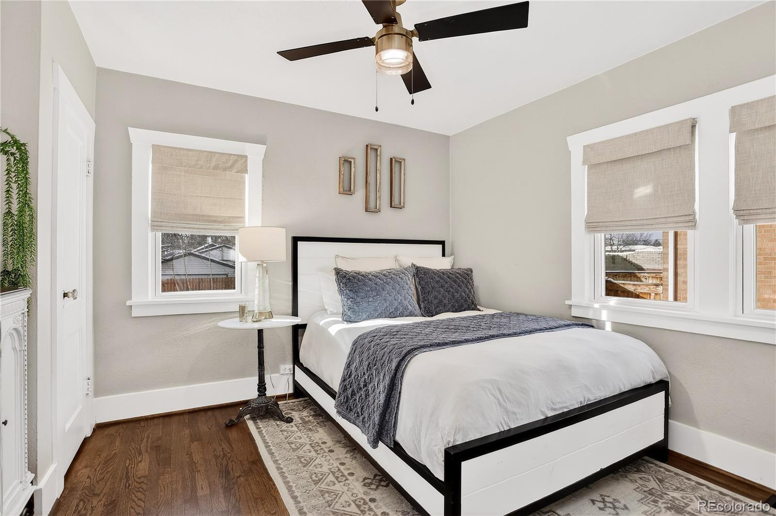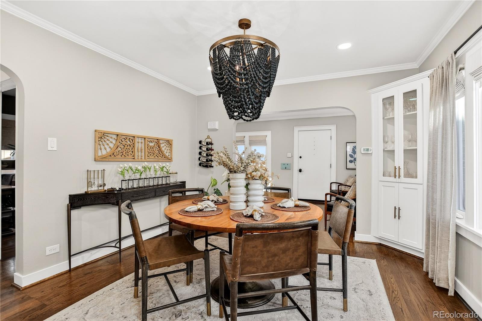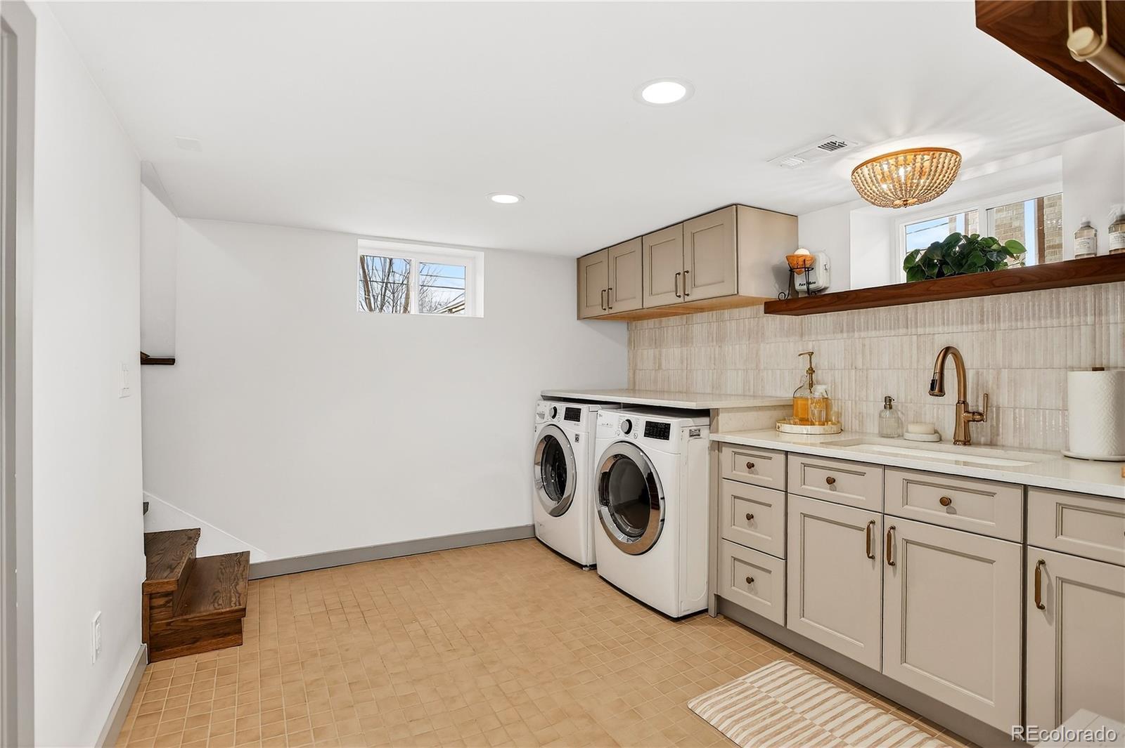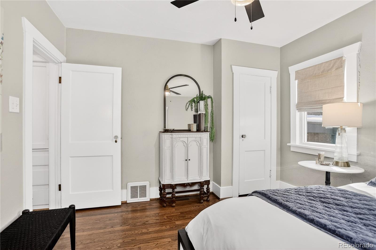 Renovated 1928 Craftsman in Denver’s iconic Platt Park neighborhood, just steps from the boutiques, restaurants, and amenities of South Pearl Street. This expertly remodeled bungalow blends historic charm with modern functionality and abundant natural light. Interior features include refinished hardwood floors, dimmable can lighting, and updated kitchen and bathrooms with designer-level finishes. The remodeled kitchen offers Cambria Brittanicca Warm quartz countertops, gas range, updated lighting, modern hardware, and new sink and faucet. Built-ins flank the formal dining room, creating a seamless connection between the living space and kitchen, ideal for everyday living and entertaining. The renovated main-level bathroom includes a new tub, toilet, and designer vanity and serves two bedrooms, or a bedroom plus office/media/flex space. New hardwood stairs lead to a finished basement with two additional (non-conforming) bedrooms, including a private lower-level primary retreat. The primary suite features a walk-in closet with ELFA system, custom laundry area with walnut open shelving, quartz countertops, porcelain farmhouse sink, and custom cabinetry. The primary bathroom includes a dual vanity and walk-in shower with Delta fixtures and high-end porcelain tile. Double doors open to a nursery or en-suite office. Additional upgrades include new windows and window treatments, central heating and air, new furnace, new insulation, updated exterior trim paint, and a new garage door. The fully fenced, low-maintenance backyard features custom hardscaping, dining area, fire pit, and string lighting, perfect for Colorado living. Convenient access to Light Rail, downtown, and DTC completes this exceptional home.